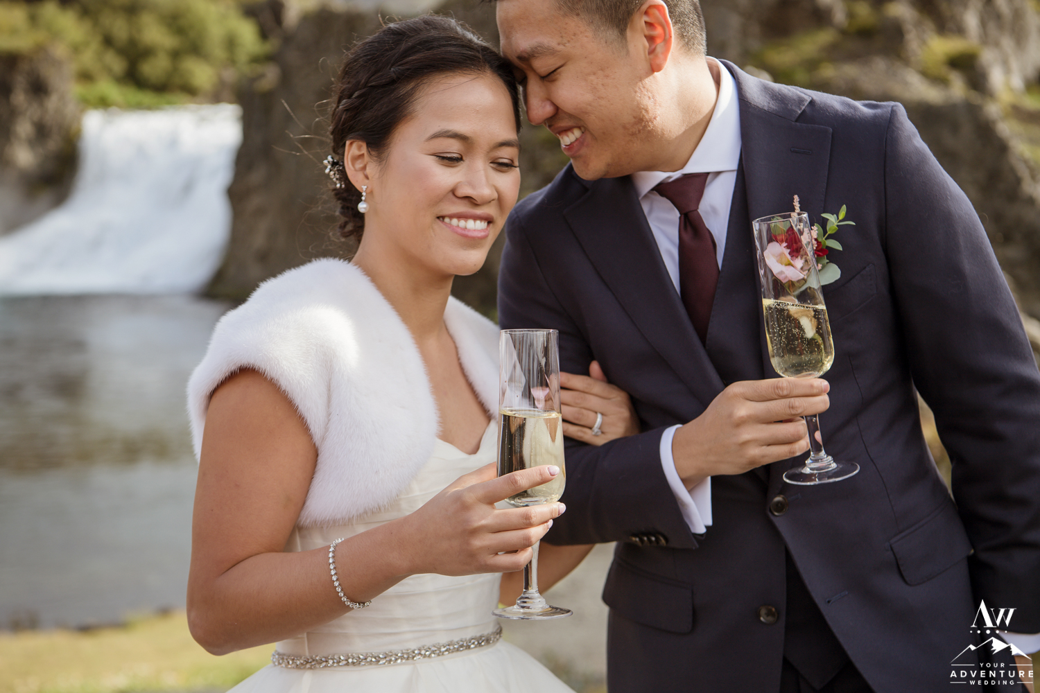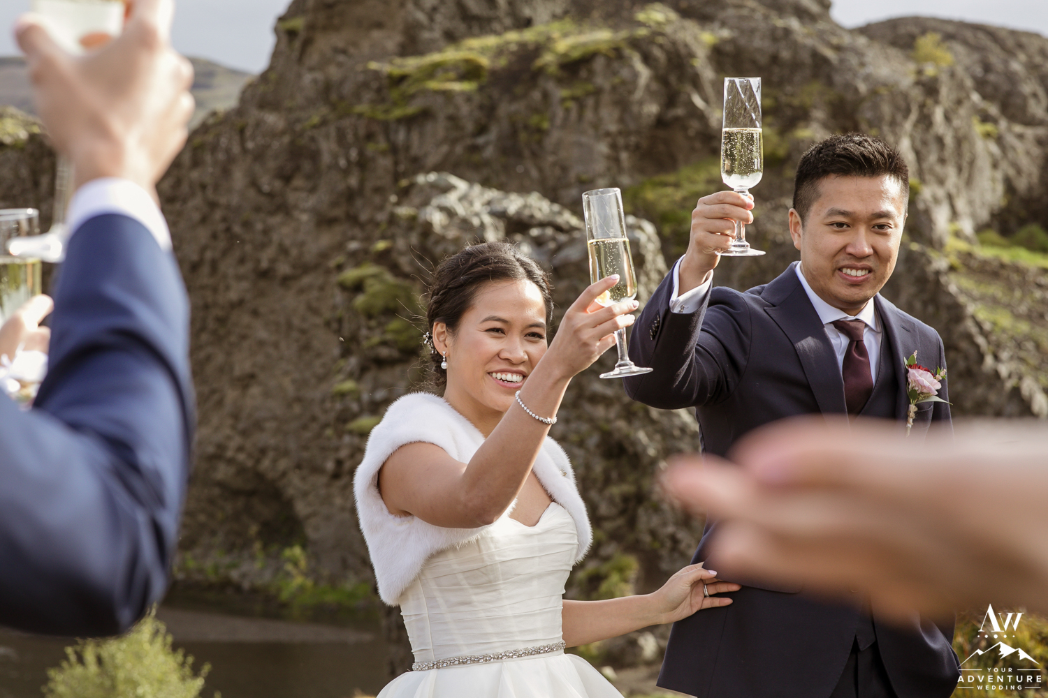 Immediately following the ceremony, the Iceland wedding group celebrated with a champagne toast! When having a luxury wedding Iceland, nothing better than sipping a glass of bubbles at an incredible place!