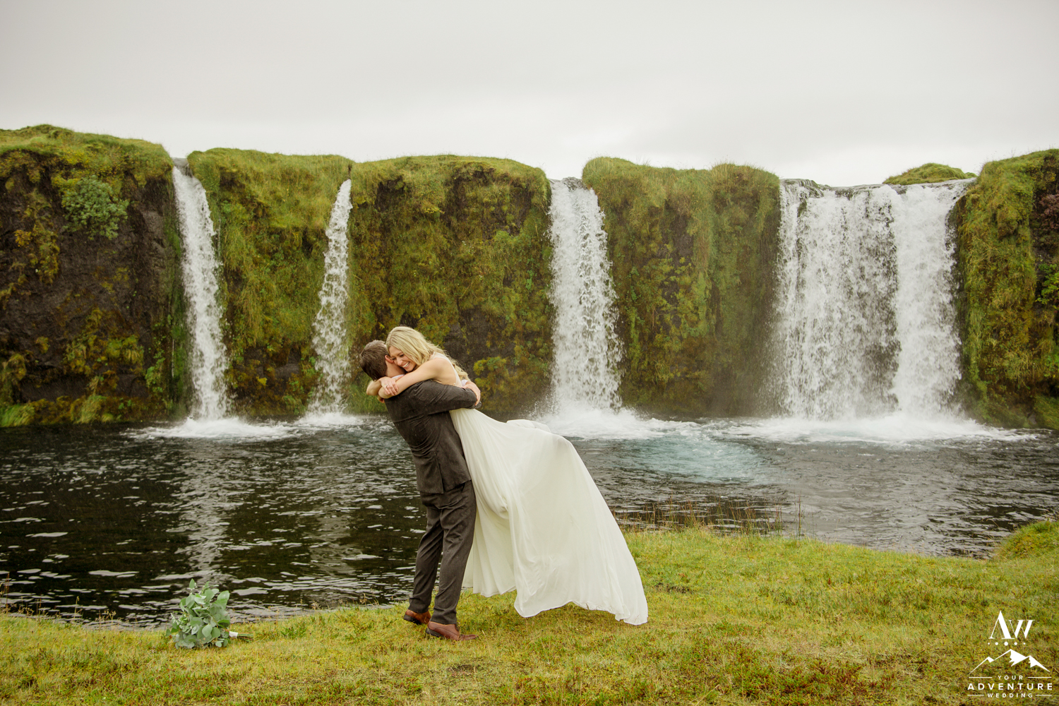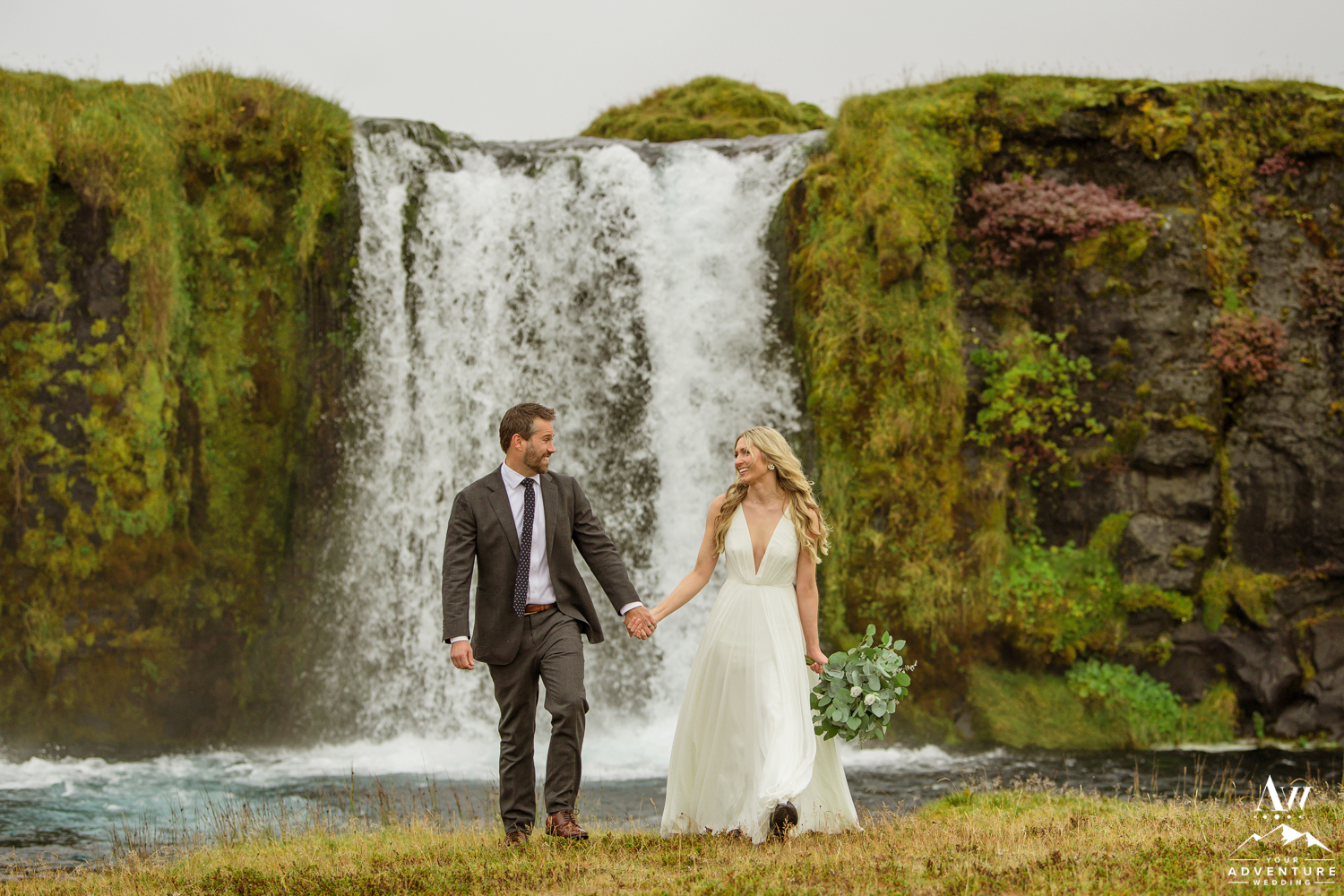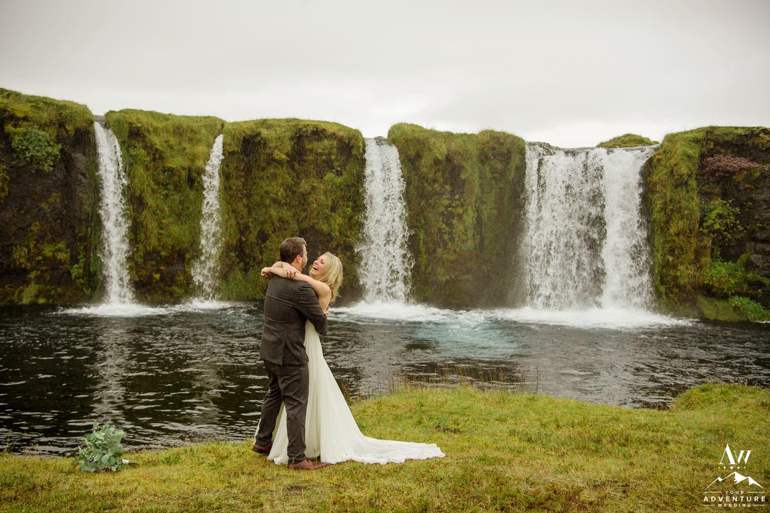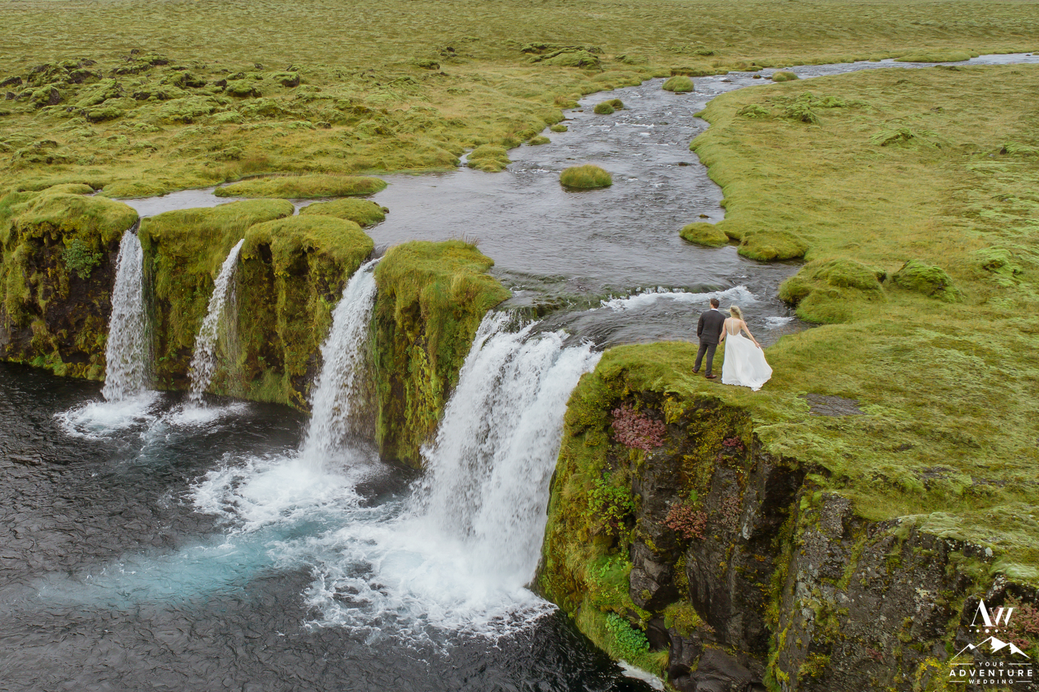 Spending a few minutes after the ceremony together just enjoying the view is an important part of the experience factor of our adventure style elopements. The day goes so fast, so it is critical you take as many moments to savor and memory bank it! Finding the right balance between time to explore yourselves, adventuring around the area, and having amazing wedding photos is not only our job but our Iceland elopement photographer too! We set the schedule, but they follow it 😉 So! Onto the amazing wedding adventure photos at this private waterfall!