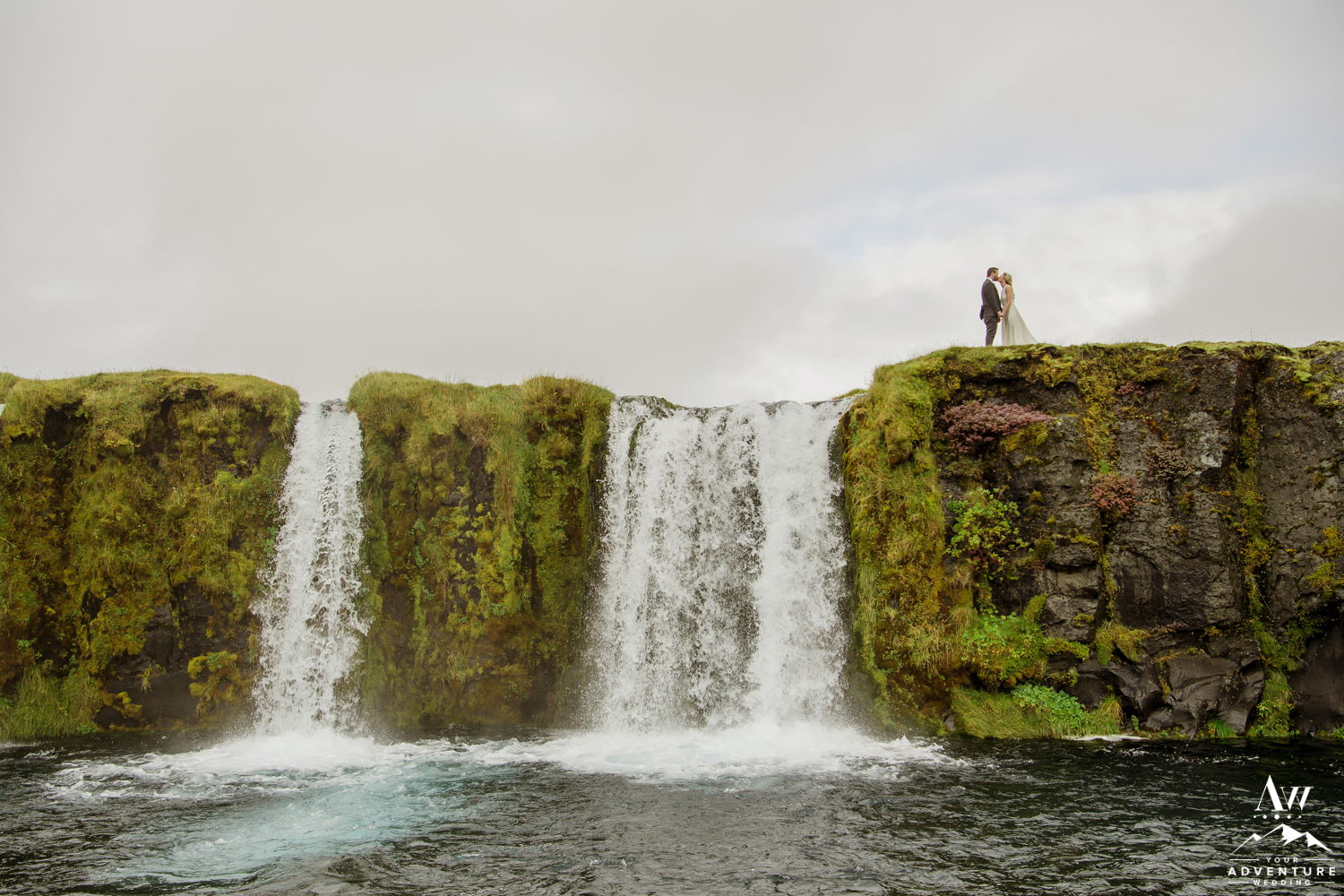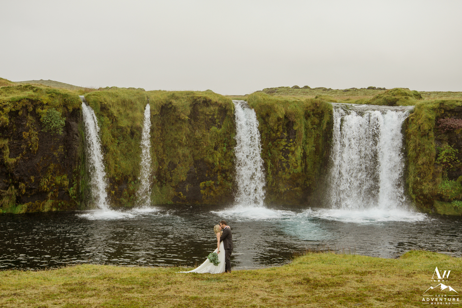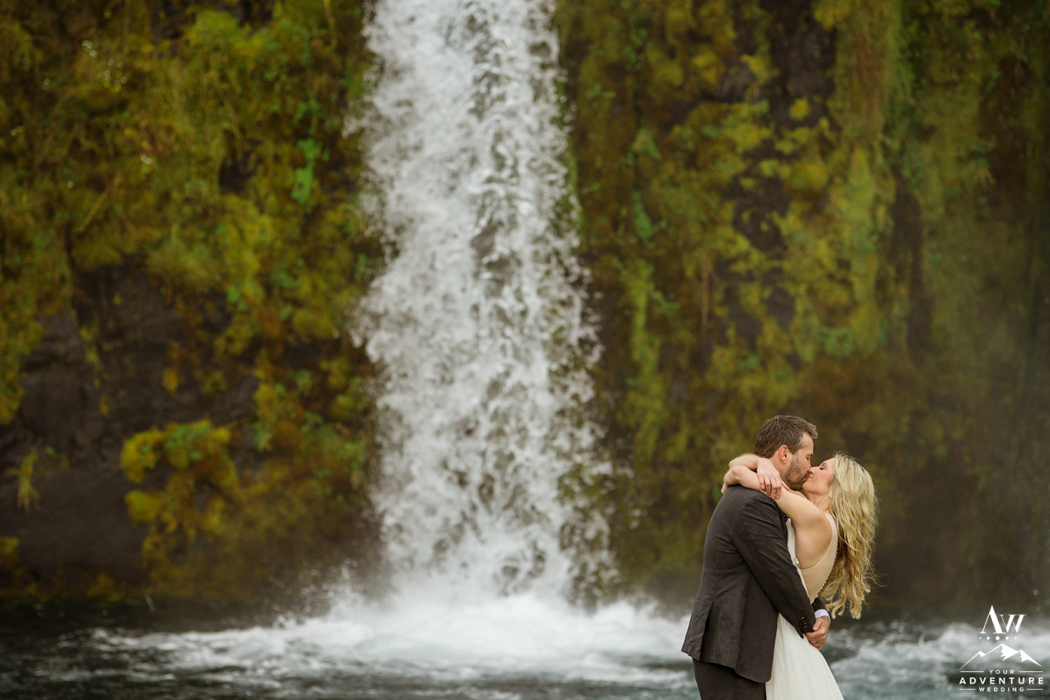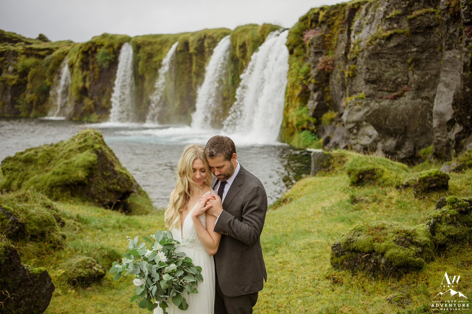 Spending a few minutes after the ceremony together just enjoying the view is an important part of the experience factor of our adventure style elopements. The day goes so fast, so it is critical you take as many moments to savor and memory bank it! Finding the right balance between time to explore yourselves, adventuring around the area, and having amazing wedding photos is not only our job but our Iceland elopement photographer too! We set the schedule, but they follow it 😉 So! Onto the amazing wedding adventure photos at this private waterfall!