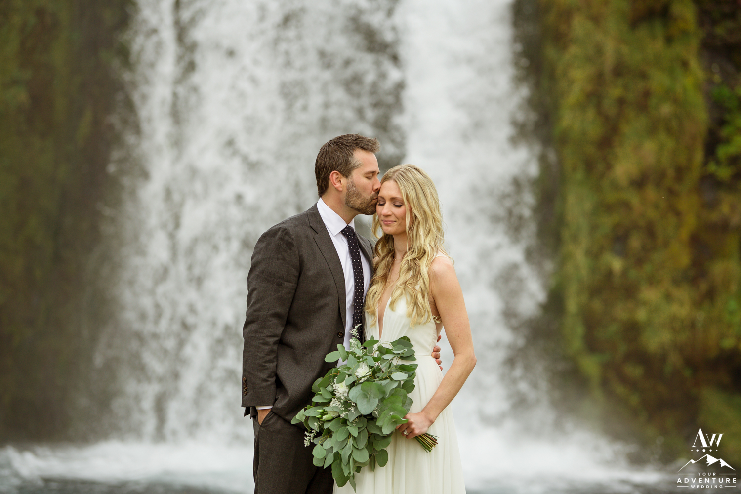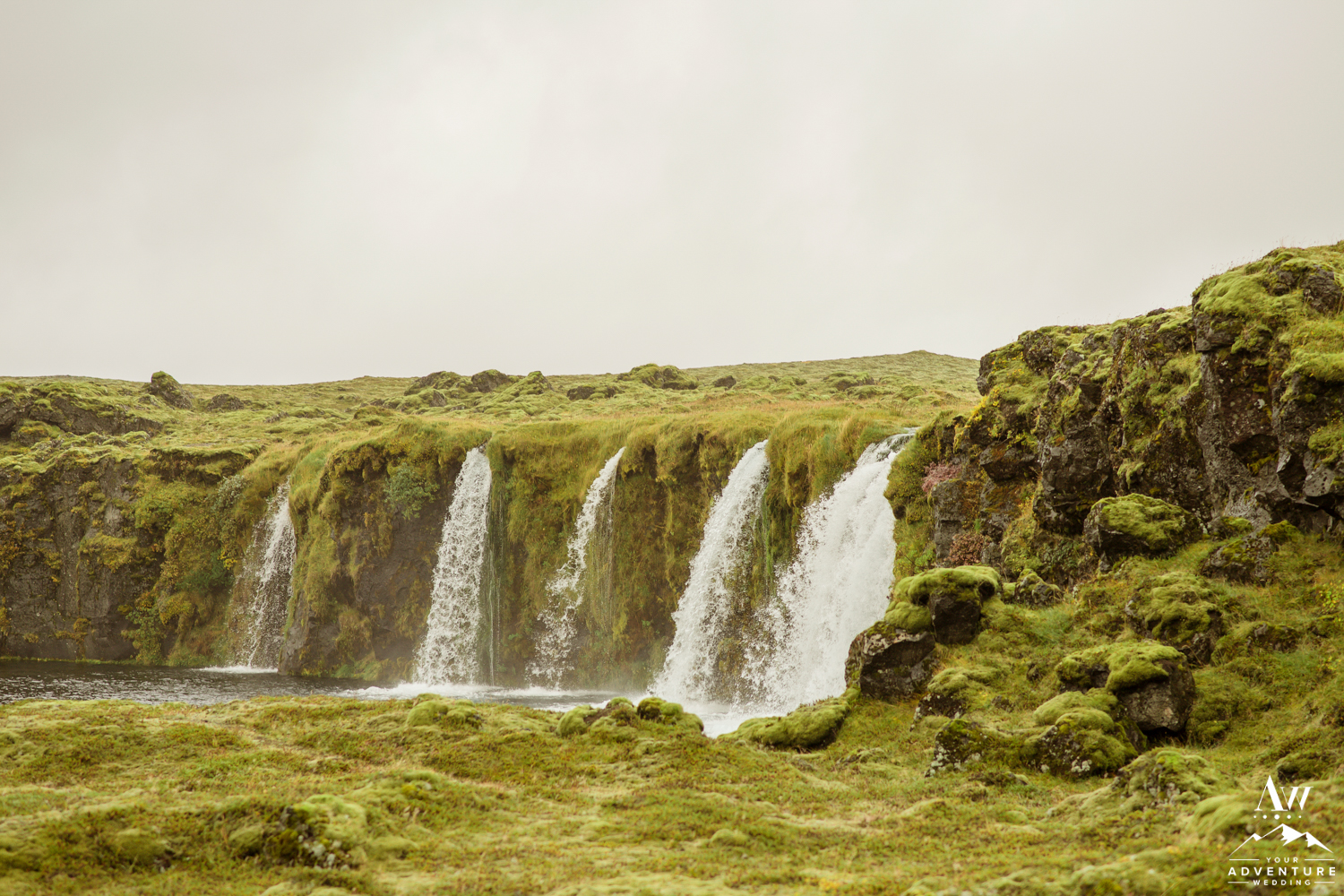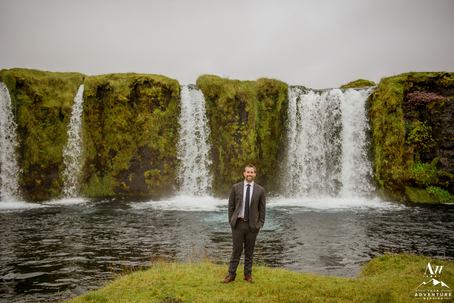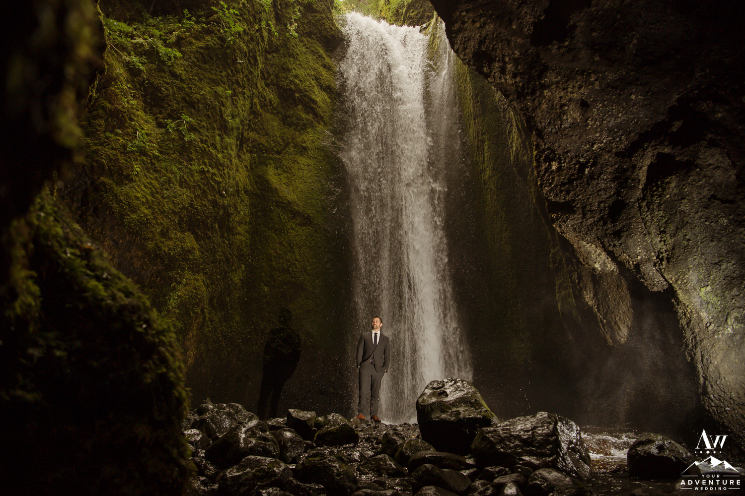 Spending a few minutes after the ceremony together just enjoying the view is an important part of the experience factor of our adventure style elopements. The day goes so fast, so it is critical you take as many moments to savor and memory bank it! Finding the right balance between time to explore yourselves, adventuring around the area, and having amazing wedding photos is not only our job but our Iceland elopement photographer too! We set the schedule, but they follow it 😉 So! Onto the amazing wedding adventure photos at this private waterfall!