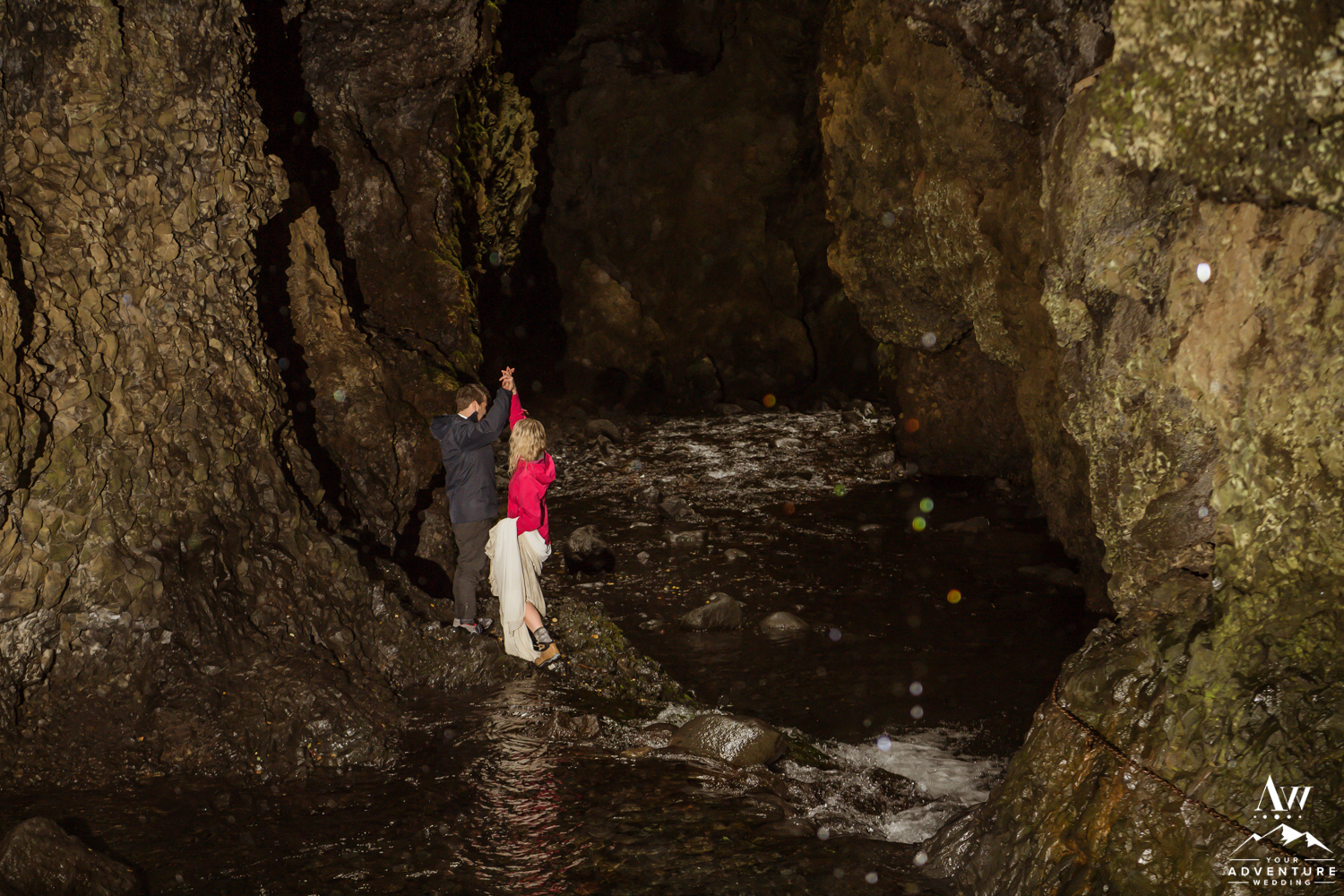 Caves locations in Iceland are abundant. But our clients, many times have a favorite because of a shape, size, or story. This gorgeous private property cave was Heather and Mike’s favorite!