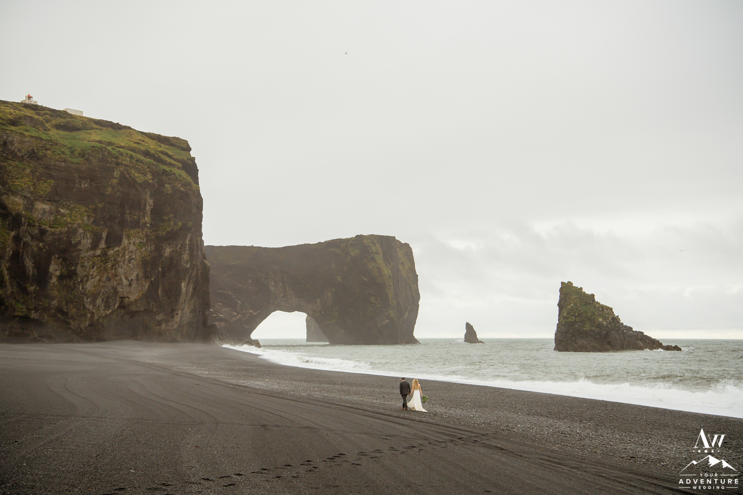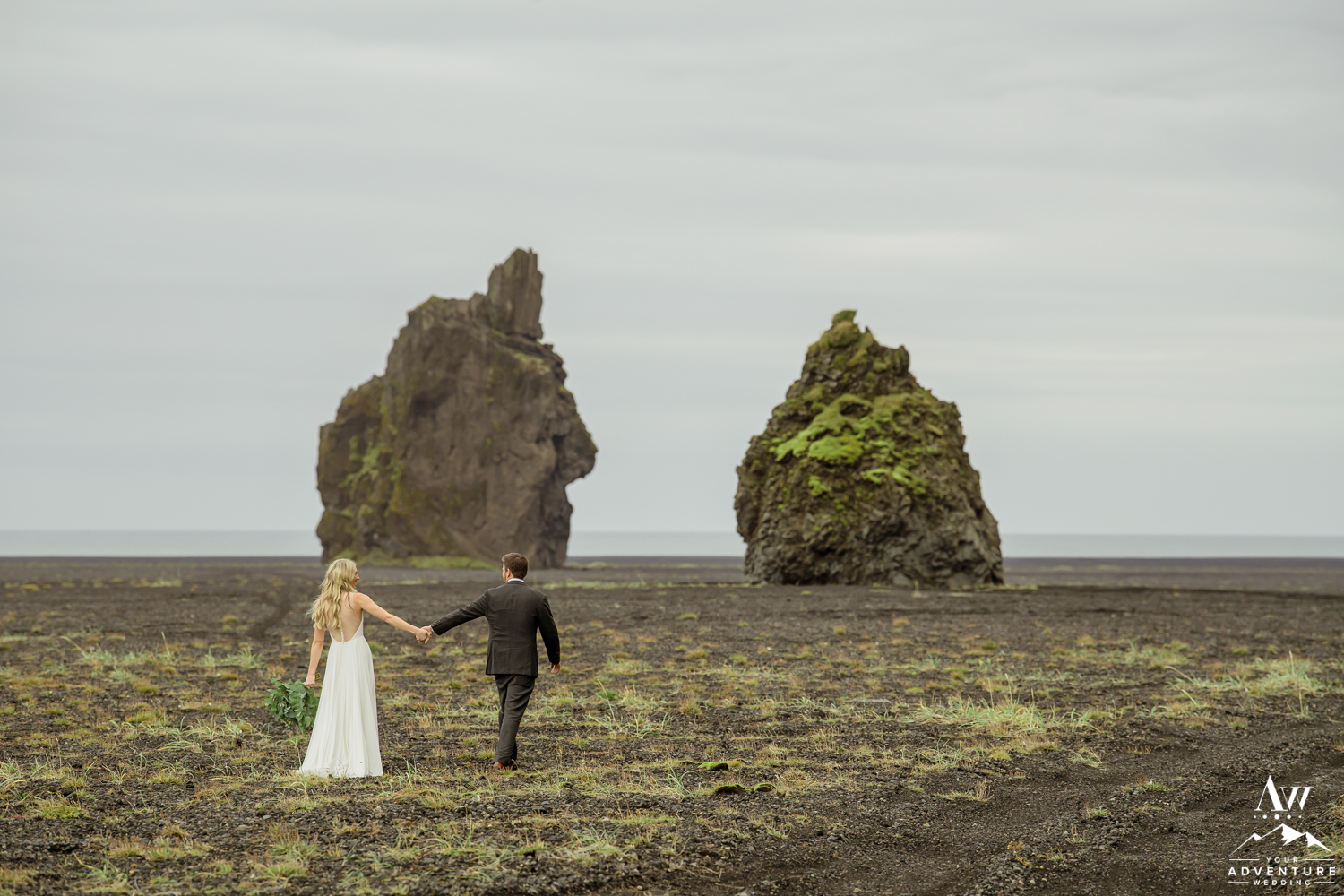 The Berg hosted these two newlyweds for a sweet littler reception for two. In our opinion, The Berg is the best restaurant in Vik and maybe even in Southern Iceland! Our Iceland Wedding Planner crafted an earthy styled table which boasted basalt rocks and greenery. Sadly the rain grew harder and the chance of Northern Lights in September became slimmer. But that just meant Heather and Mike got a head start on their honeymoon in Iceland!