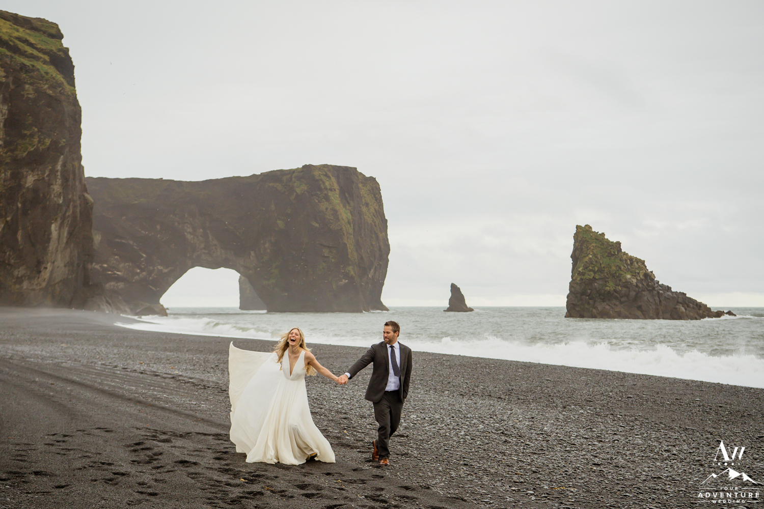 Late afternoon light is always more stunning on a black sand beach. Plus having a private black sand beach near Vik is even more amazing! Our Iceland Wedding Planner, photography, and super jeep teams all took notes from these two… They really knew how to BE IN THE MOMENT! They laughed, danced, and LOVED on each other. Heather and Mike could have easily spent the rest of the evening here in this private place!
