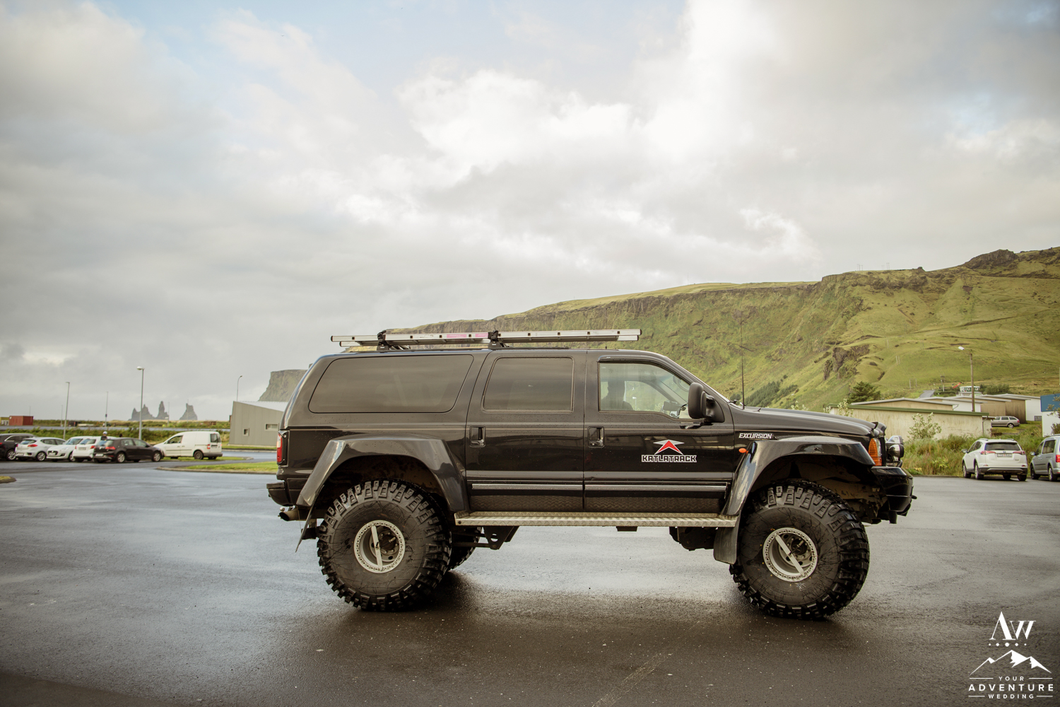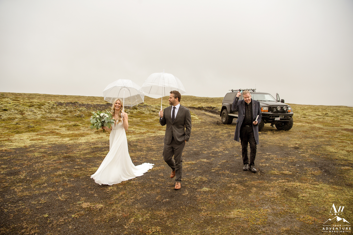 It was raining but these two lovers felt the weather would only add to their epic elopement adventure! In fact, they were more than prepared for it with their “go bags,” extra boots, and vow books that would withstand the rain! Our super jeep team arrived, our Iceland elopement photographed loaded their gear, we grabbed our favorite pastor and the group embarked on the adventure wedding!