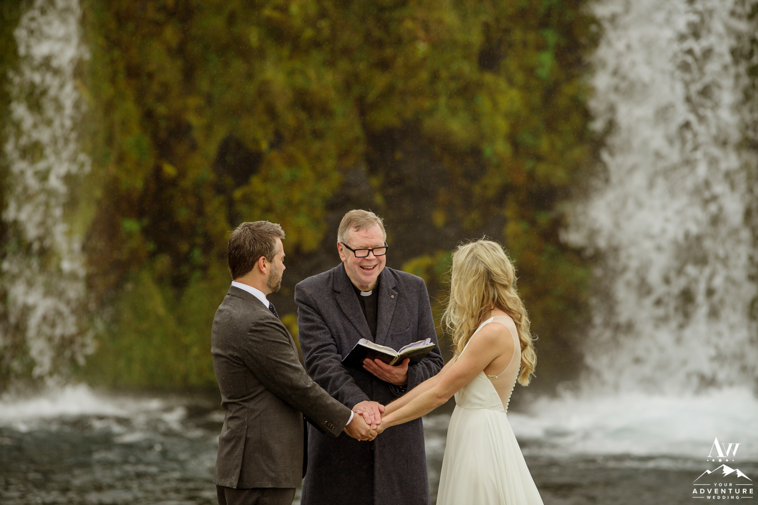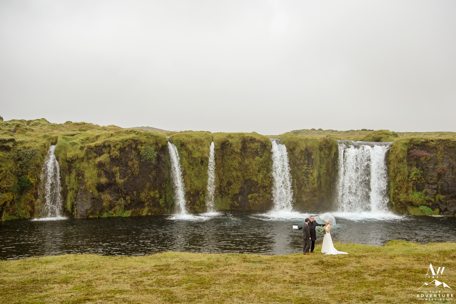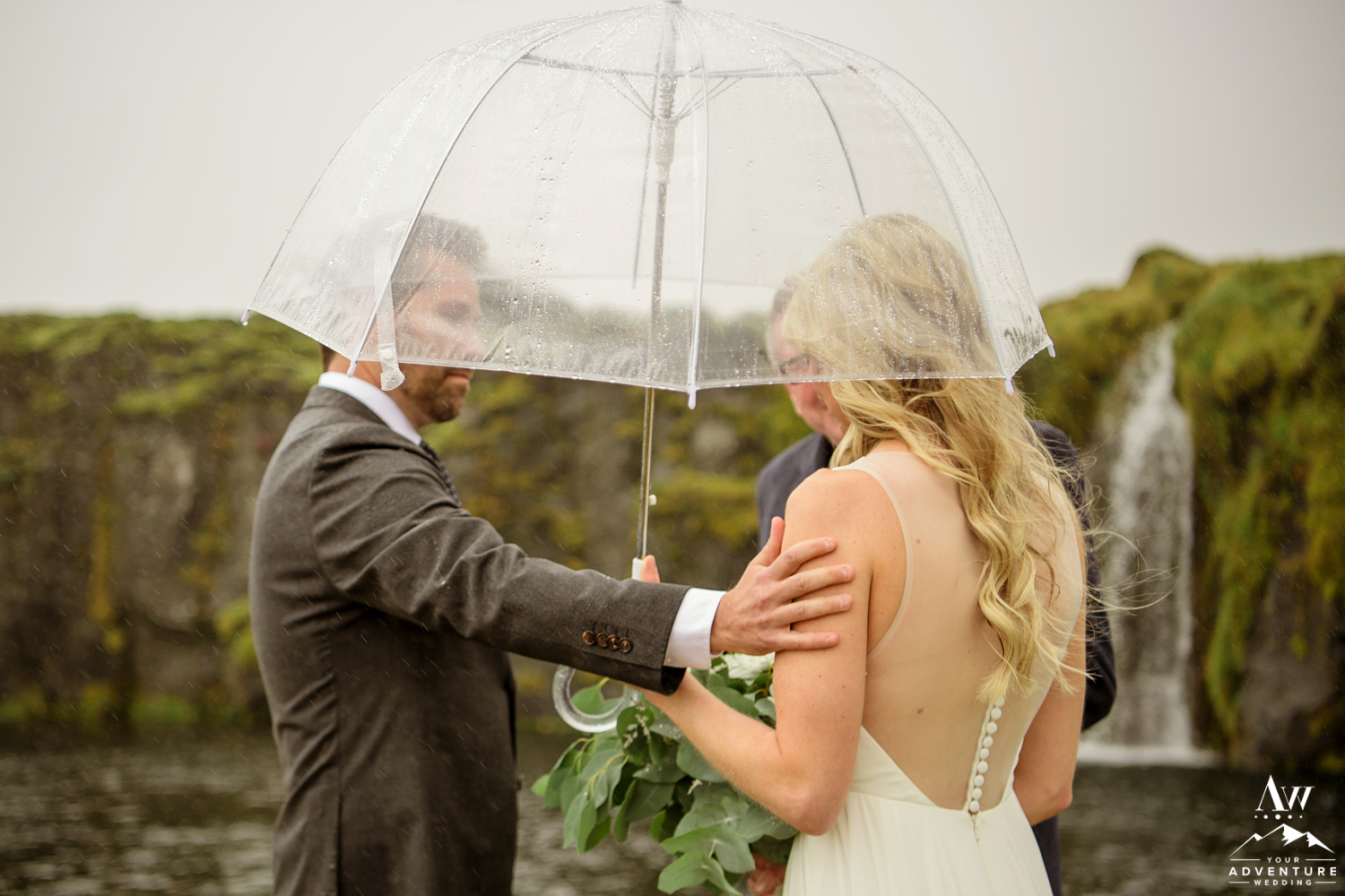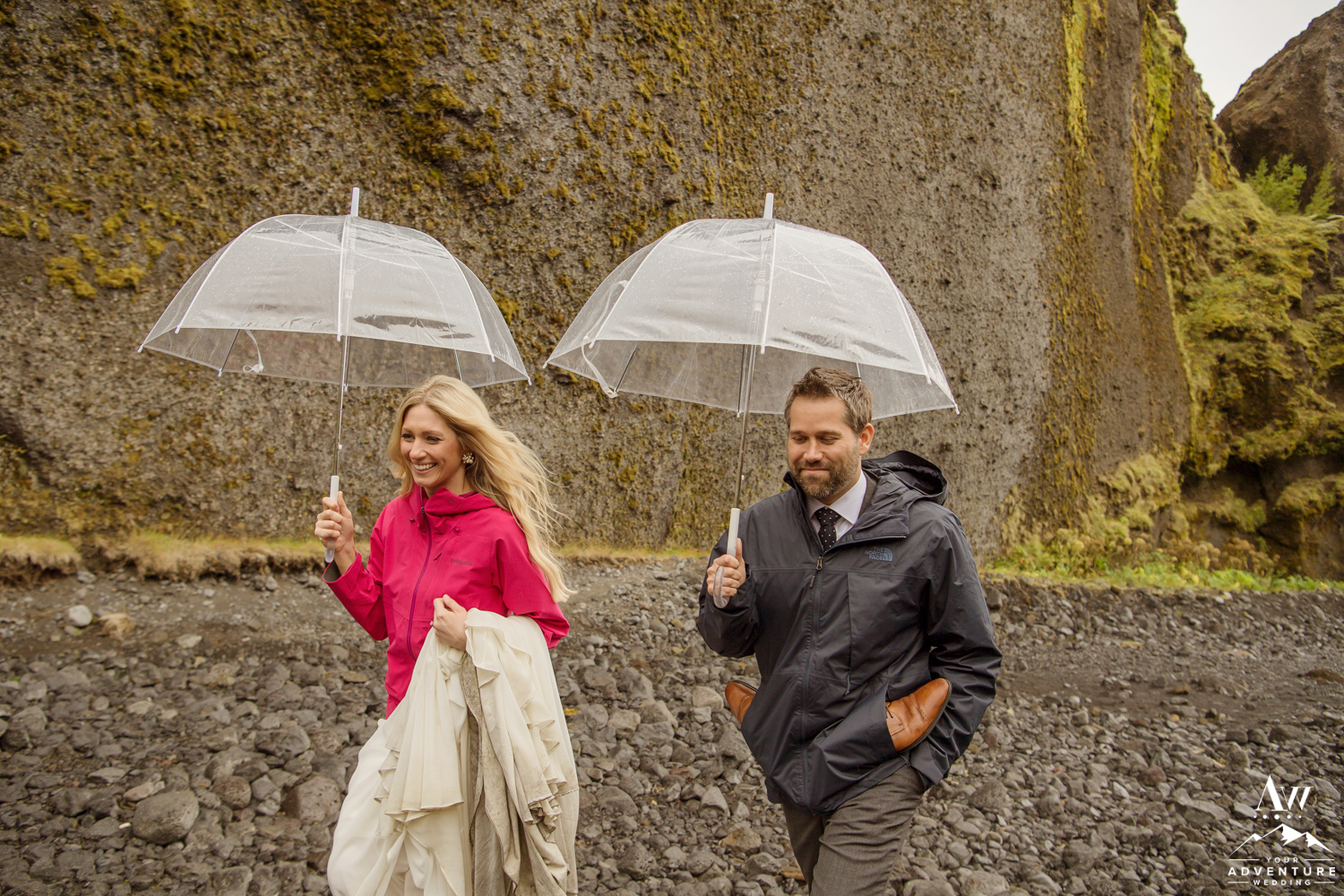 Upon arriving to the private waterfall, Heather and Mike were stunned by it’s beauty! It was PERFECT! Rain or no rain, this was a place that only existed for them!! They grabbed their vow books, rings, and each others hands as they picked the most beautiful Iceland wedding ceremony location! Our Iceland elopement photography captured every bit of the magic too! …Heather and Mike’s emotions during the ceremony were priceless! Talk about being in the moment together, wow! Gotta love how Heather ditches the umbrella half way through to create a strong connection during their Iceland wedding ceremony.