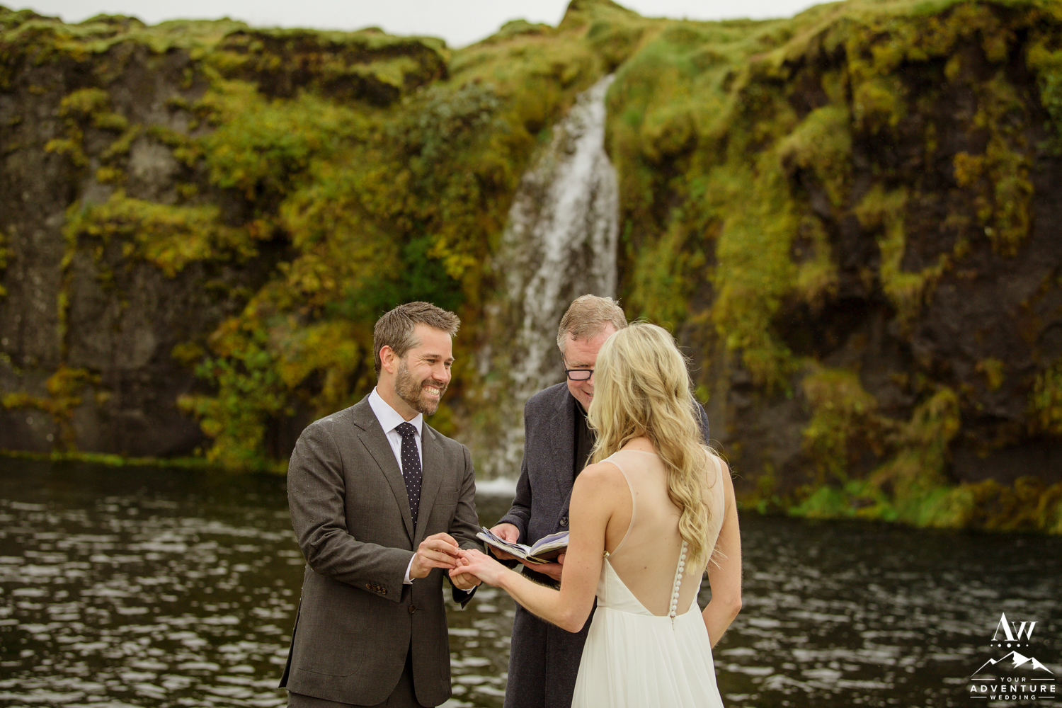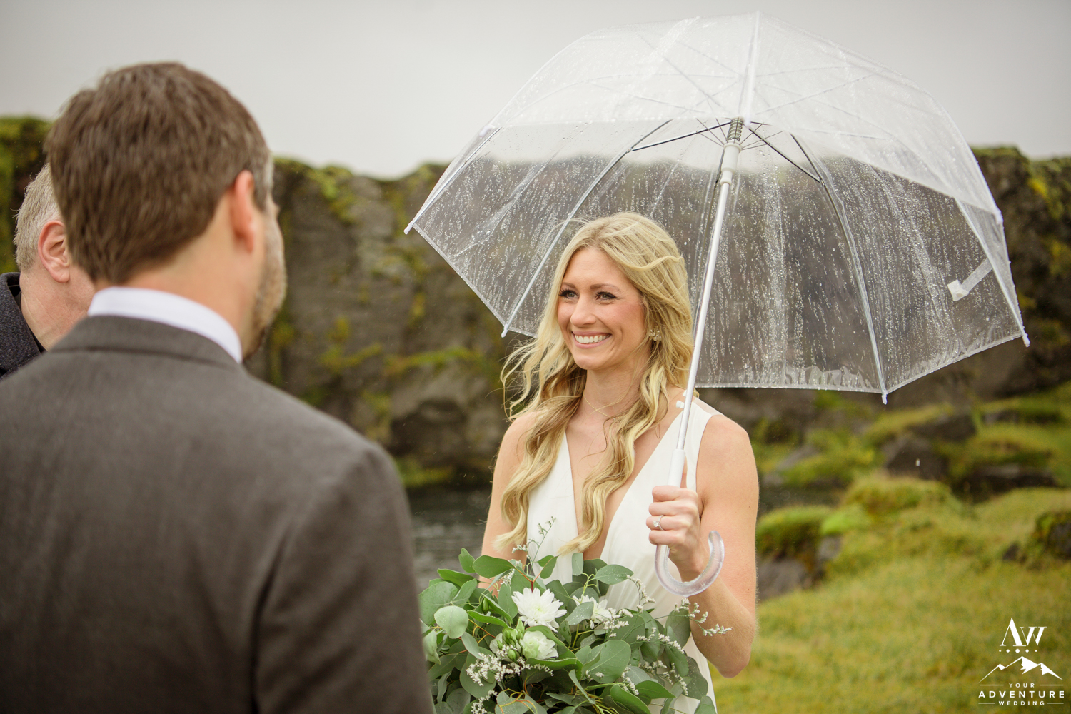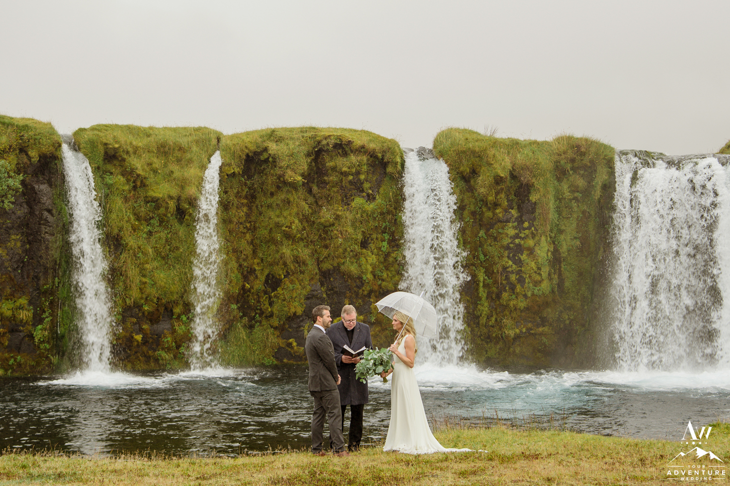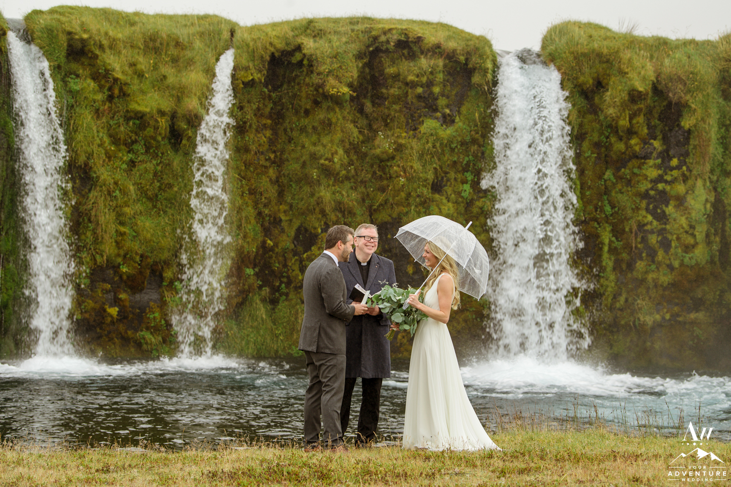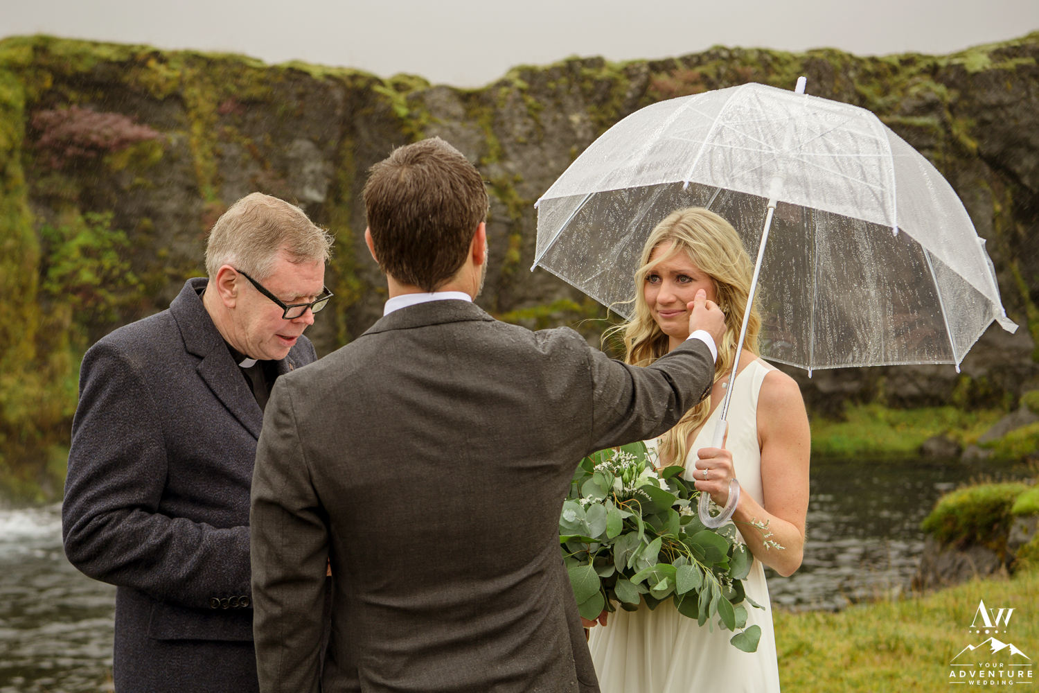 Upon arriving to the private waterfall, Heather and Mike were stunned by it’s beauty! It was PERFECT! Rain or no rain, this was a place that only existed for them!! They grabbed their vow books, rings, and each others hands as they picked the most beautiful Iceland wedding ceremony location! Our Iceland elopement photography captured every bit of the magic too! …Heather and Mike’s emotions during the ceremony were priceless! Talk about being in the moment together, wow! Gotta love how Heather ditches the umbrella half way through to create a strong connection during their Iceland wedding ceremony.