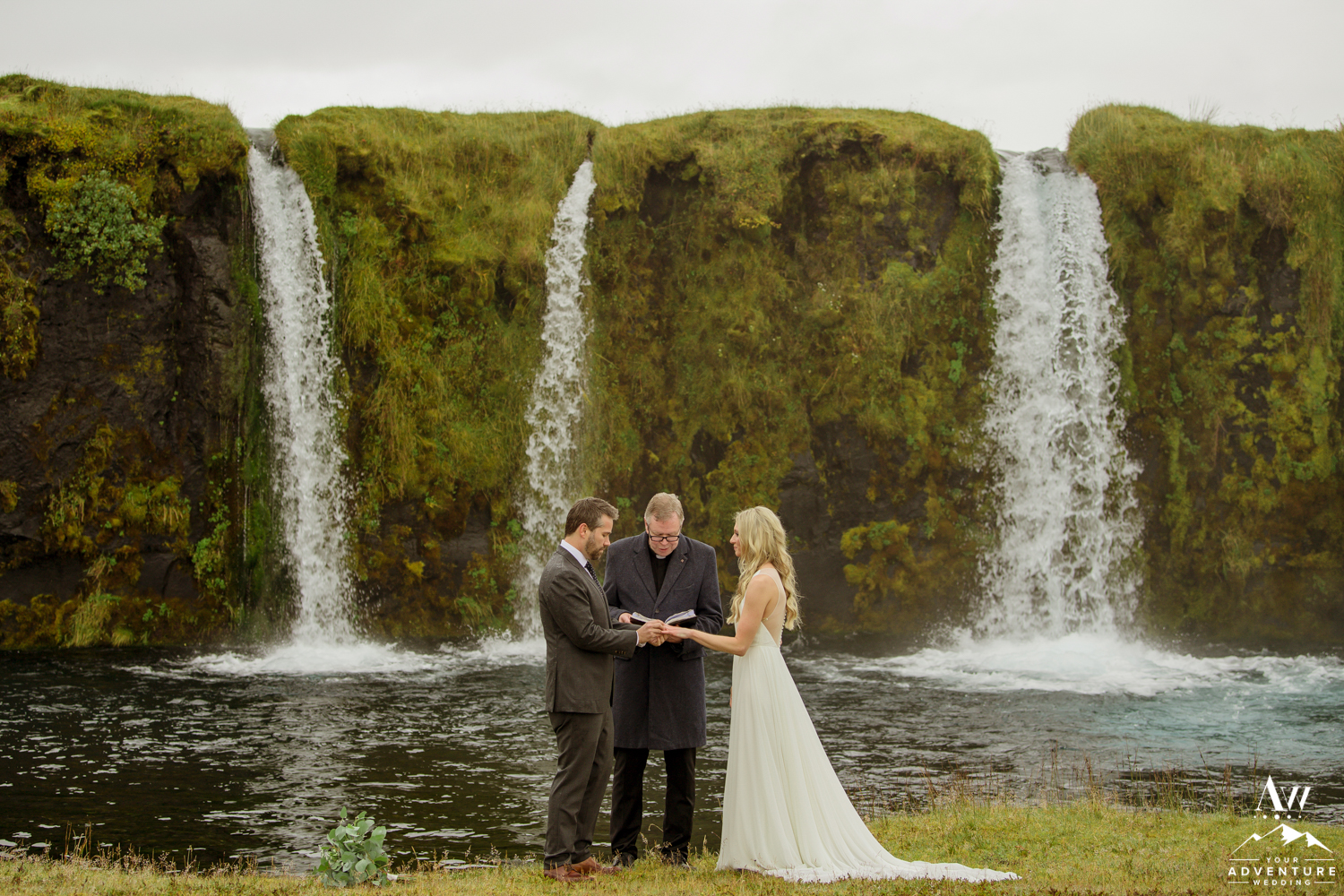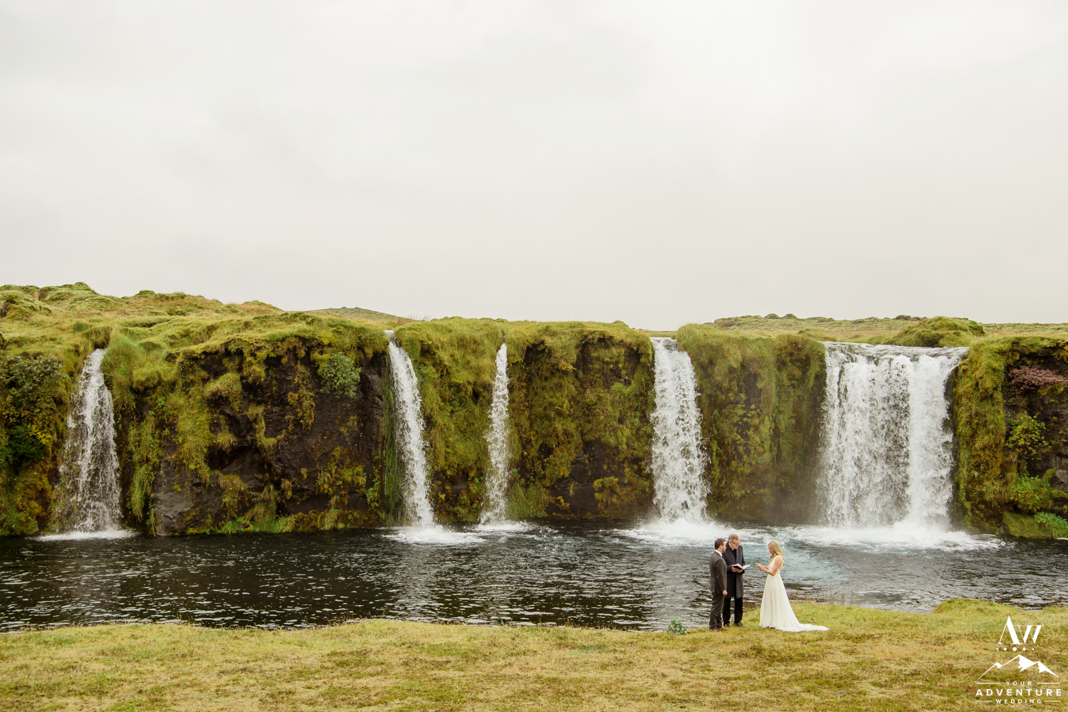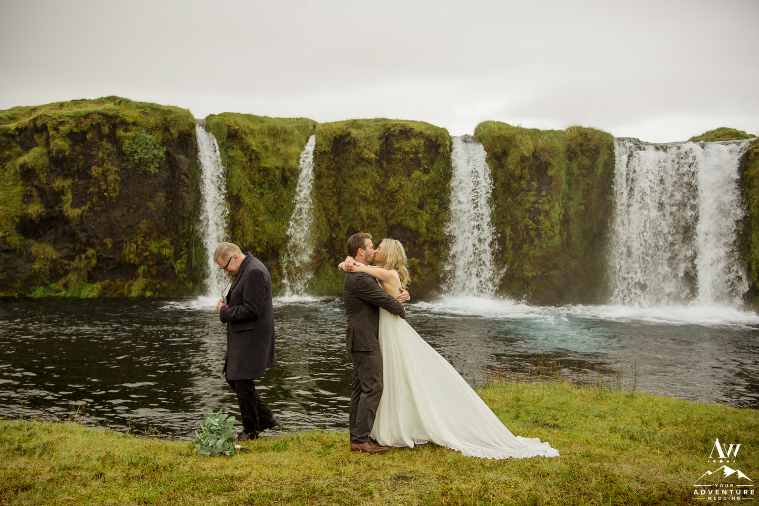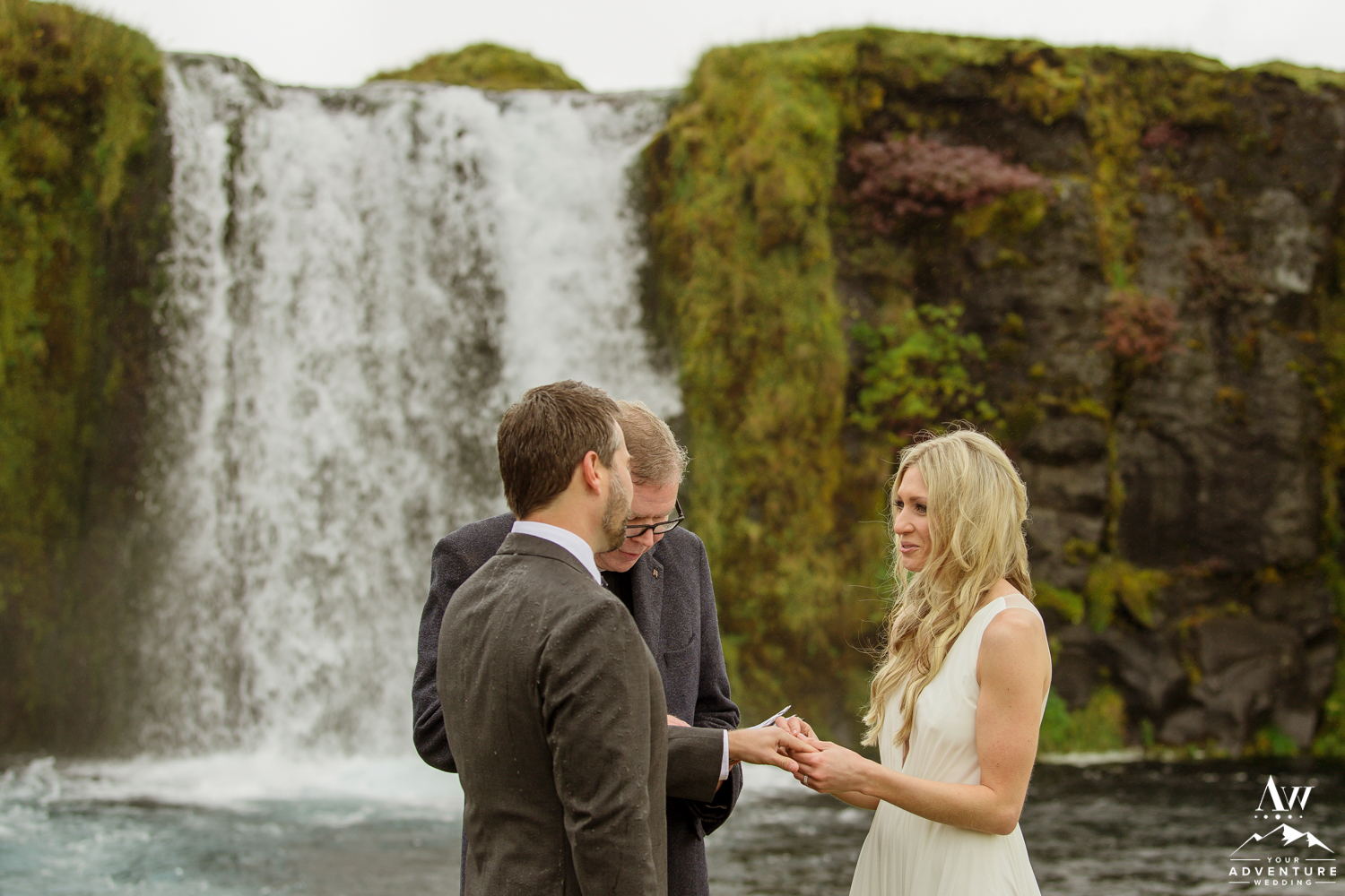 Upon arriving to the private waterfall, Heather and Mike were stunned by it’s beauty! It was PERFECT! Rain or no rain, this was a place that only existed for them!! They grabbed their vow books, rings, and each others hands as they picked the most beautiful Iceland wedding ceremony location! Our Iceland elopement photography captured every bit of the magic too! …Heather and Mike’s emotions during the ceremony were priceless! Talk about being in the moment together, wow! Gotta love how Heather ditches the umbrella half way through to create a strong connection during their Iceland wedding ceremony.