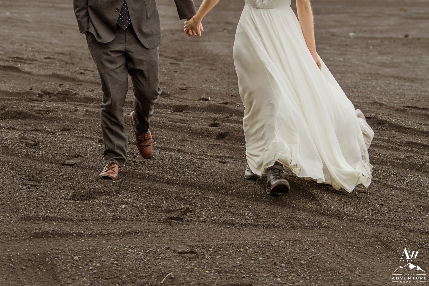 There is an attraction to exploring an area that looks like the moon or Mars on your adventure wedding day. As clique as it sounds, it truly gives you that out of this world feeling. There is a private property area in Southern Iceland that feels like another planet… And it was fitting that Heather and Mike have their first dance as husband and wife in this moon like atmosphere! Our Iceland wedding photographer was loving every single second of it too! …I mean come on look at our Heather’s Iceland wedding dress spun around, DREAMY!