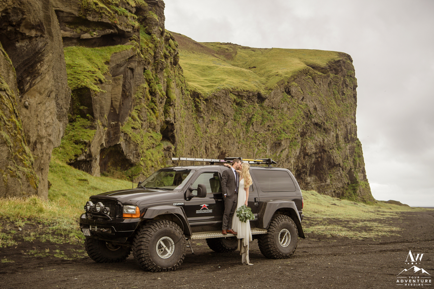 In order to truly have a private waterfall wedding ceremony in Iceland, you need to have permission from the landowner. And the right gear to get you there. Our Iceland Wedding Planner team prides ourselves on ensuring the landscape is better than we found it everywhere we go. So what does this mean? It means having experienced professional drivers taking care on how they drive and also ensuring that they deflate their tires to leave no trace on the landscape. Having seasoned drivers is important too to have the knowledge of how to carefully tread on a private road or not get stuck in a glacier river flow. Because glacier quick sand is a real thing during our adventurous elopements in Iceland.