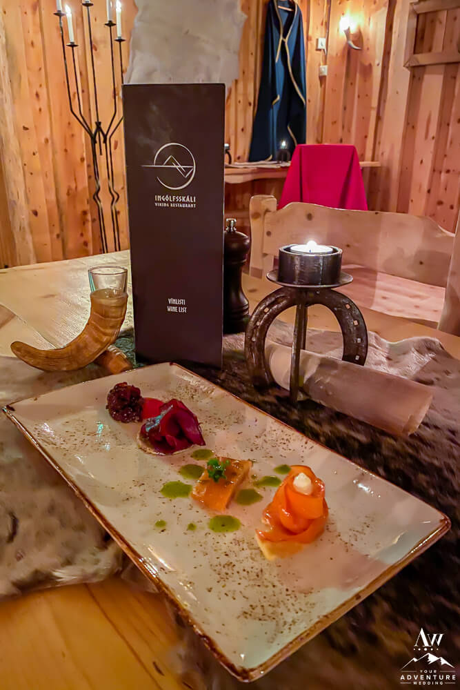There are so many things I adore about Restaurant Klaustur. First, it resides in the town of Kirkjubæjarklaustur which happens to have 4 waterfalls within 5 minutes in all directions. The restaurant has huge windows, super friendly talented staff, and a chef who can craft flavors like no other! No joke, you need to immediately find your way there and put it on your route MAP for a pre, post, or Iceland wedding day reception dinner!