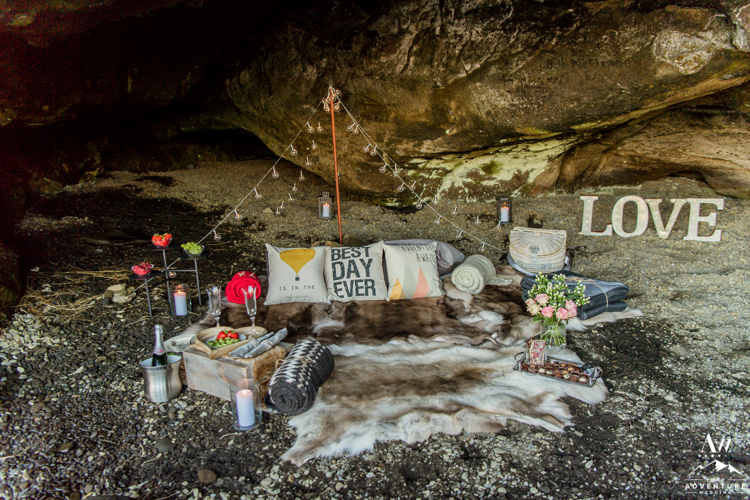 Just because you are eloping, doesn’t mean you shouldn’t be spoiled! Planning a luxury Iceland elopement package, entails a beautiful wedding bouquet, a romantic lunch, and a stunning reception for two!! Having lunch inside of a cave as a warm up is totally an option too during your luxury winter Iceland elopement for example!