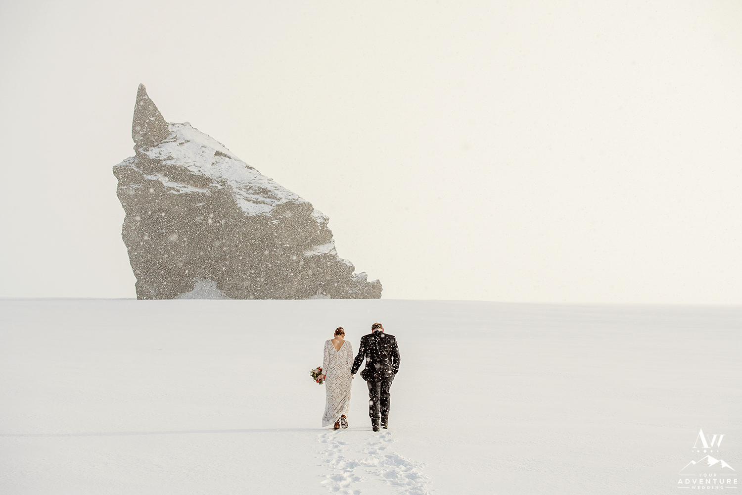 Maybe as part of your wedding experience, you picture yourself hiking 30-60 minutes to your ceremony location… You know, so you get that “I earned it” feeling even before you start! Hiking elopements are hands down our favorite to plan! Doesn’t always have to be a long hike either. Could be 25 minutes or 10 minutes trudging through rivers in your muck boots. But if you are feeling more adventurous, it could mean hiking an hour on the glacier, abseiling down into an ice canyon and ice climbing out, canyoneering through a waterfall, or doing that 2 hour one way ambitious hike.