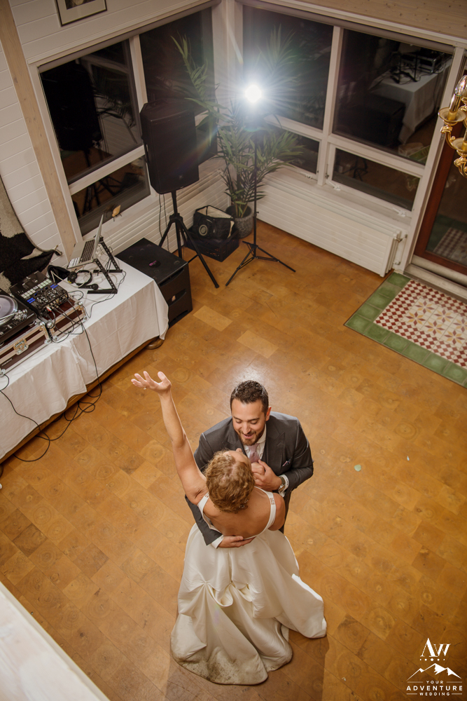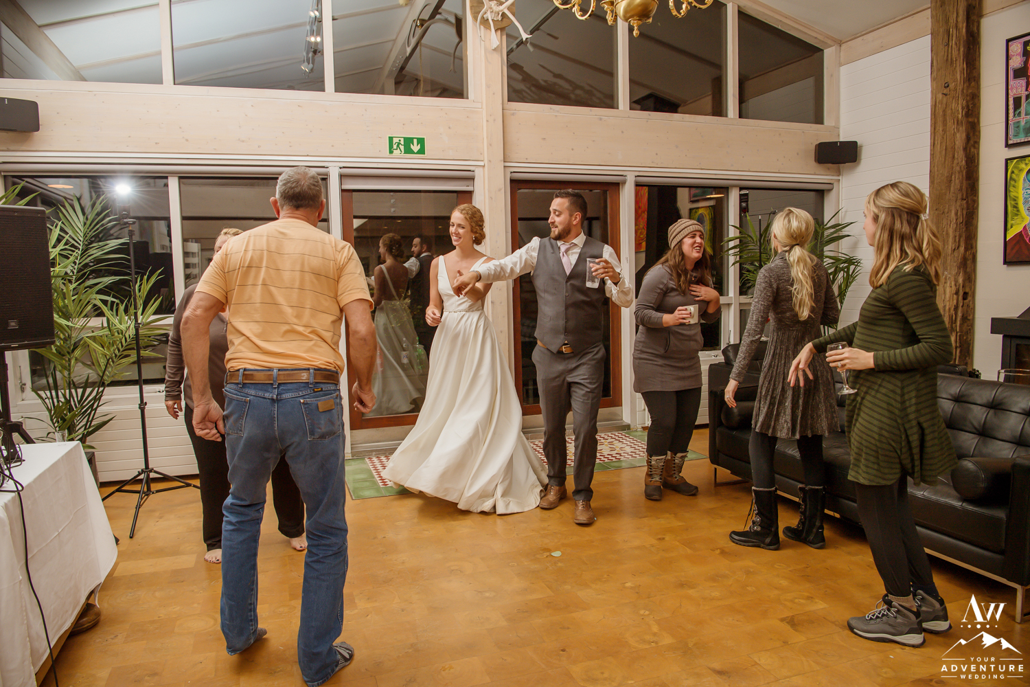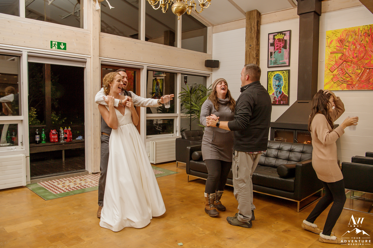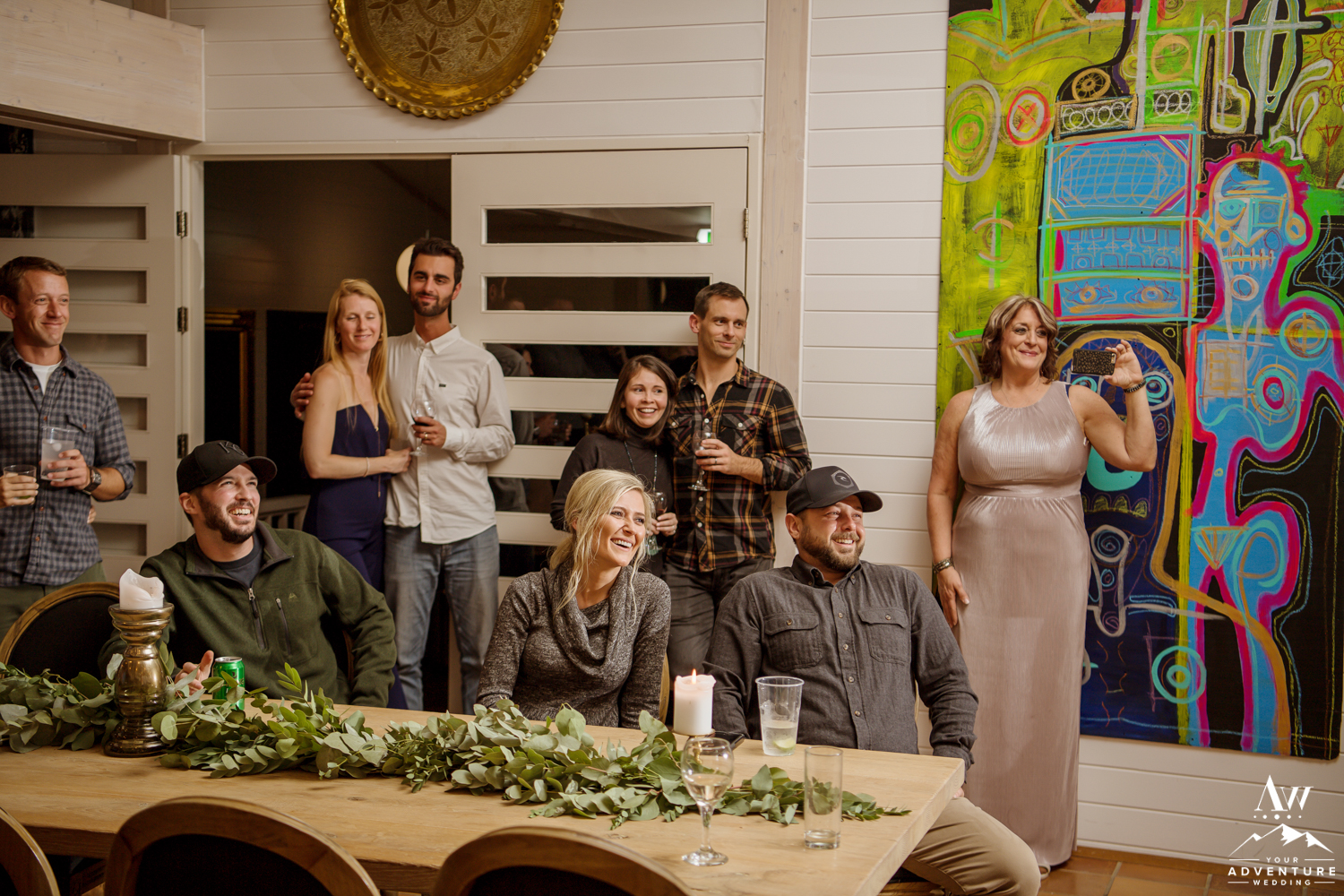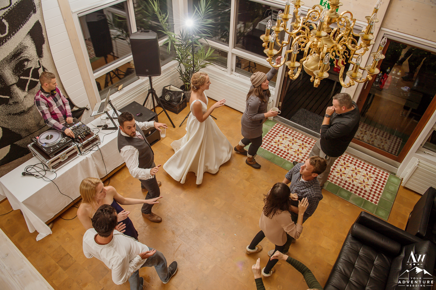 7:30pm came and the guests gathered around the elegant long table for a grilled buffet dinner provided by the Borealis Catering team. Around 9:30pm the room transitioned to a DJ dance party to finish the night! I imagine the after party continued outside on the deck, in the hot tub, and around the fire pit hoping for northern lights!