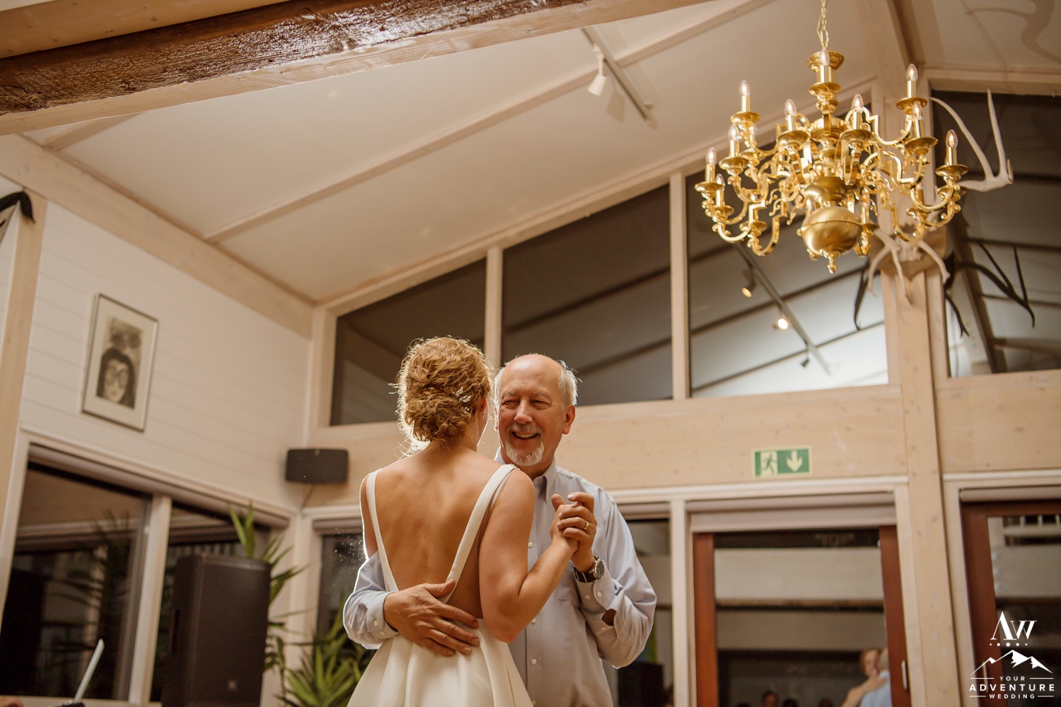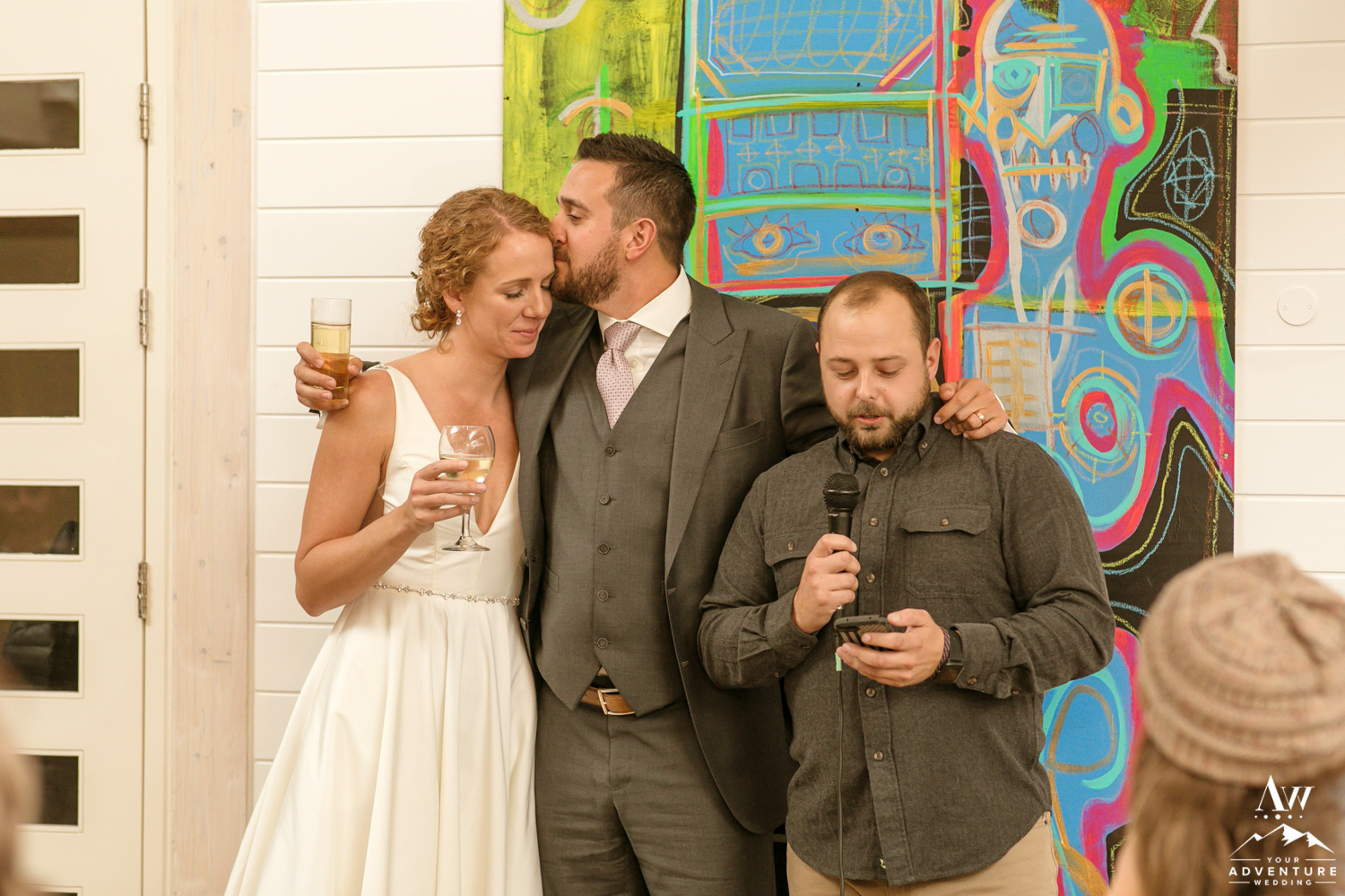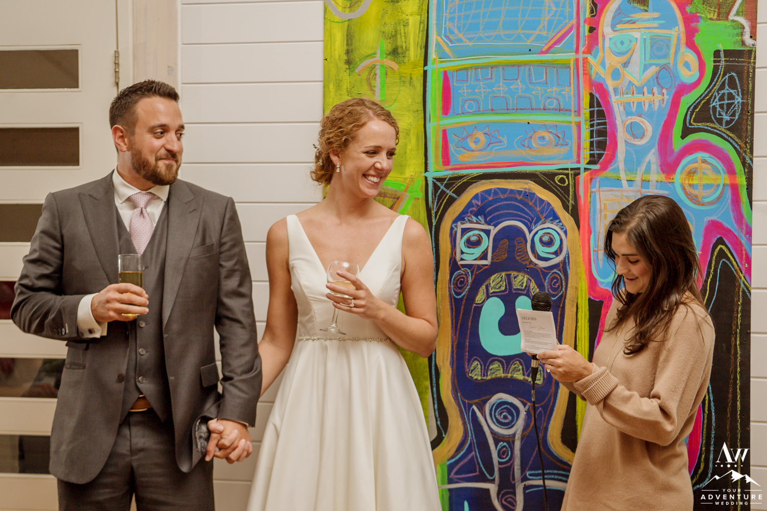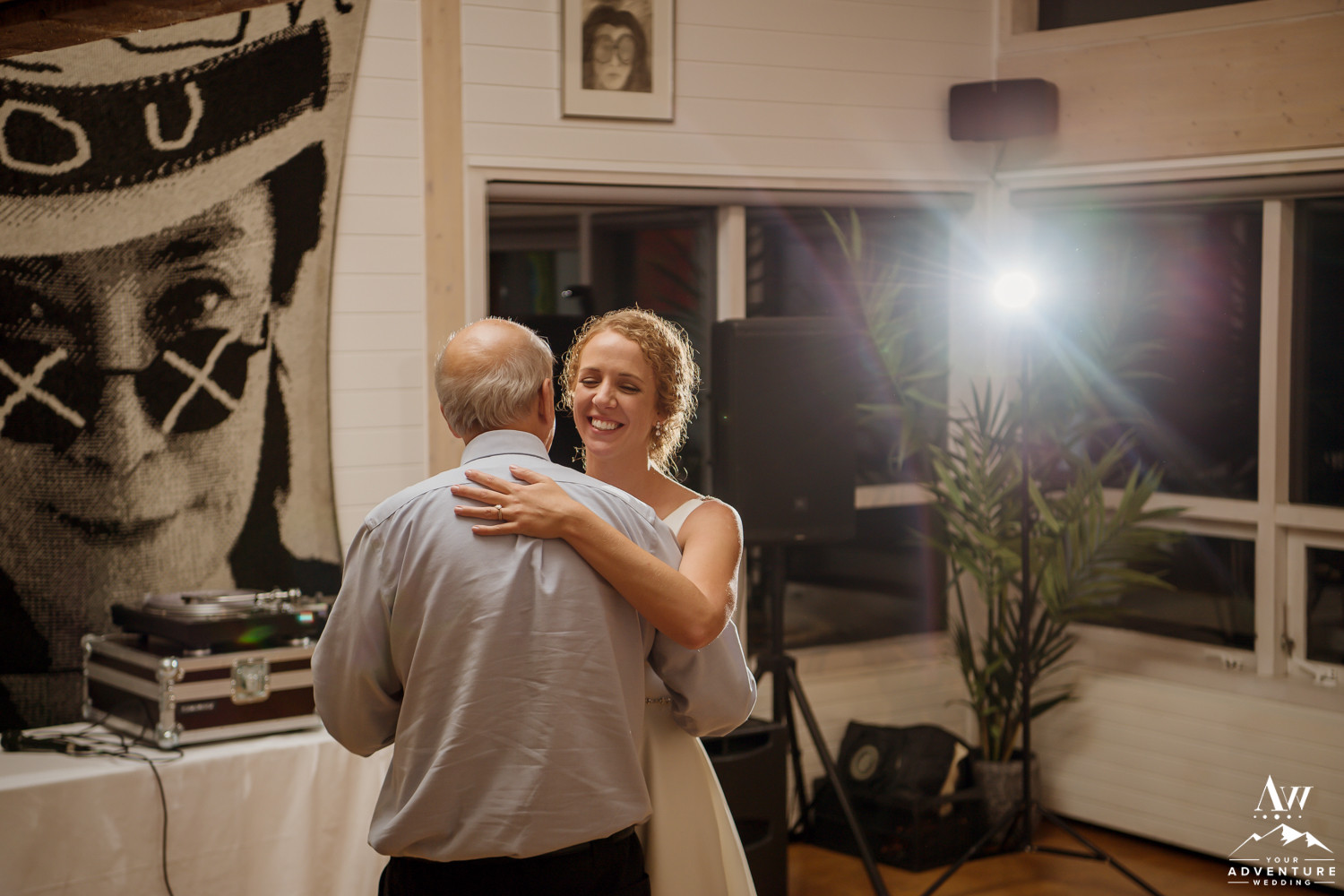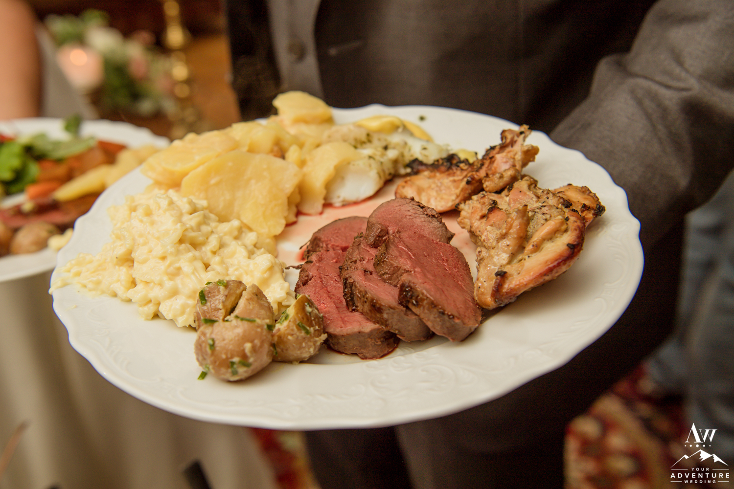 7:30pm came and the guests gathered around the elegant long table for a grilled buffet dinner provided by the Borealis Catering team. Around 9:30pm the room transitioned to a DJ dance party to finish the night! I imagine the after party continued outside on the deck, in the hot tub, and around the fire pit hoping for northern lights!