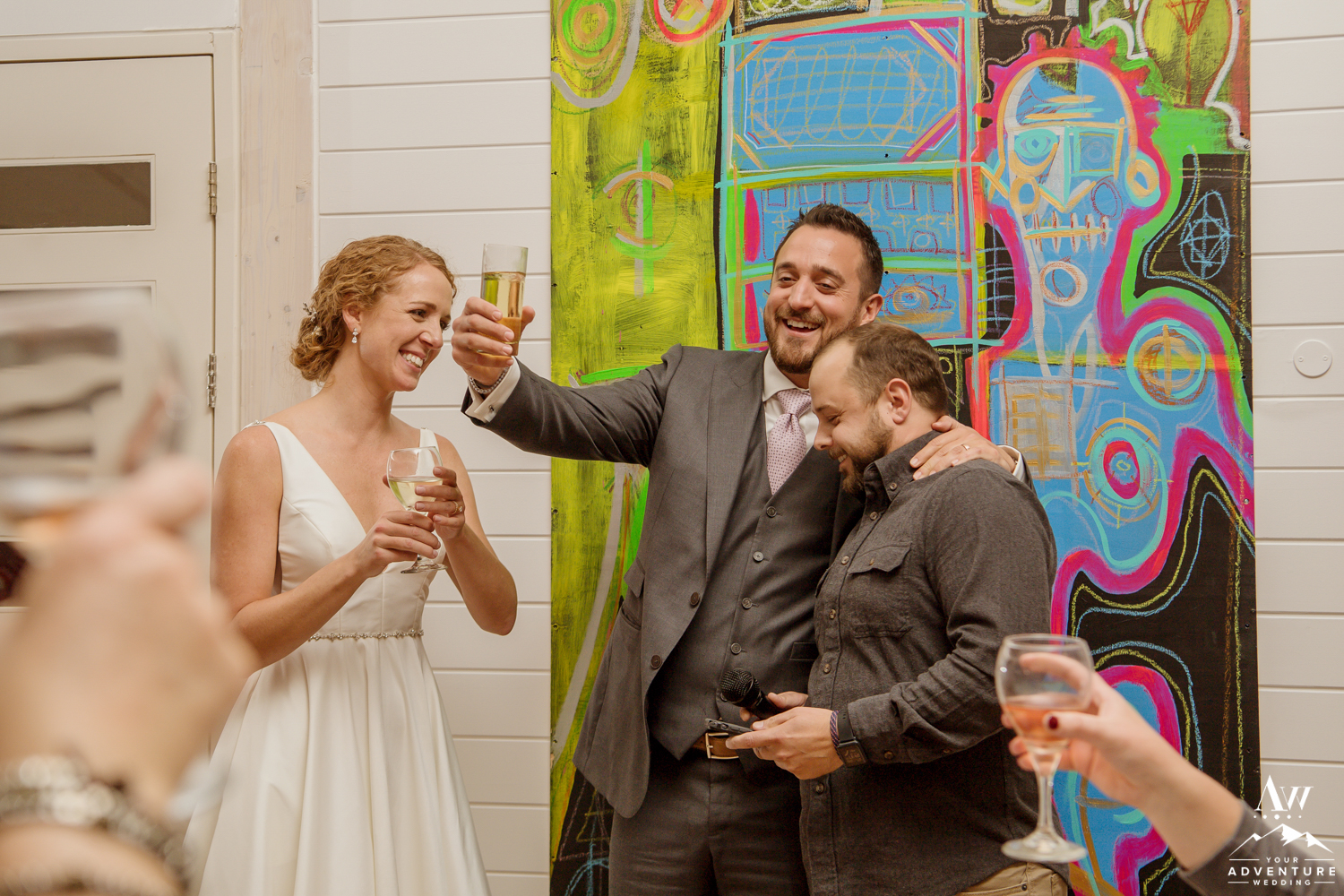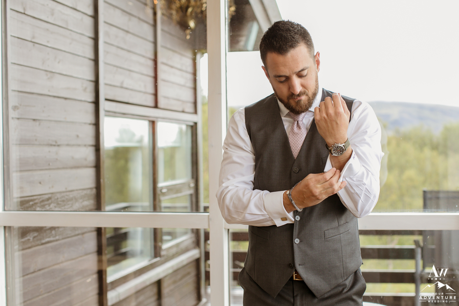 Half day adventure weddings begin around 9am (versus our 5am usual start). The luxury lodge wedding house was bustling around upon our teams arrival. For example, the mum’s were in the kitchen cooking brunch for everyone, Erin and her ladies were full on sipping mimosas and Jake was in the game room writing his vows.