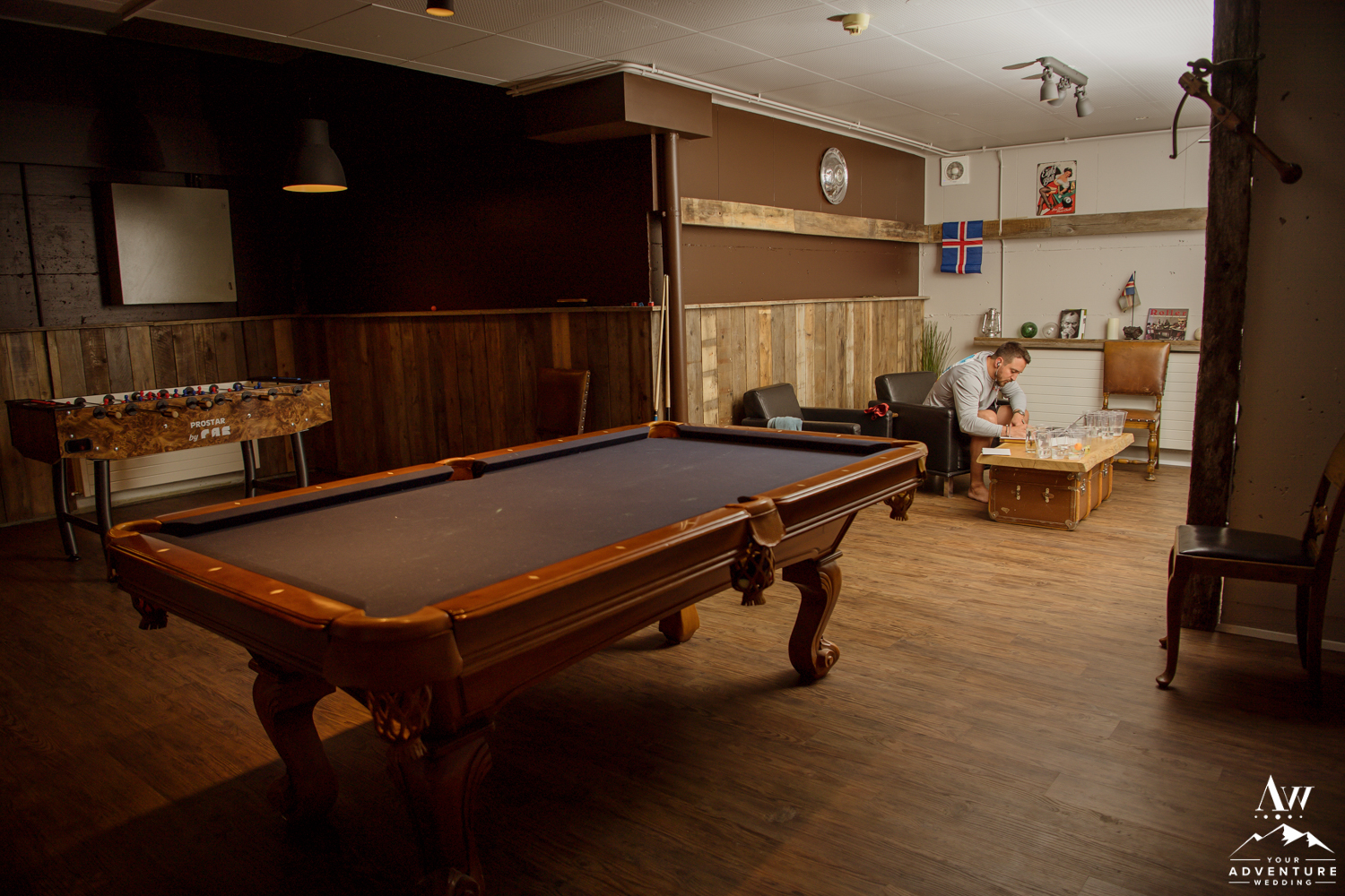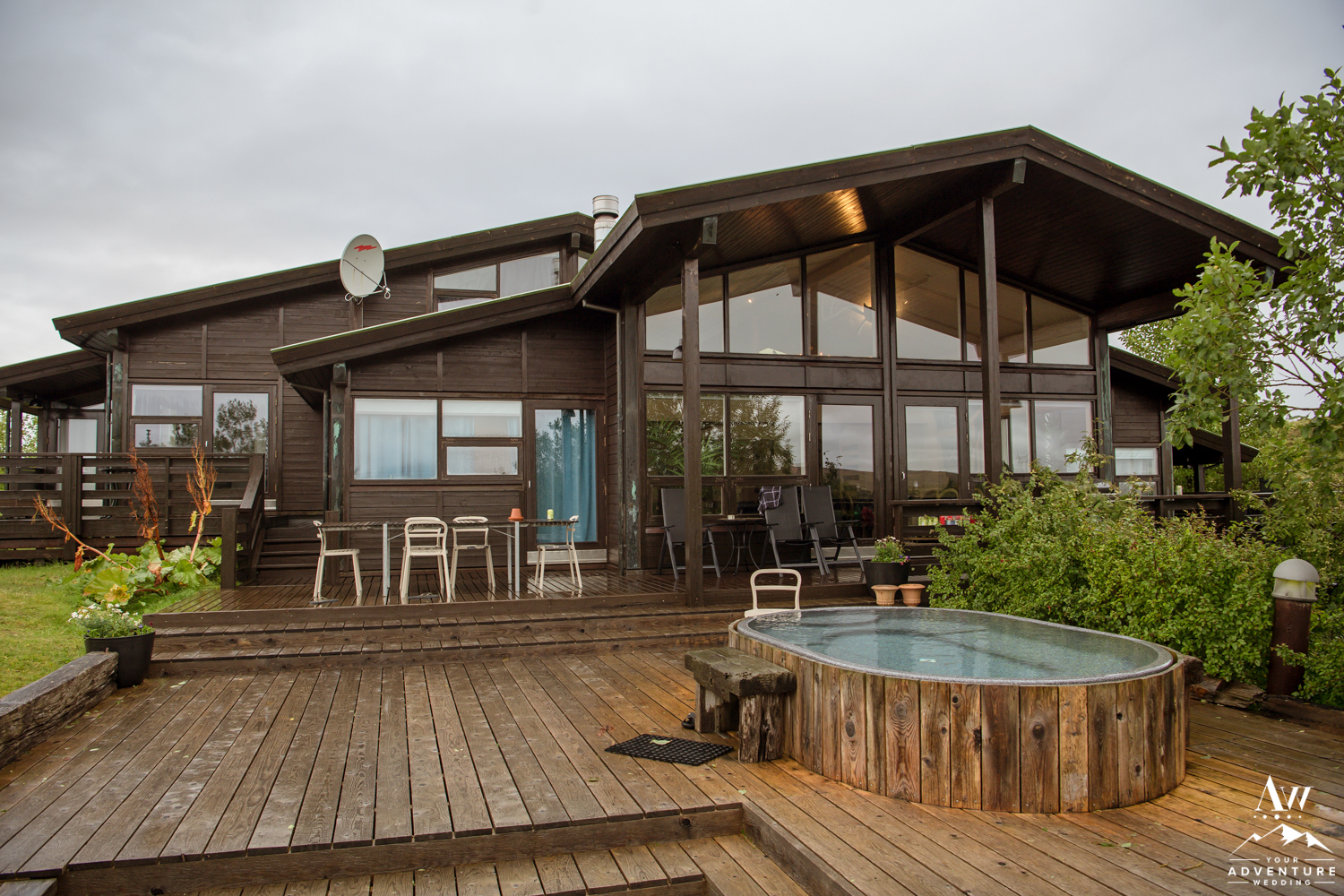 The lodge is owned by a pair or brilliant entrepreneurial sisters who know how to style and understand what luxury means, by American standards. Having a luxury lodge wedding, means you can house your small wedding group (up to 19 people) under one roof or host an Iceland wedding reception sit-down dinner for up to 40 people comfortably. For instance, you’ll find 9 rooms; 9 bathrooms; a game room; sauna; wooden bathtubs, gym, fireplace, bar, commercial kitchen, large outdoor hot tub; and last but not least a fire pit! Oh la la the lap of luxury while on a week vacation in Iceland!!