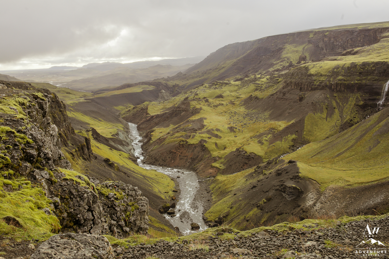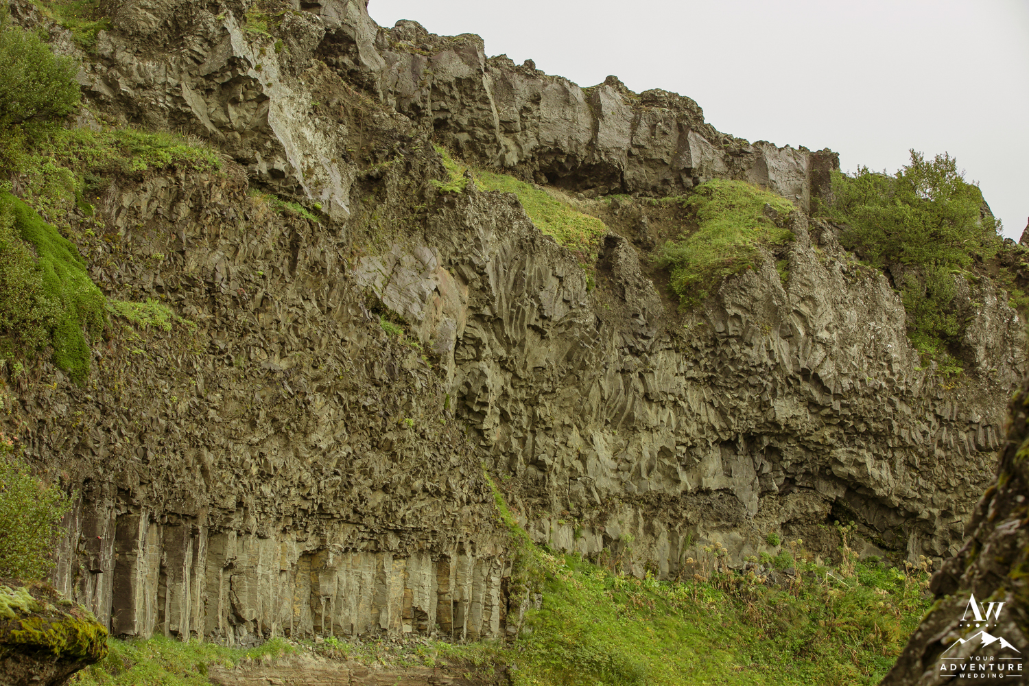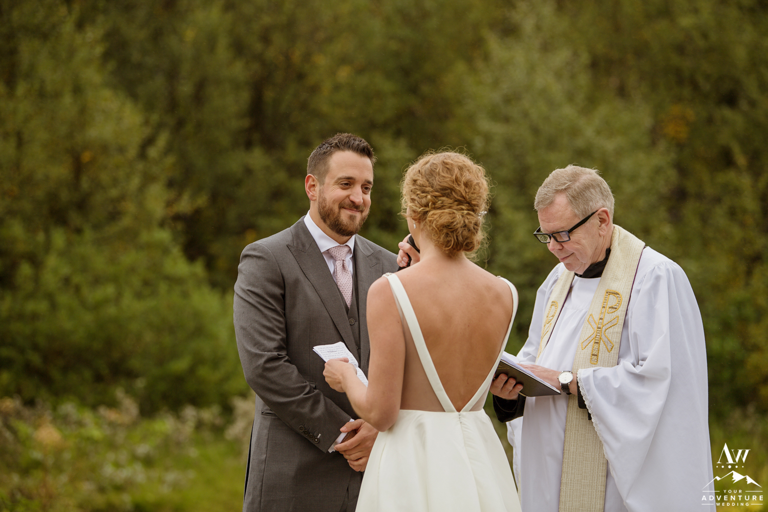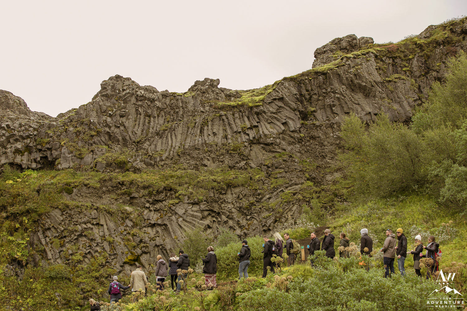 It was important to Erin and Jake to have a ceremony location which we could ensure exclusivity during the ceremony and our team did just that! This sweet offbeat waterfall area sits in a valley where countless waterfalls stream. It was an easy 10-15 minute walk for guests to get down into and the guests were greeted with a seated Iceland wedding ceremony. They held an inspiring wedding ceremony where they said their personal vows to each other as well. Following the ceremony, they had a big group photo op, family photos, and then Erin and Jake parted from their guests for a hike!