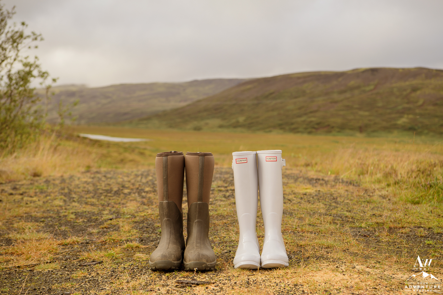 When you plan a wedding with guests it is nice to have a one of the locations during your adventure wedding day that is just experienced by the two of you. Gives you some really intimate fun memories. And don’t worry about your guests during this time either, they are having their own mini adventure within your big adventure you are gifting them! Erin and Jake were crazy excited to slip into their muck boots and hike through rivers with our Iceland wedding photographers, Ann and Christy!