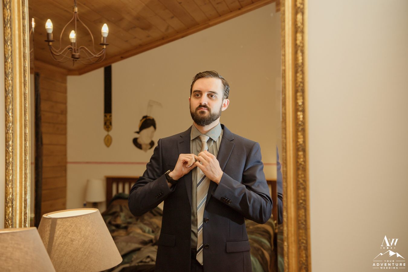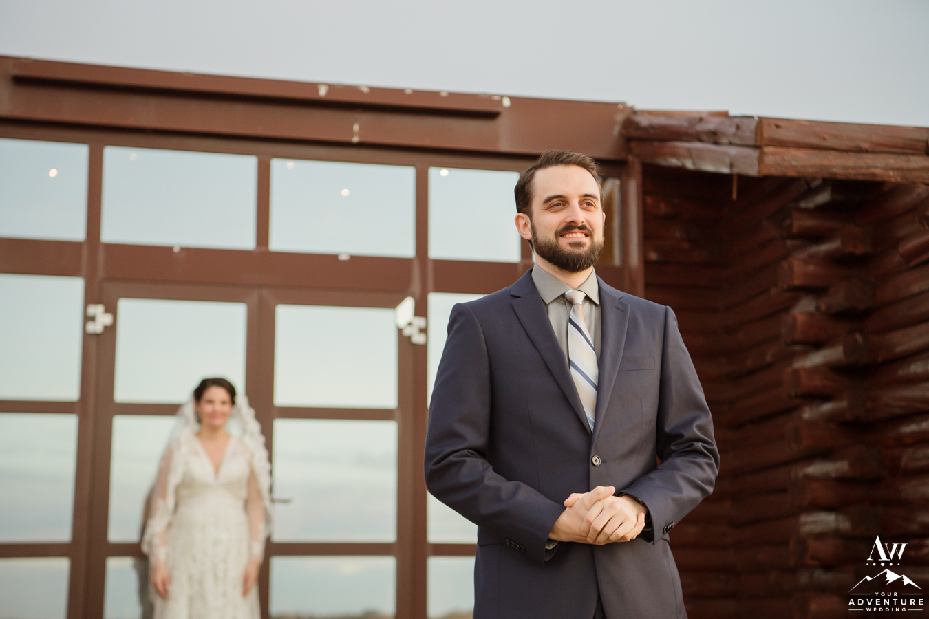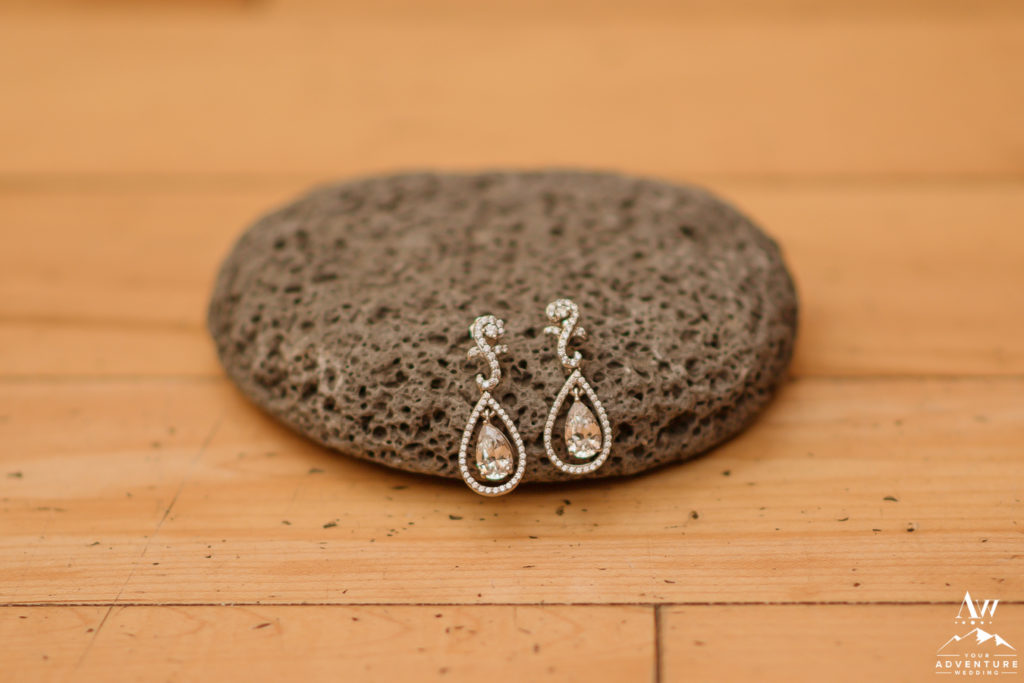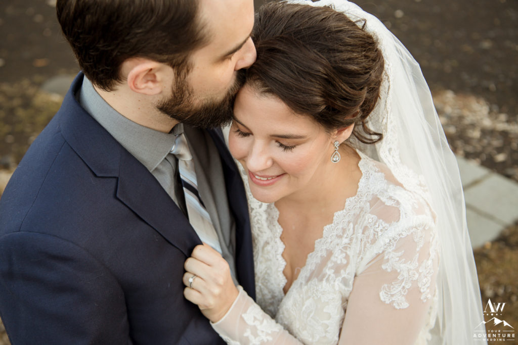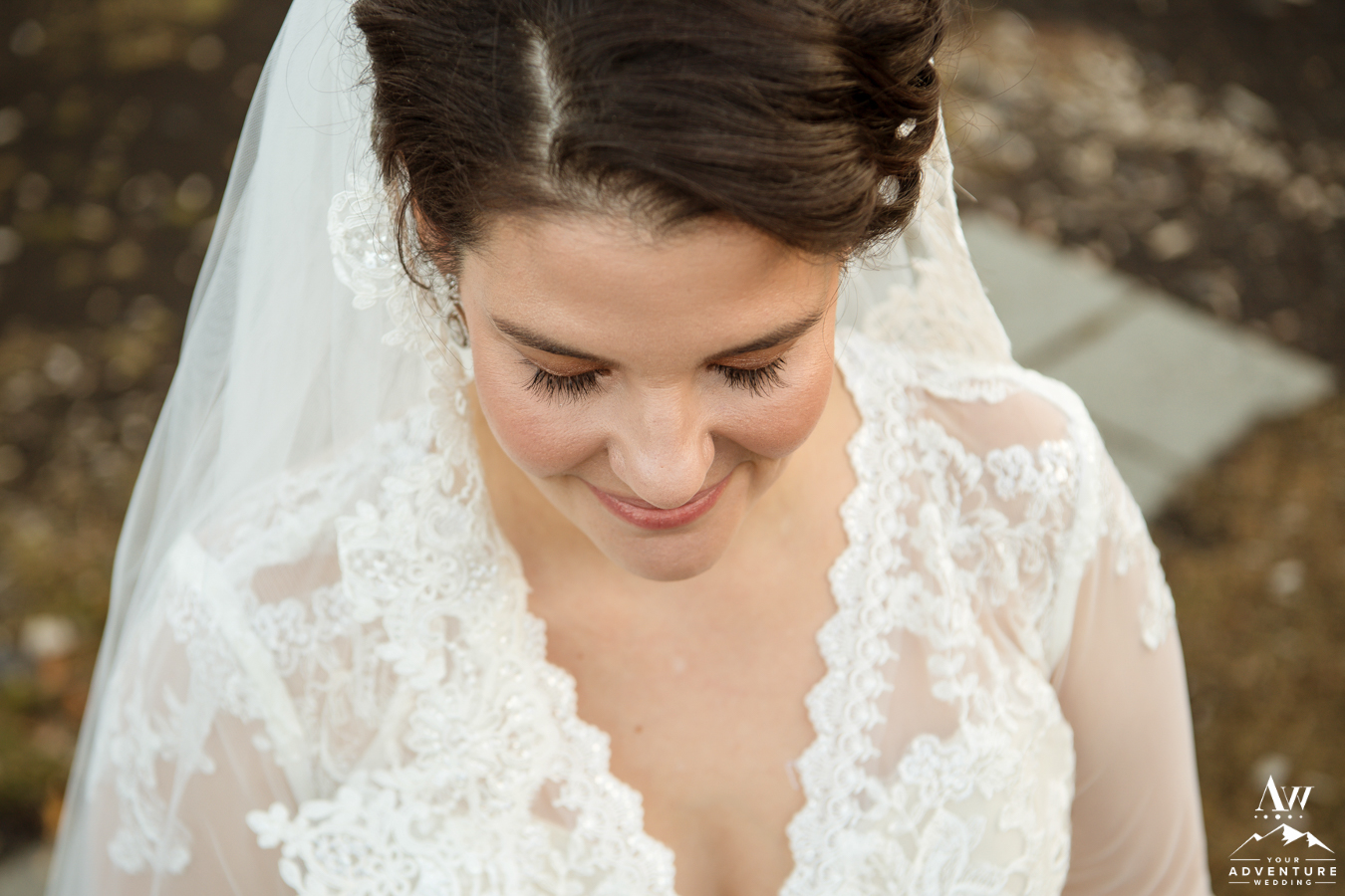 Casey’s Iceland wedding dress has intricate lace details and she paired it with Sorel snow boots and tall rain boots for different parts of the adventure day. Both Casey and Zach were fully prepared to hike through rivers all day and couldn’t wait for their mountain top wedding ceremony! Likewise, after packing their “go bags” they took the opportunity as the super jeep was arriving to have a quite “first look.”