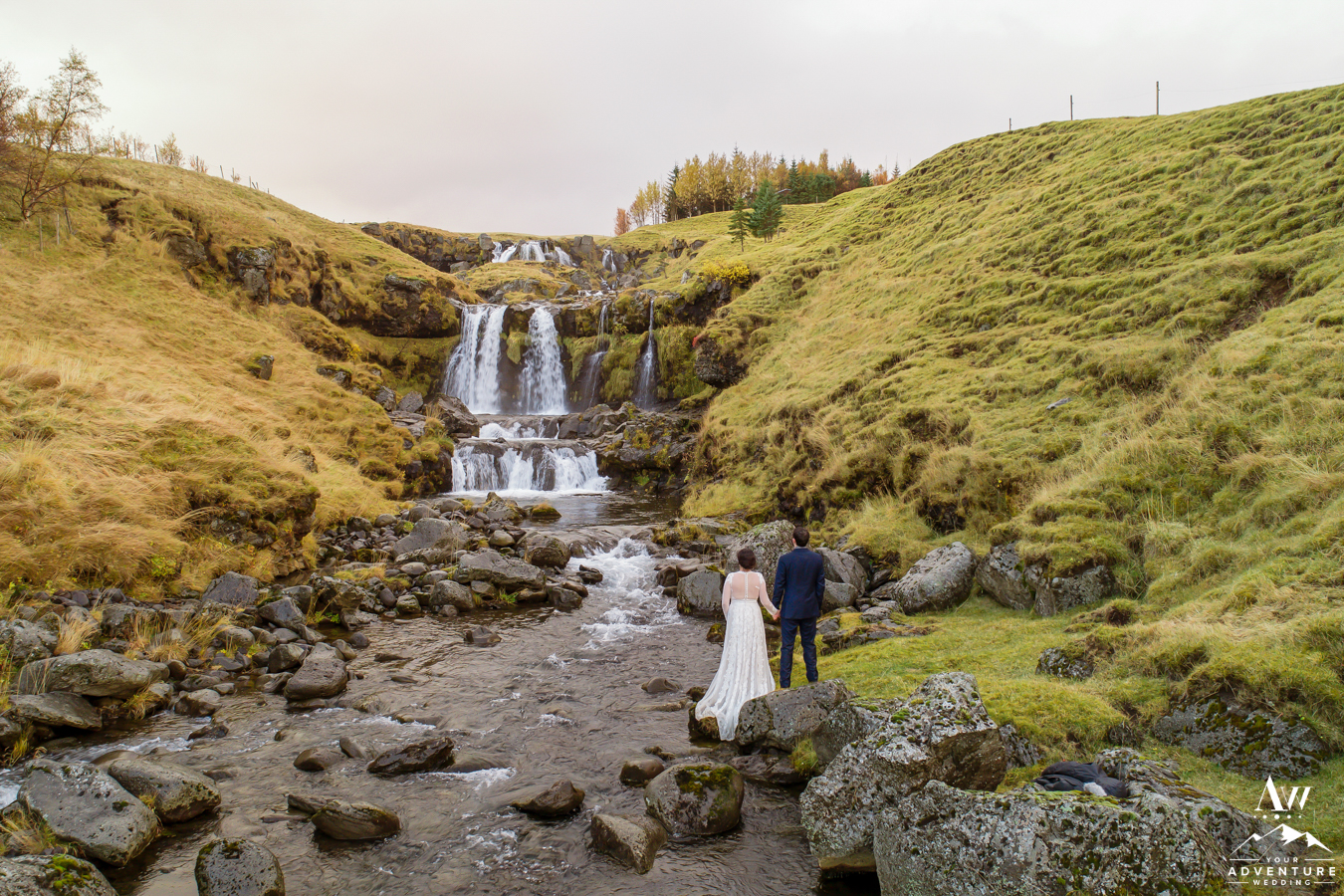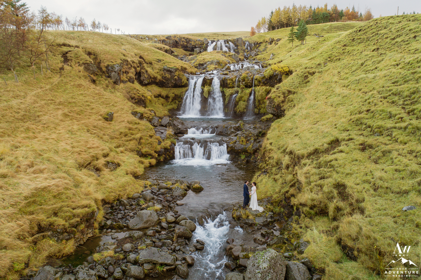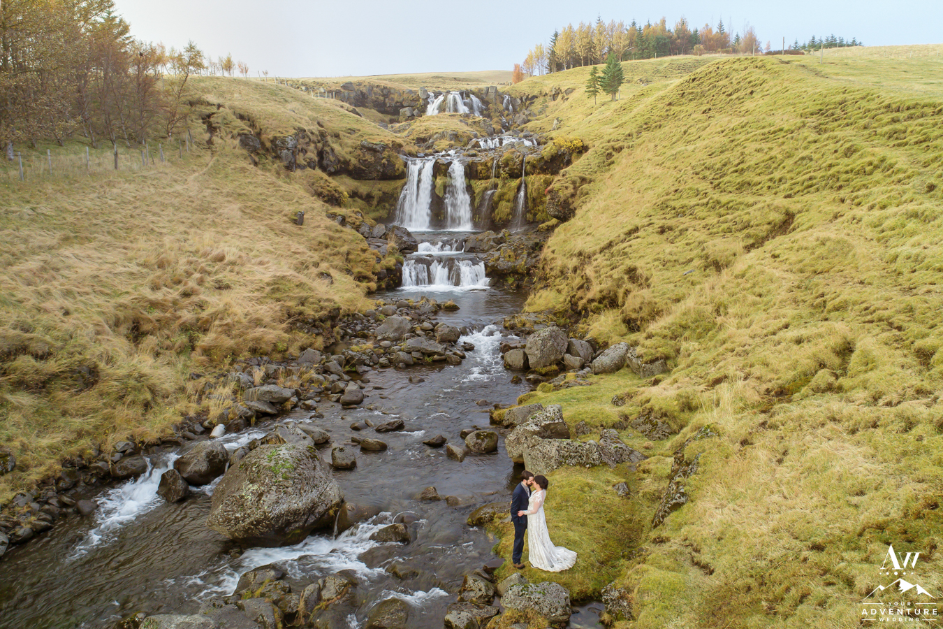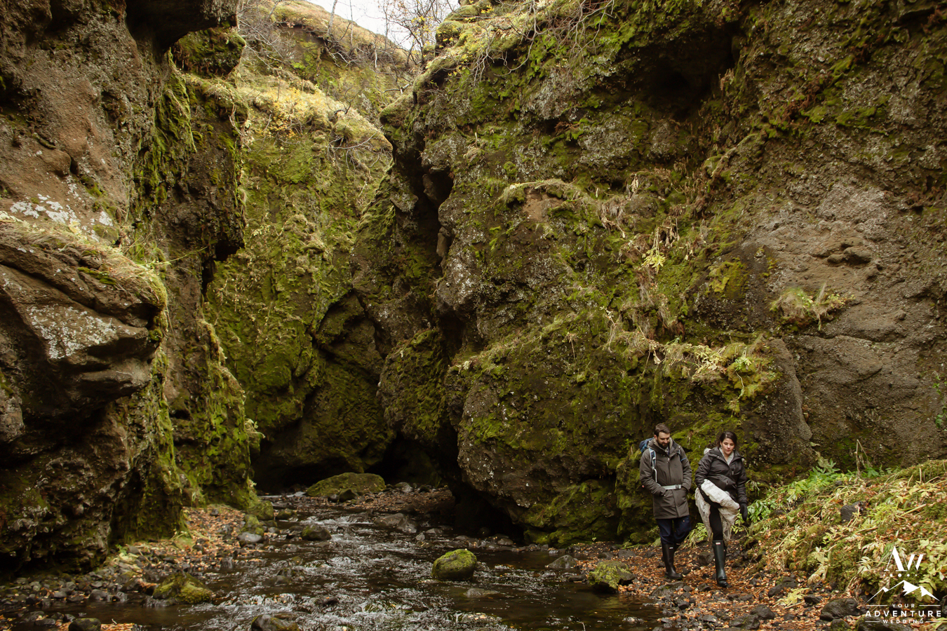 During their hiking elopement adventure they slide on their rubber boots on to cross several rivers! They freaking loved exploring the cave and canyon!! This fabulous Iceland wedding location also gave our adventurous elopement photographer the opportunity do some drone wedding photos! Such epic memories for Casey and Zach to cherish!!