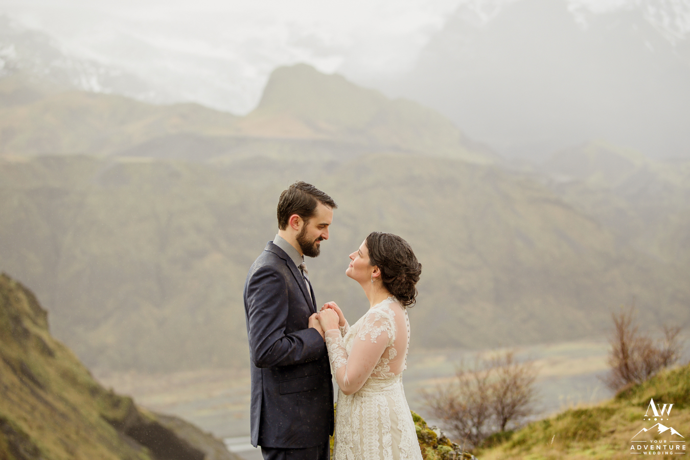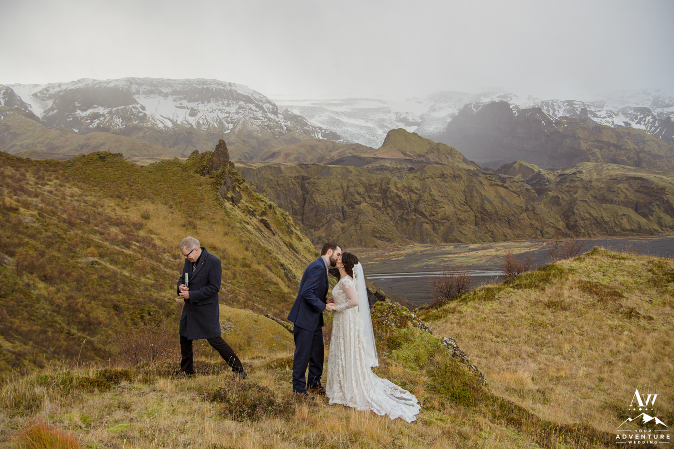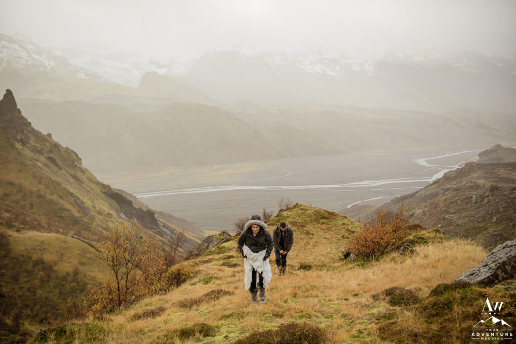 Previously, as we alluded to before, many of the mountains in Iceland are easy hiked in 30-60 minutes. For Zach and Casey’s elopement in Iceland we were on our way to one that offers a stunning view and excellent adventure on the way… Hello super jeep deep river crossings! Unlike other celebrants that perform wedding ceremonies in Iceland. Our favorite Pastor is willing to hike up mountains, seriously he totally rocks! Also he is willing to craft amazing mountain top wedding ceremonies in the rain!