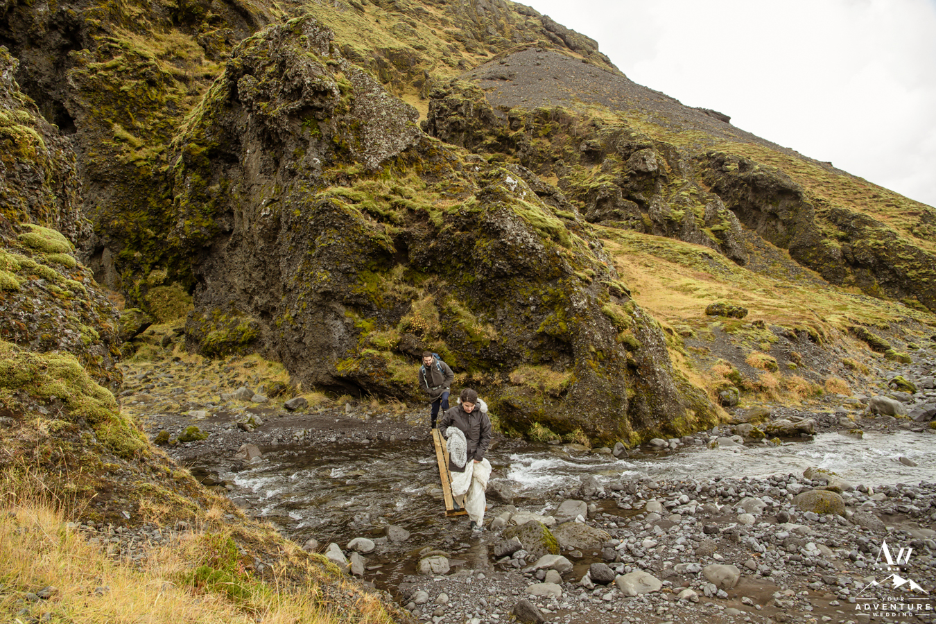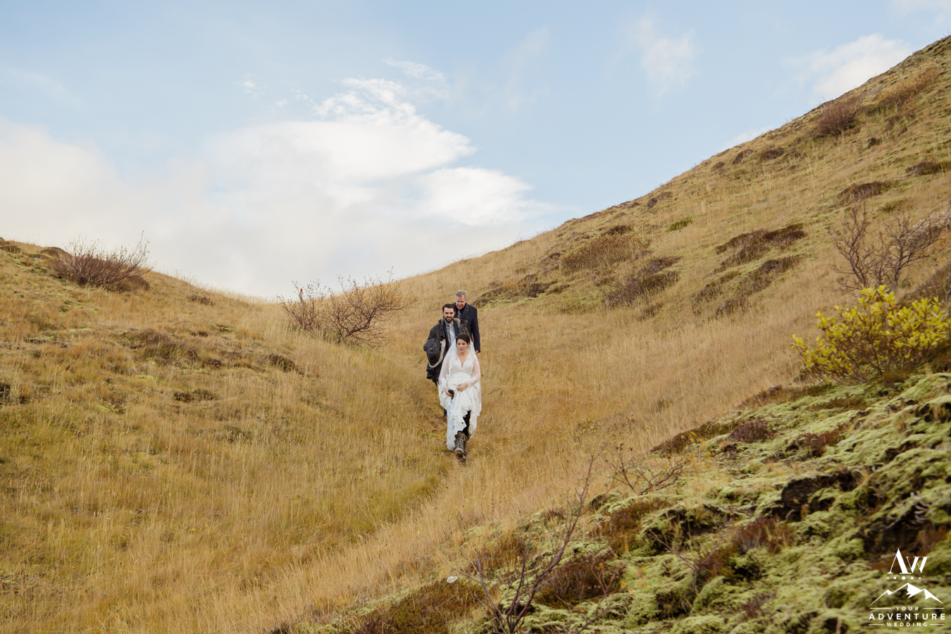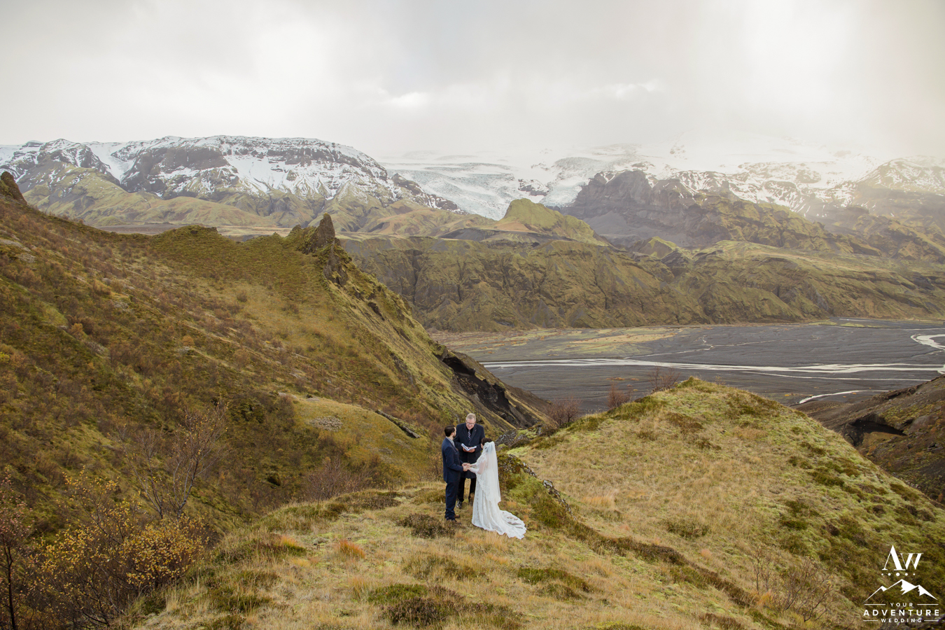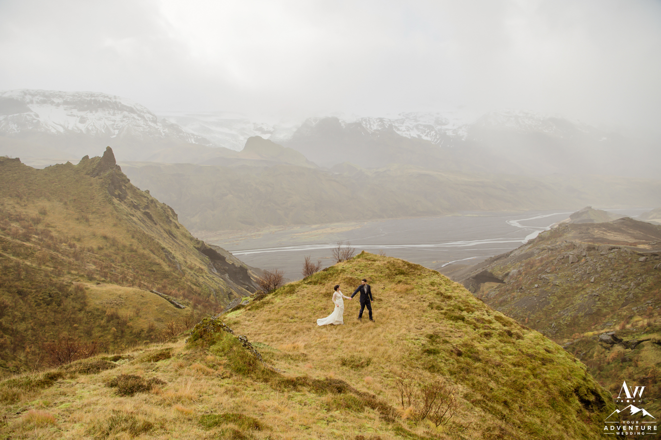 Previously, as we alluded to before, many of the mountains in Iceland are easy hiked in 30-60 minutes. For Zach and Casey’s elopement in Iceland we were on our way to one that offers a stunning view and excellent adventure on the way… Hello super jeep deep river crossings! Unlike other celebrants that perform wedding ceremonies in Iceland. Our favorite Pastor is willing to hike up mountains, seriously he totally rocks! Also he is willing to craft amazing mountain top wedding ceremonies in the rain!