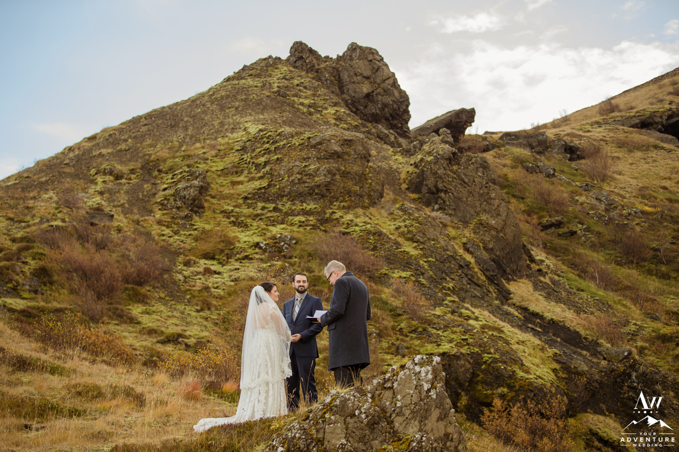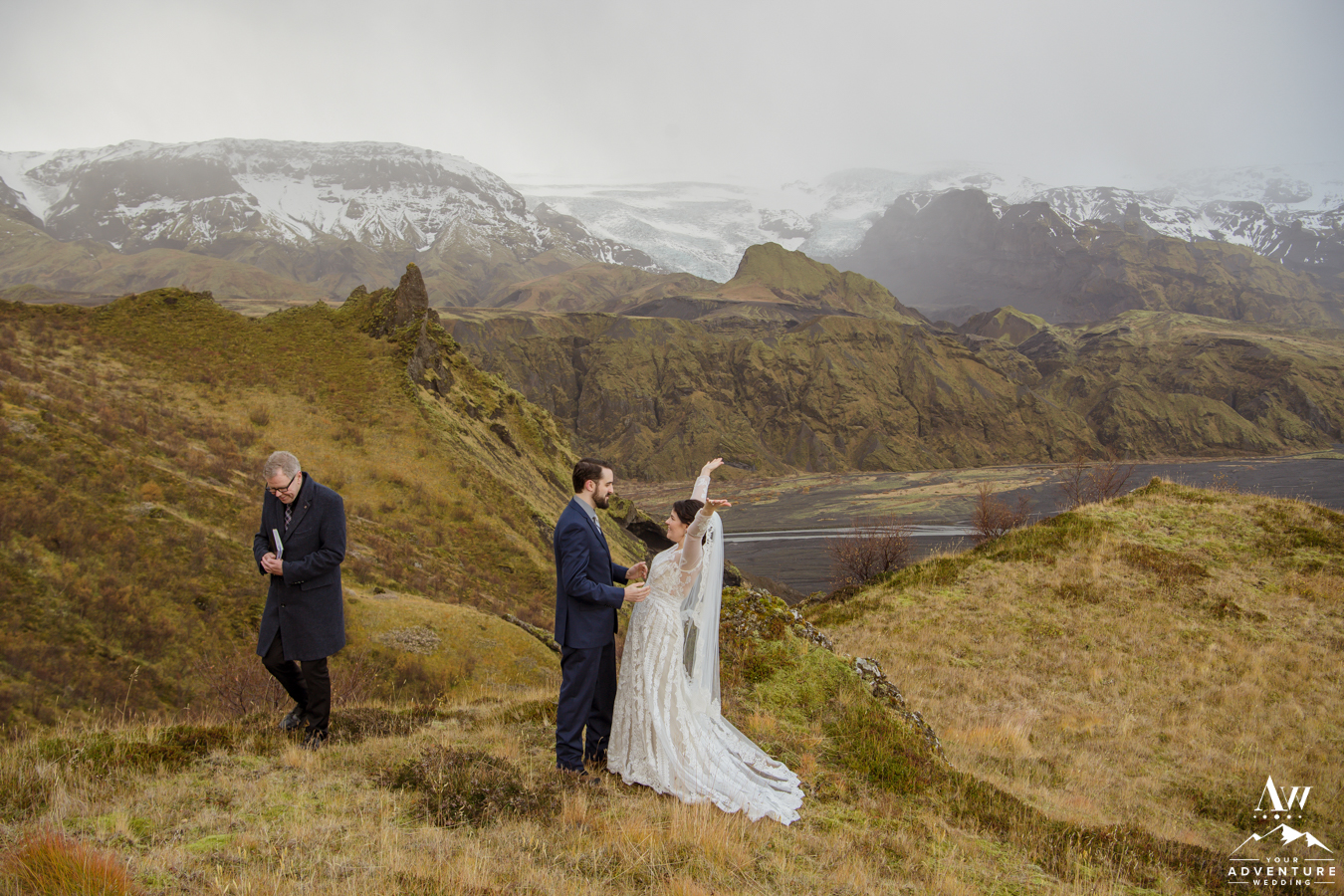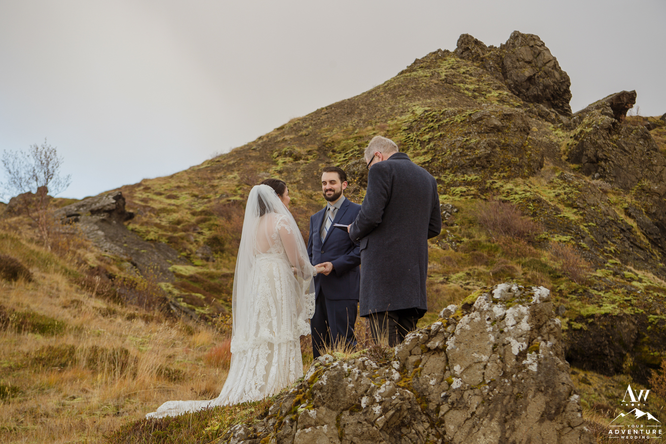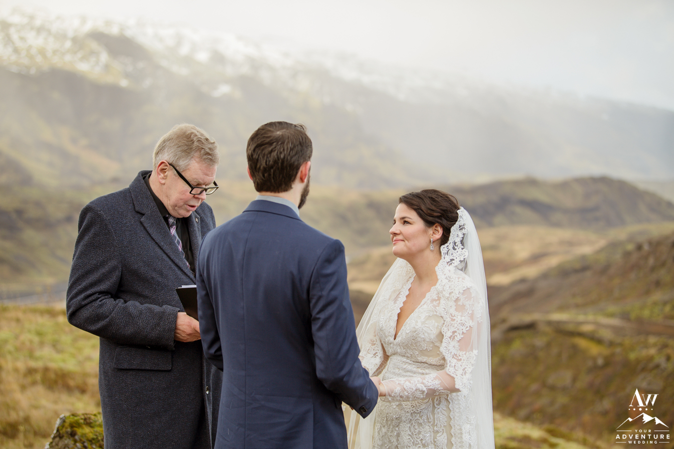 Speaking of rain, we always prepare our clients to literally picture yourself in the “worst weather possible” and come to terms with it happening. Without a doubt, you need to embrace the weather and understand that it is all part of the story and adventurous elopement experience! That October morning, it drizzled during the ceremony. But it only made Zach and Casey smile bigger and feel more connected to the Icelandic nature during their mountain top wedding ceremony!