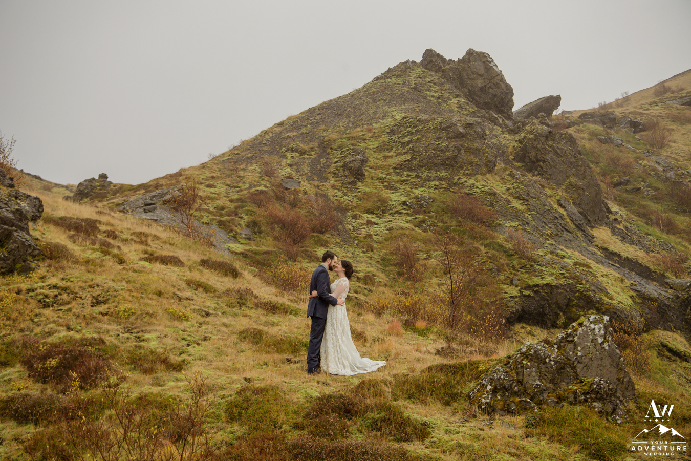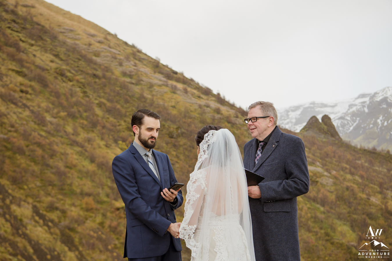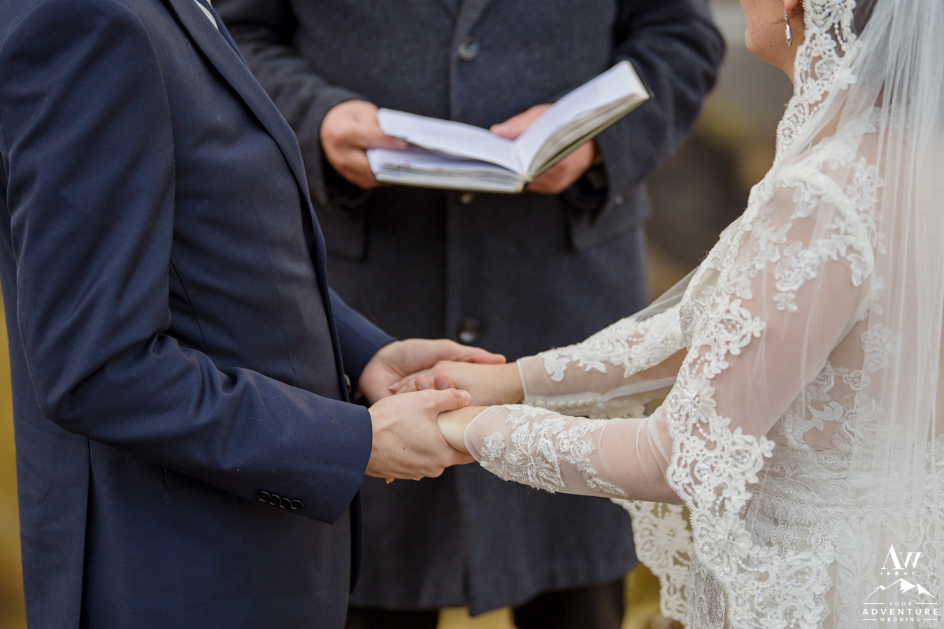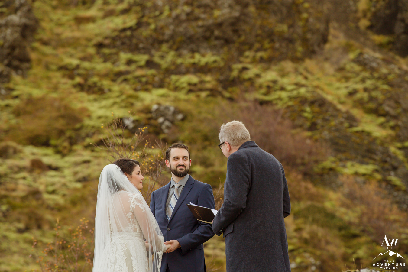 Speaking of rain, we always prepare our clients to literally picture yourself in the “worst weather possible” and come to terms with it happening. Without a doubt, you need to embrace the weather and understand that it is all part of the story and adventurous elopement experience! That October morning, it drizzled during the ceremony. But it only made Zach and Casey smile bigger and feel more connected to the Icelandic nature during their mountain top wedding ceremony!