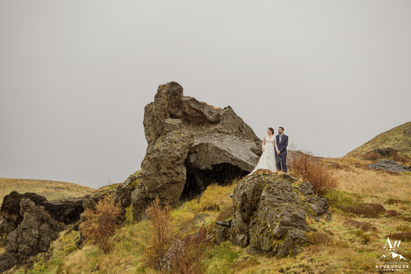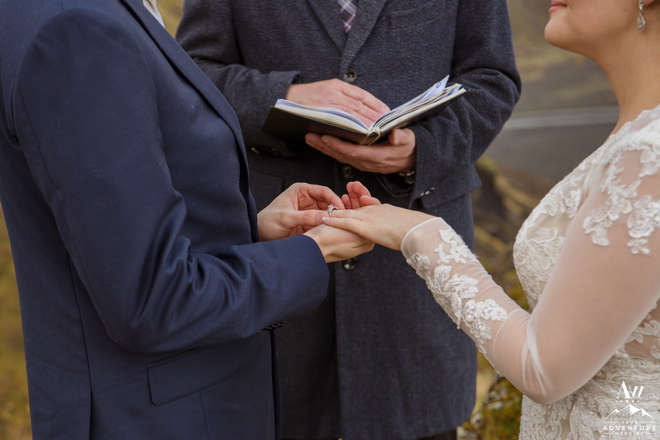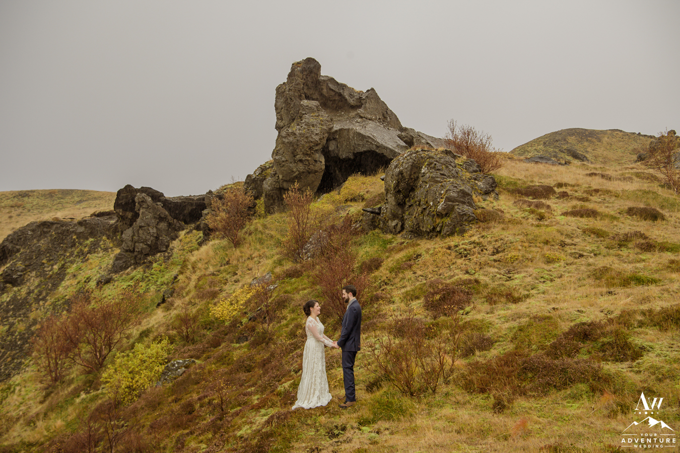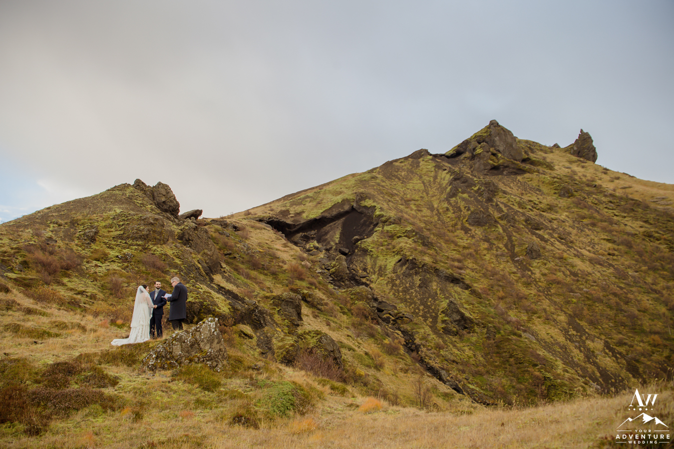 Speaking of rain, we always prepare our clients to literally picture yourself in the “worst weather possible” and come to terms with it happening. Without a doubt, you need to embrace the weather and understand that it is all part of the story and adventurous elopement experience! That October morning, it drizzled during the ceremony. But it only made Zach and Casey smile bigger and feel more connected to the Icelandic nature during their mountain top wedding ceremony!
