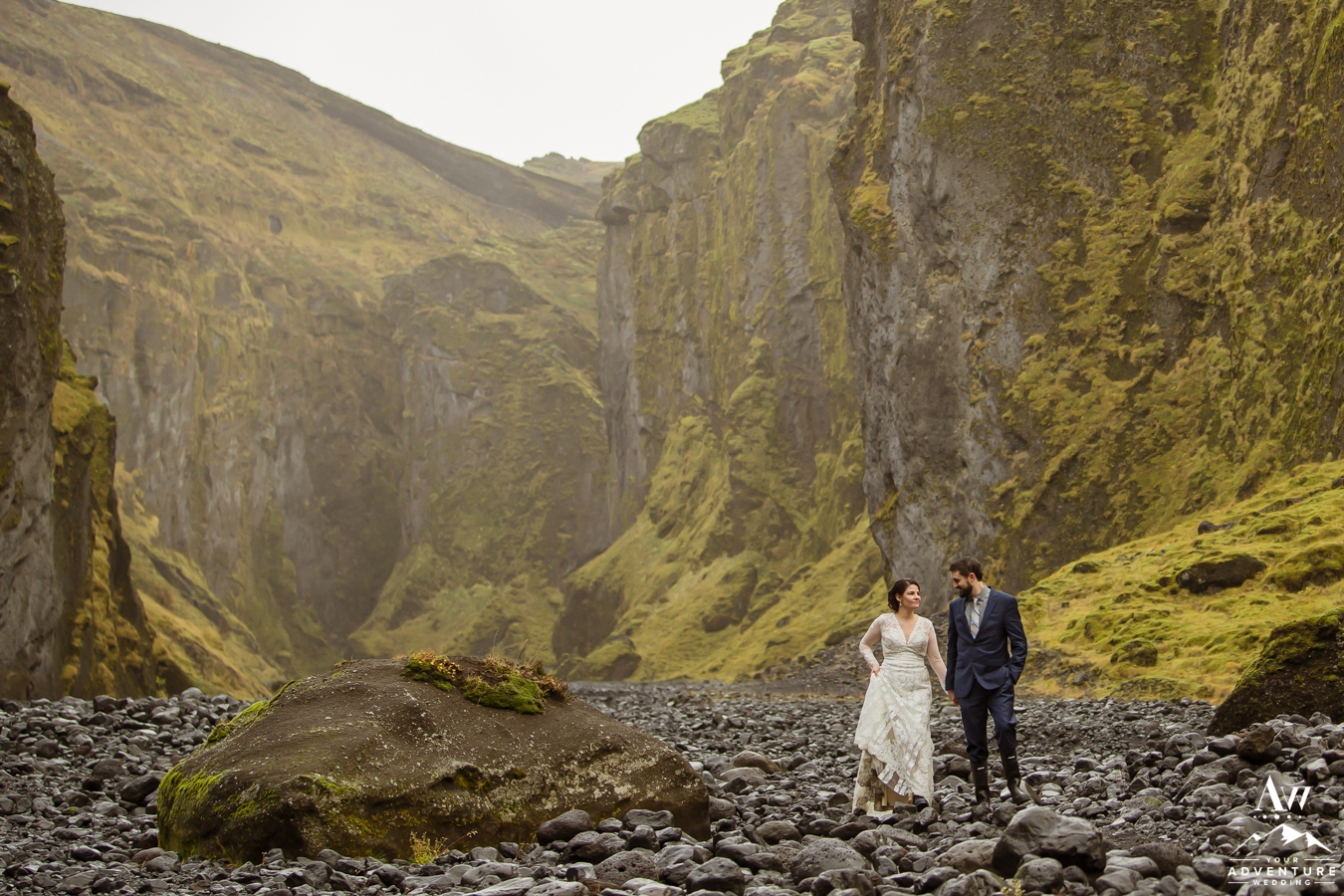 The highlands of Iceland are abundant with amazing unforgettable features. From stunning canyons, natural caves, and rivers that turn into waterfalls! Imagine for your Iceland elopement package you get the amazing opportunity to experience some private canyons after your mountain top wedding! It was real life for Zach and Casey and they savored every single second of it!