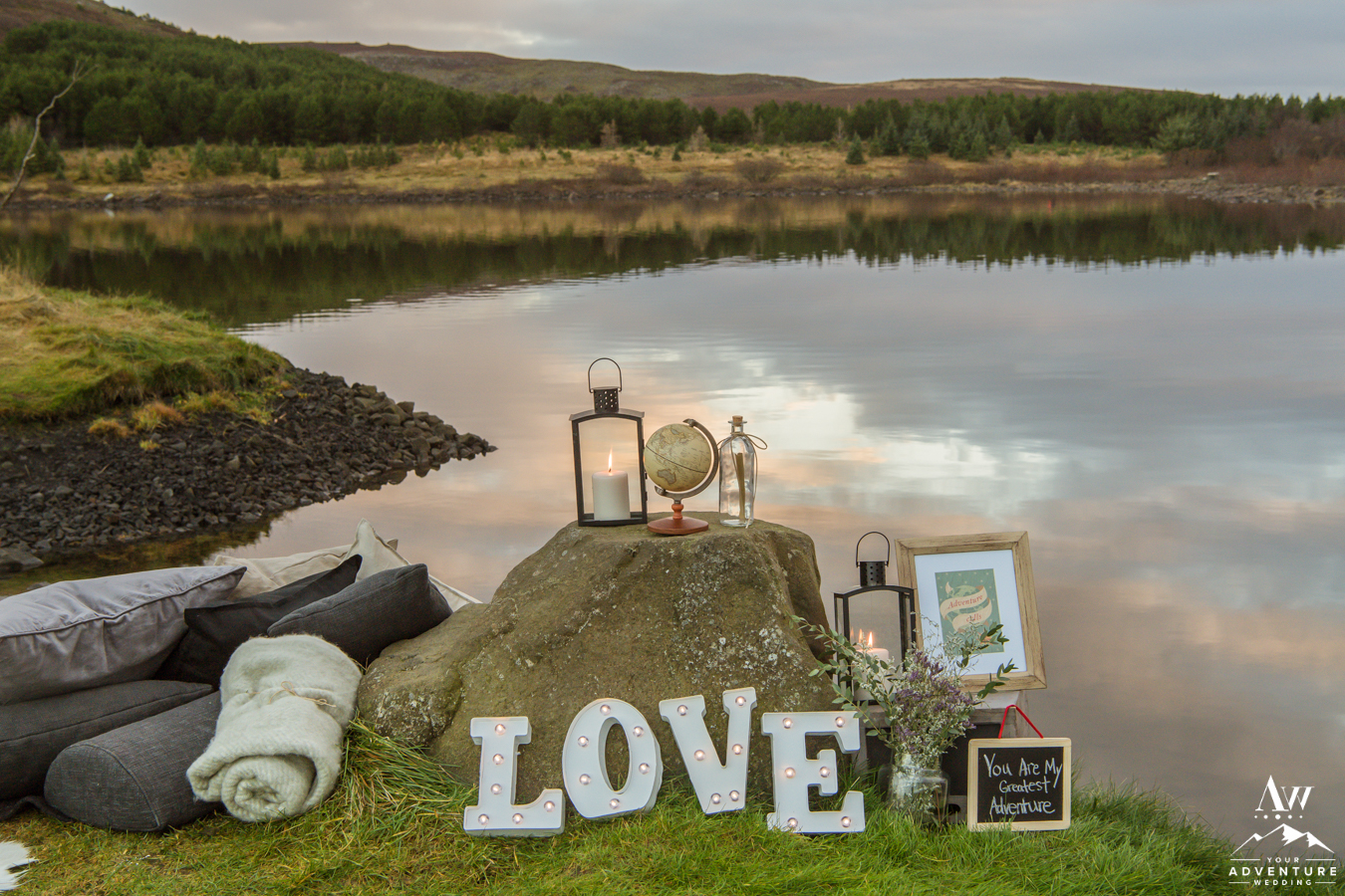 - Setting up the Iceland wedding ceremony location. An arch, flowers, or seating?