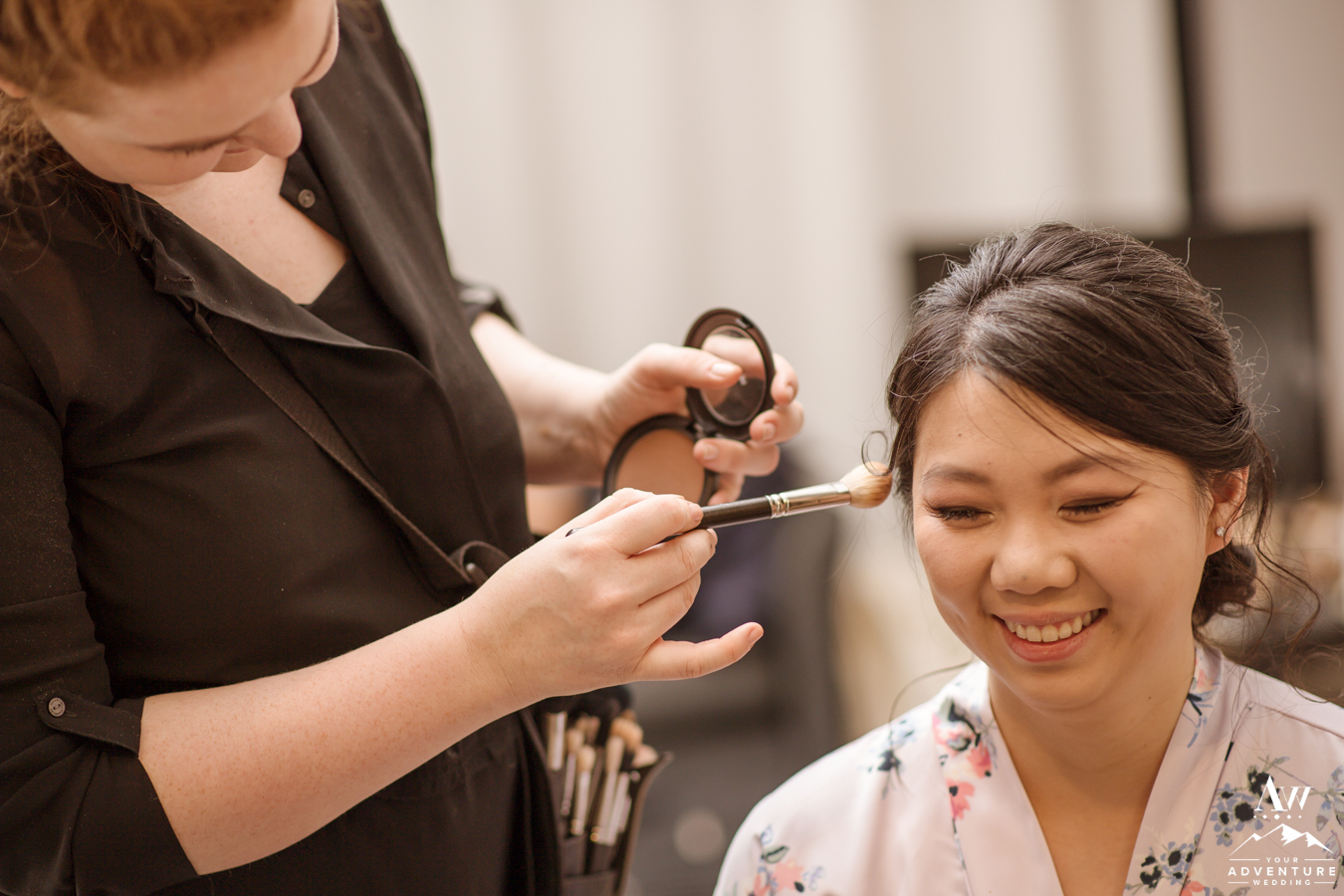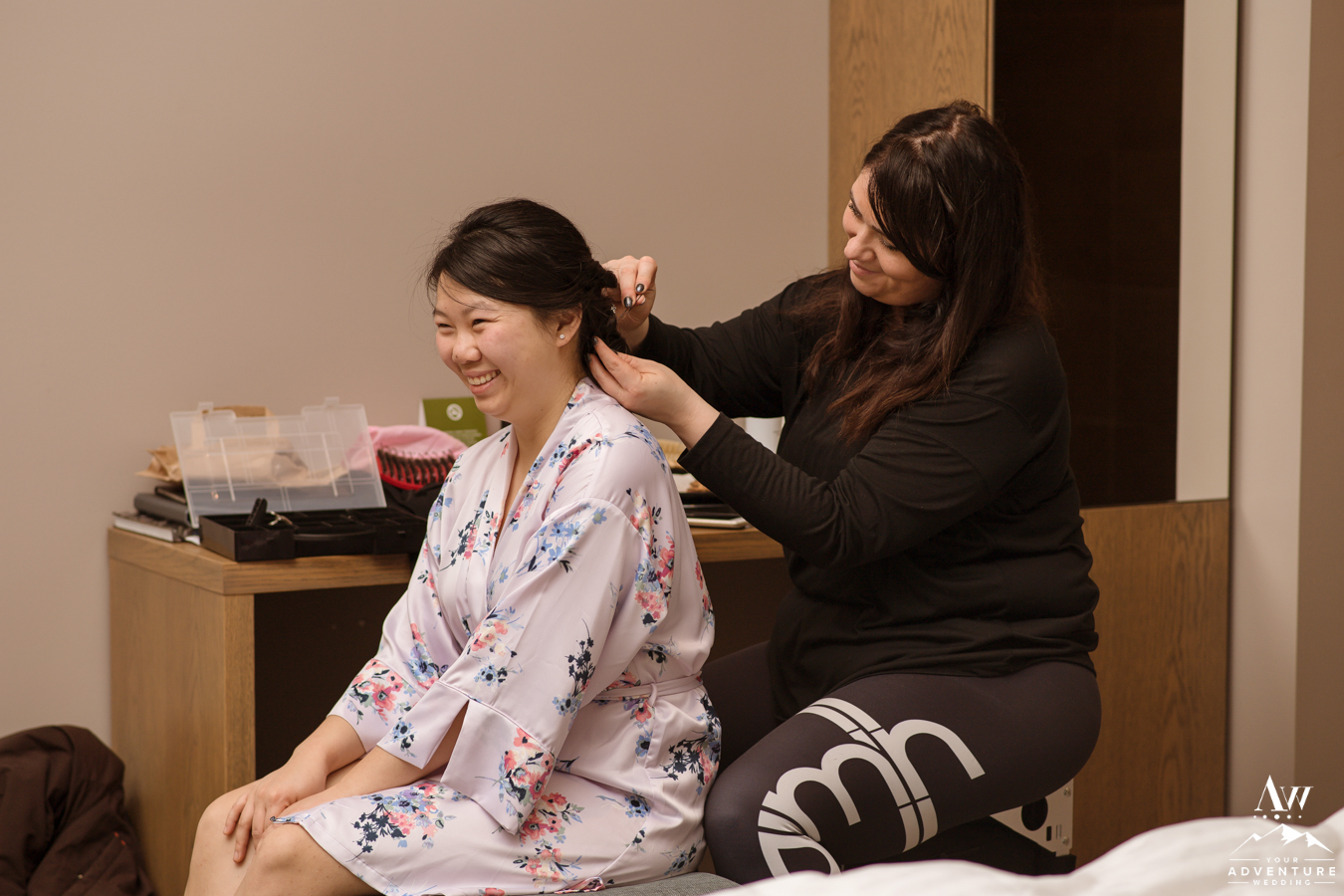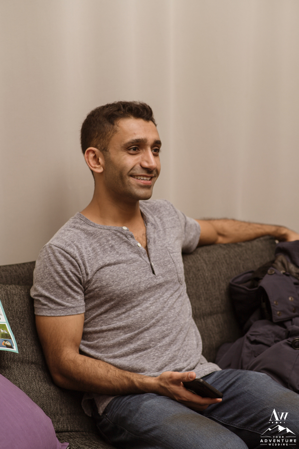 Our team adored their wedding details as they were thoughtful and personal. Despite the fact, they got ready in the same room together, once Josephine slipped into her dress, it was time to begin the adventure with a “first look!” Moreover, we loved the fact they they each had their own “go bags” ready to go filled with anything they might need throughout their trekking elopement! The super jeep team arrived and everyone loaded into the super jeep when it was still dark outside. Intentionally of course though, because during winter, we need to use every inch of daylight!