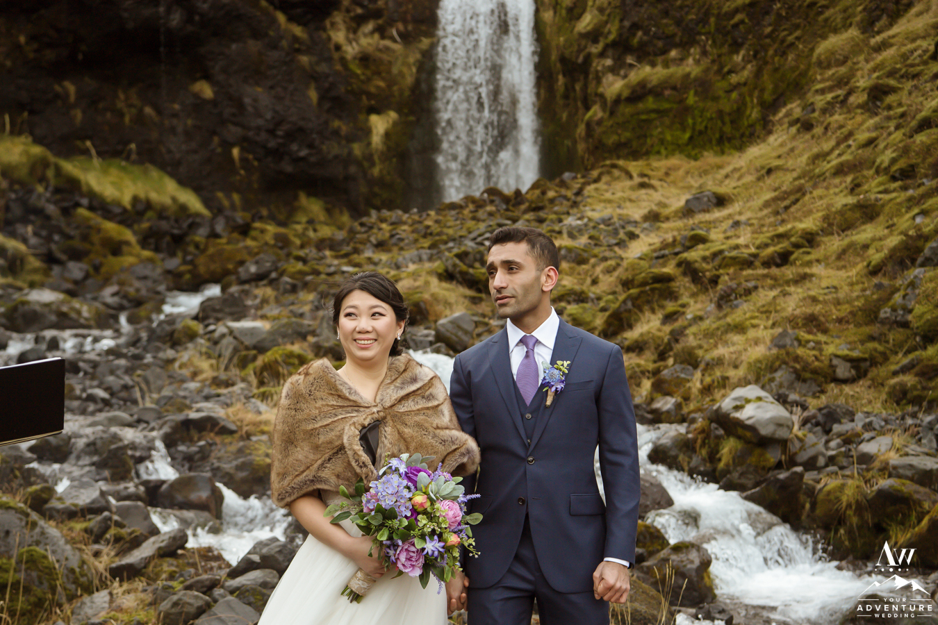 This private waterfall that Asad and Josephine were married at was super special. Water flows from a spring inside of a glacier and two rivers merge together to create a magical private space. I mean who doesn’t want to have a private waterfall for their Iceland elopement package?! Said no one EVER! Tons of options for December Iceland elopement photos too as you’ll find below!