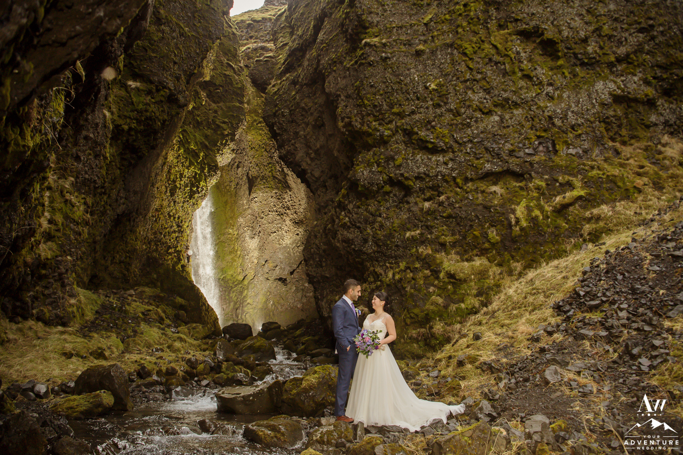 Nothing quite as invigorating as having your trekking elopement lead you to exploring a secret canyon waterfall! Having that “you just discovered it feeling” on your Iceland wedding adventure is addicting. This is the exact feeling our Iceland Wedding Planner team strives for. Believe me, you’ll never chase waterfalls the same way again!