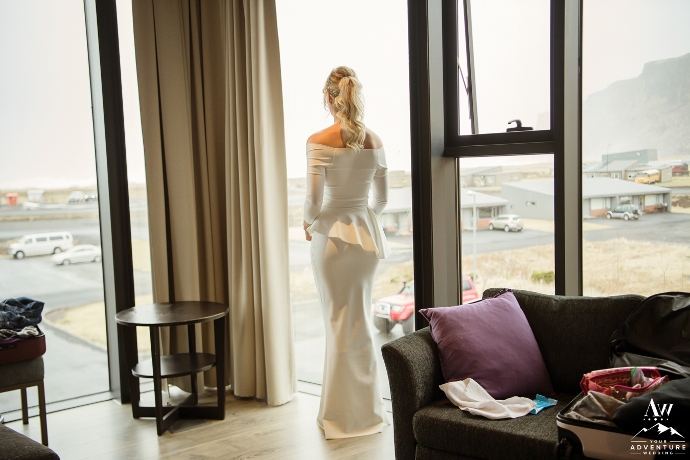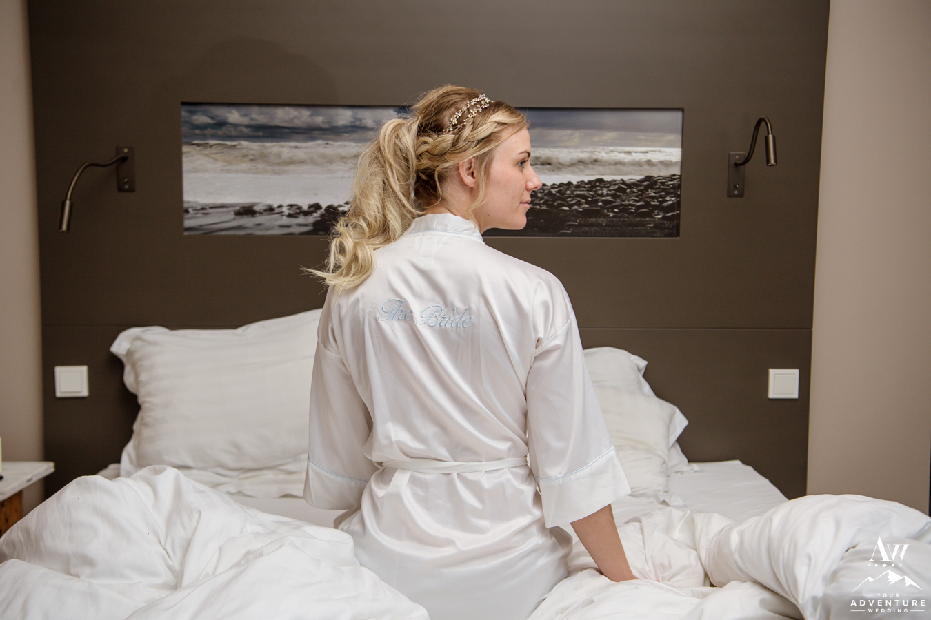 Firstly, in planning a half day adventure wedding in Iceland, the day began later than our usual 5am start time. But this is exactly the sort of chill easy morning that Amanda and Spencer wished for. They parted ways after breakfast together. Spencer got ready in his mum’s room and Amanda was being dolled up by our hair stylist while watching the morning light break and listening to a playlist her mum had surprised her with.