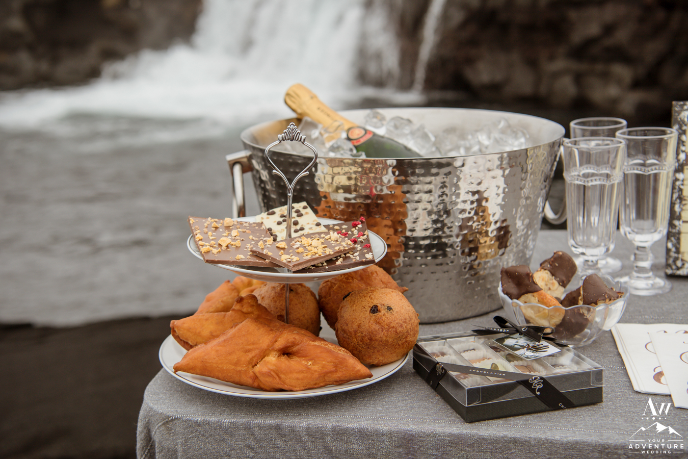 Champagne always tastes better with a gorgeous view and with a side of sweets! Am I right people?! Amanda and Spencer added on our elaborate champagne toast to delight in after their Iceland private black beach wedding. Which includes the following:
