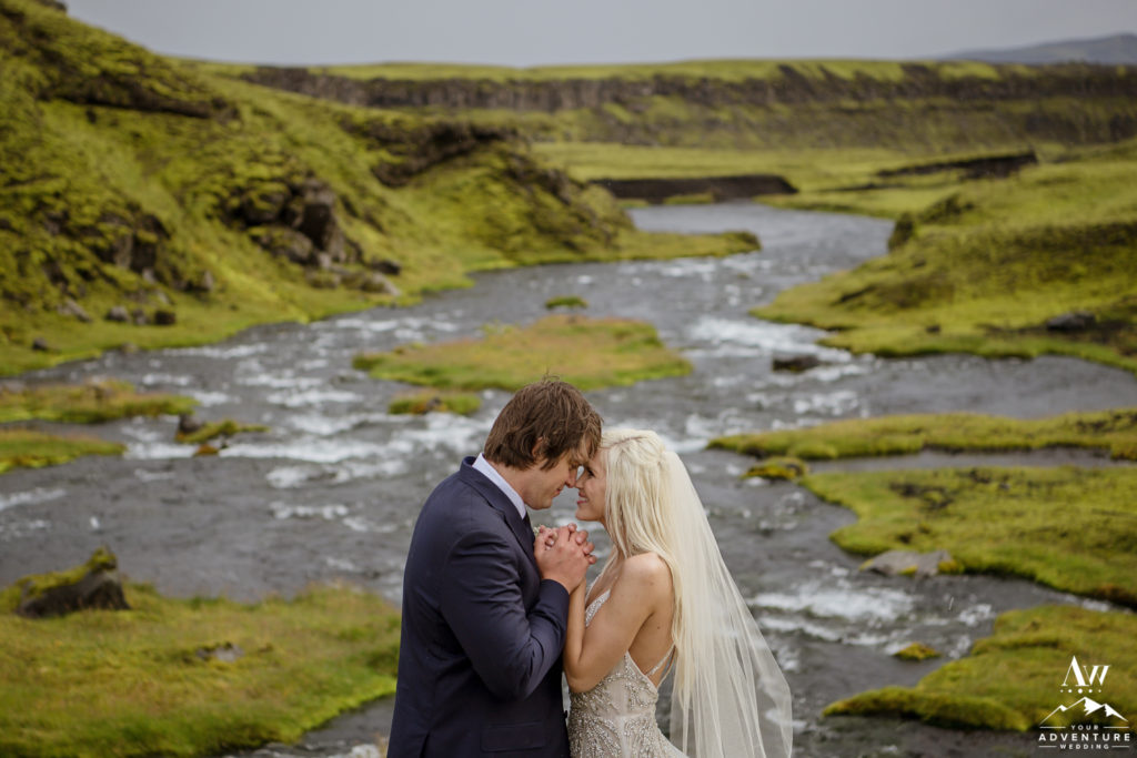Planning a May elopement in Iceland and heading into the lower Icelandic Highlands means the area will likely be still snow spotted. One of our favorite adventurous May elopements was at a hidden waterfall elopement in Iceland and the spots of snow made it dreamy! Moreover, May tends to be more cold and clear but that doesn’t mean you won’t have a gorgeous rainy wedding ceremony or May elopement!