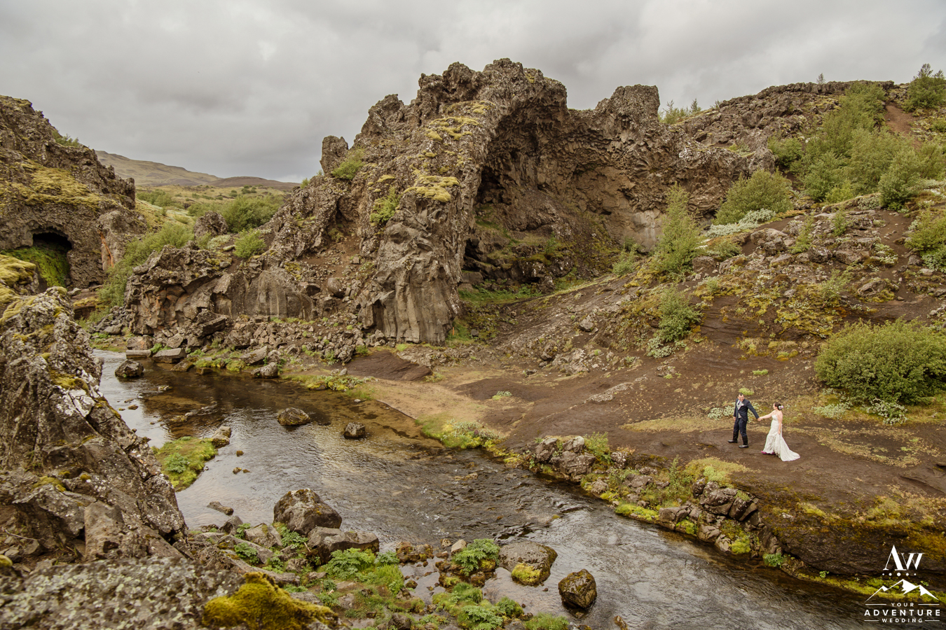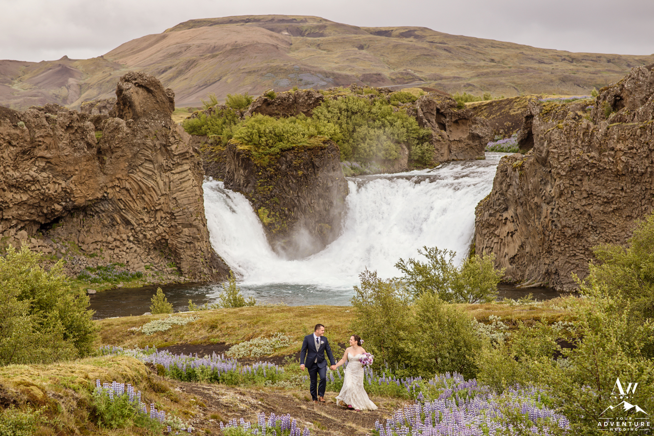 First on our best places to propose in Iceland list… If you seek a waterfall that is accessible by an economy car and will likely not have an ongoing stream of tour buses then Hjálparfoss may be perfect for you! What can you expect at proposing at Hjálparfoss Waterfall? An easy 5 minute walk either down a sloped winding path or taking the stairs. Back when our Iceland wedding planning and photography team offered bus weddings, Hjálparfoss was a ceremony location for a luxury wedding in Iceland.