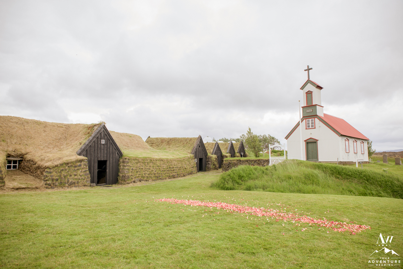 Imagine proposing in Iceland in front of a piece of Icelandic history! One of our summer weddings in many years ago also held a lovely Iceland wedding ceremony at Keldur Sod Farm. Just outside the village of of Hella, Keldur Sod Farm can be found in Southern Iceland. A church from 1875 also calls this spot home in front of the traditional turf houses.