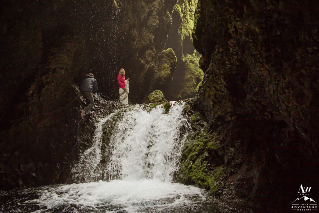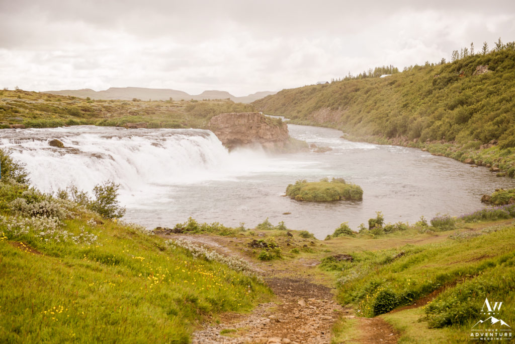 First on our best places to propose in Iceland list… If you seek a waterfall that is accessible by an economy car and will likely not have an ongoing stream of tour buses then Hjálparfoss may be perfect for you! What can you expect at proposing at Hjálparfoss Waterfall? An easy 5 minute walk either down a sloped winding path or taking the stairs. Back when our Iceland wedding planning and photography team offered bus weddings, Hjálparfoss was a ceremony location for a luxury wedding in Iceland.