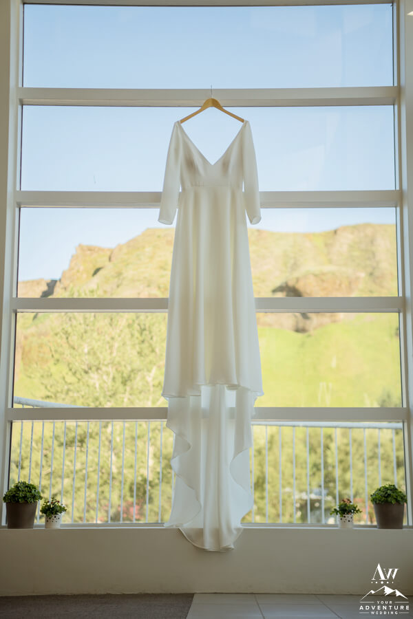 Drew and Kathleen looked outside the morning of July 6th and were greeted by endless sunshine!  During summer, Iceland experiences almost 24 hours of daylight!  Between 6-7:30am Kathleen handled her own hair and makeup while our Iceland elopement photographer went to work capturing all of her gorgeous details.