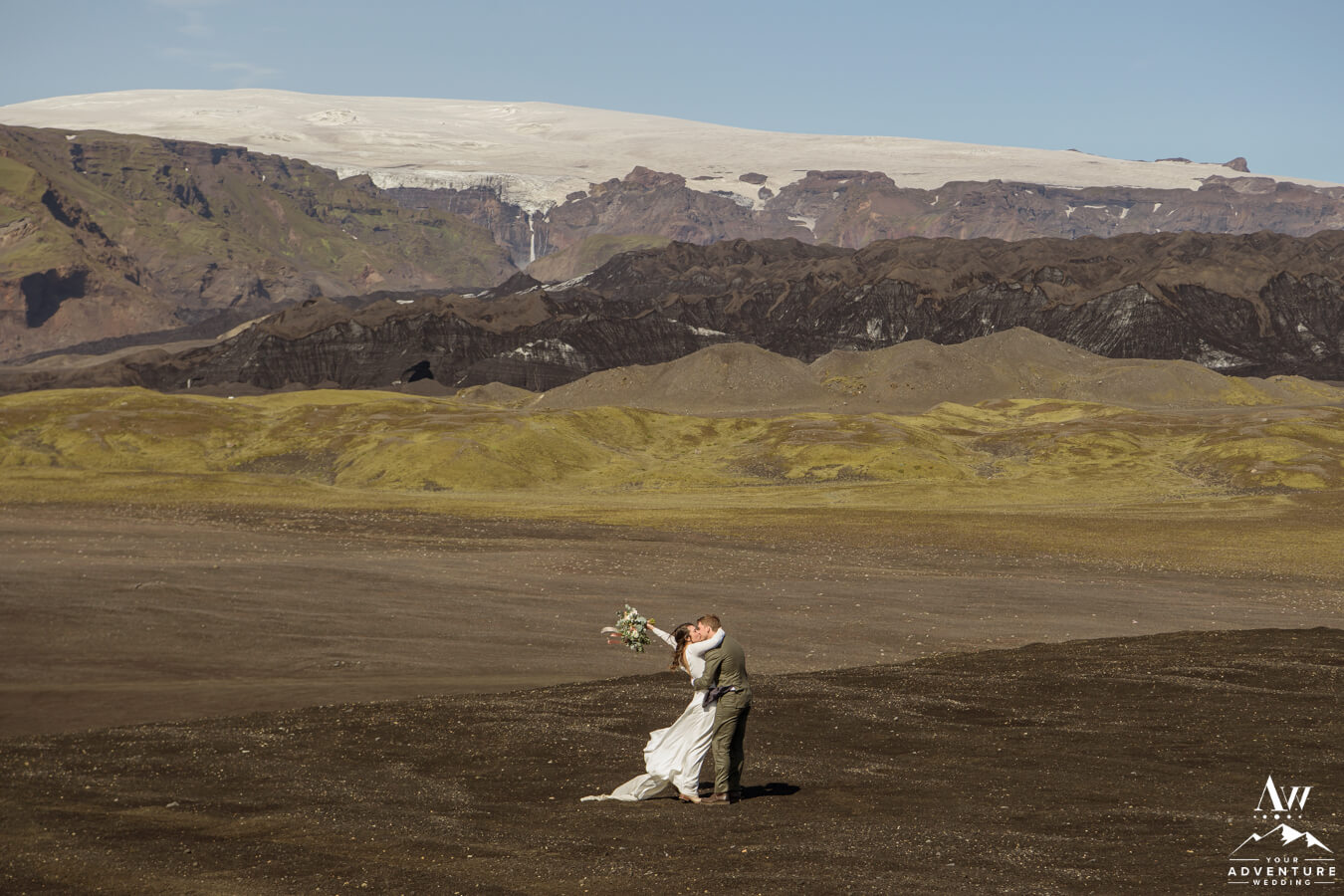 Being able to see the Icelandic mountainscapes from up high gives you a feeling of being so small among something so big.  Serving as a good reminder of what should really be valued during a wedding day…  Adventuring together and sharing experiences!  Kathleen and Drew hopped out of the super jeep to take in the fresh air, addicting 360 views, and just be in the moments, in LOVE!  After all that is what a luxe Iceland wedding is about, right?!