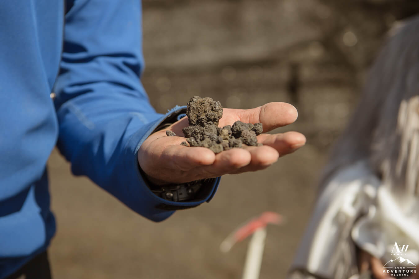 Fun Fact- Sub glacial volcanoes are the most dangerous because when they erupt they will send down a large flood (not lava) and possibly a tsunami (if it’s in an area that hits the ocean).  The luxe Iceland wedding group arrived at a sub glacial volcano area to explore it together.  All guests of our newly-wedded couple were intrigued by the textures and tones of the area and thoroughly enjoyed discovering it!