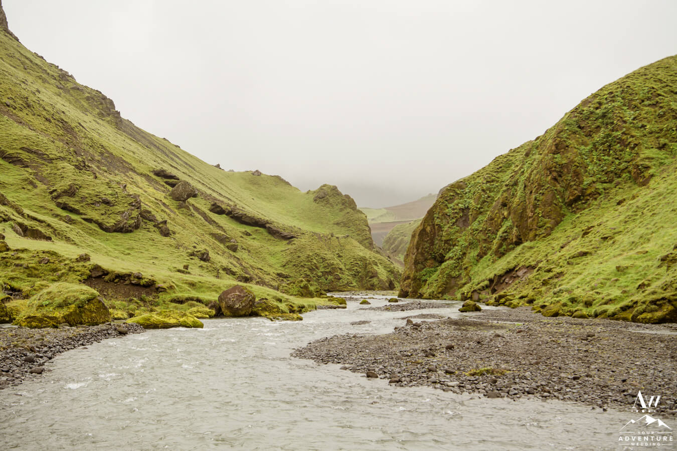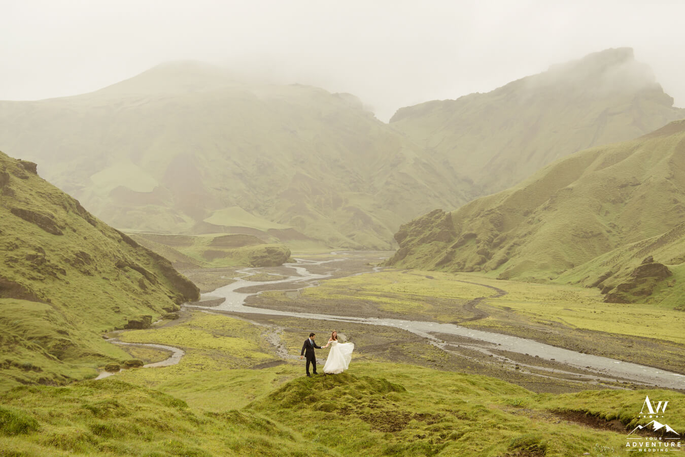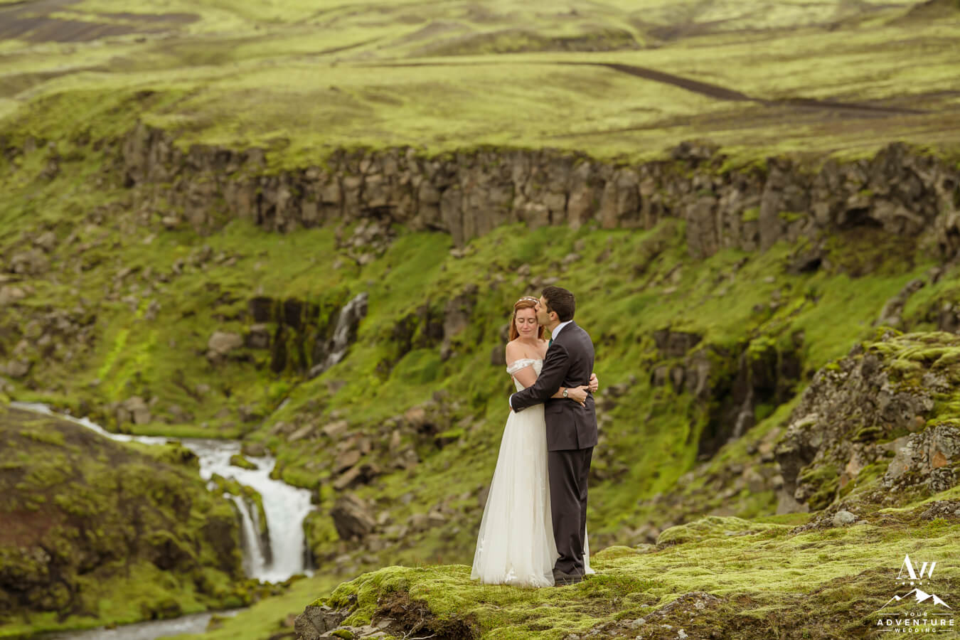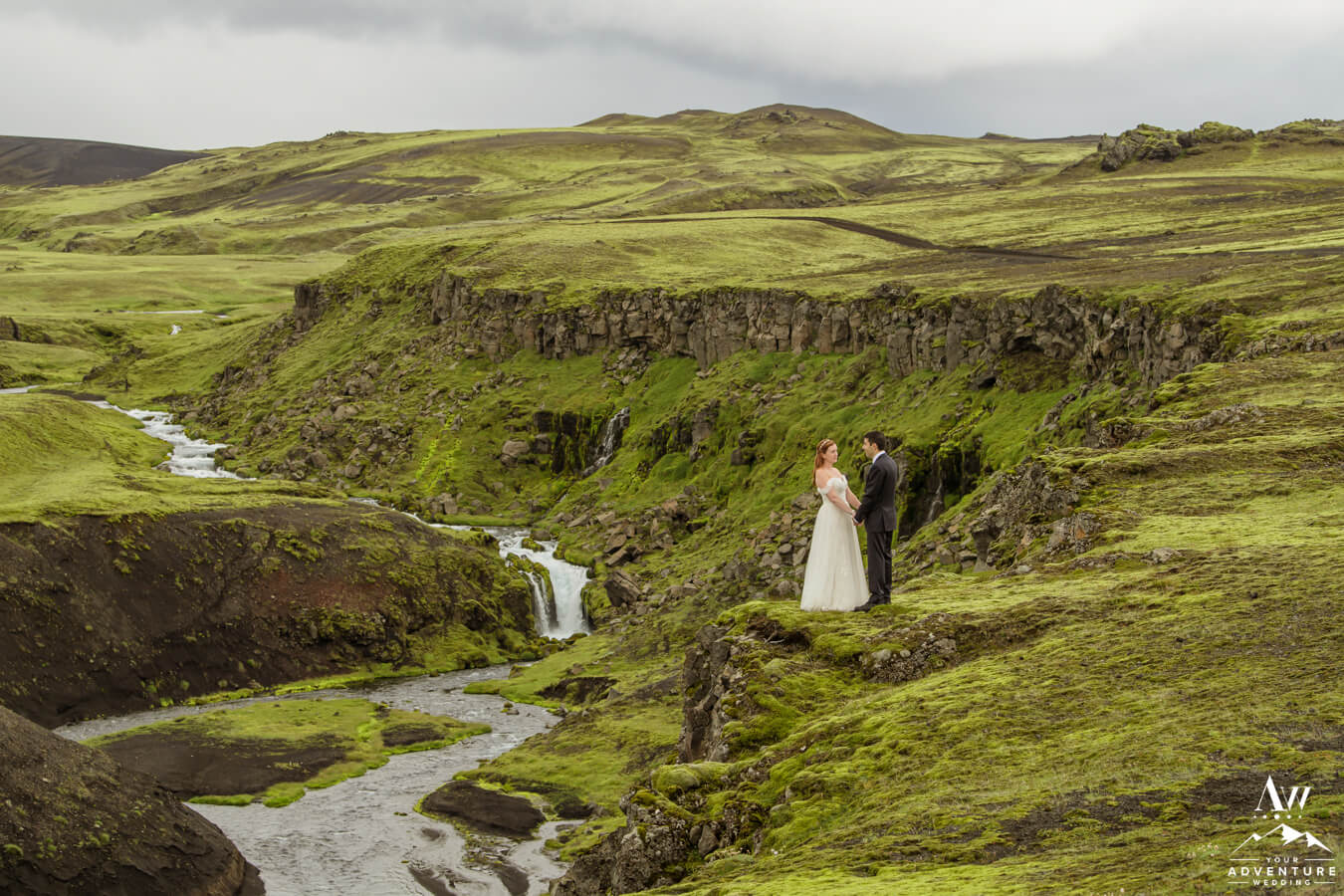 Staying with the super green theme and 360 views, experiencing a canyon in the Icelandic highlands is unforgettable!  Seriously, they blow our minds every single time we see them.  A few GORGEOUS reasons follow below as to why they make for out of this world wedding photos in Iceland too!