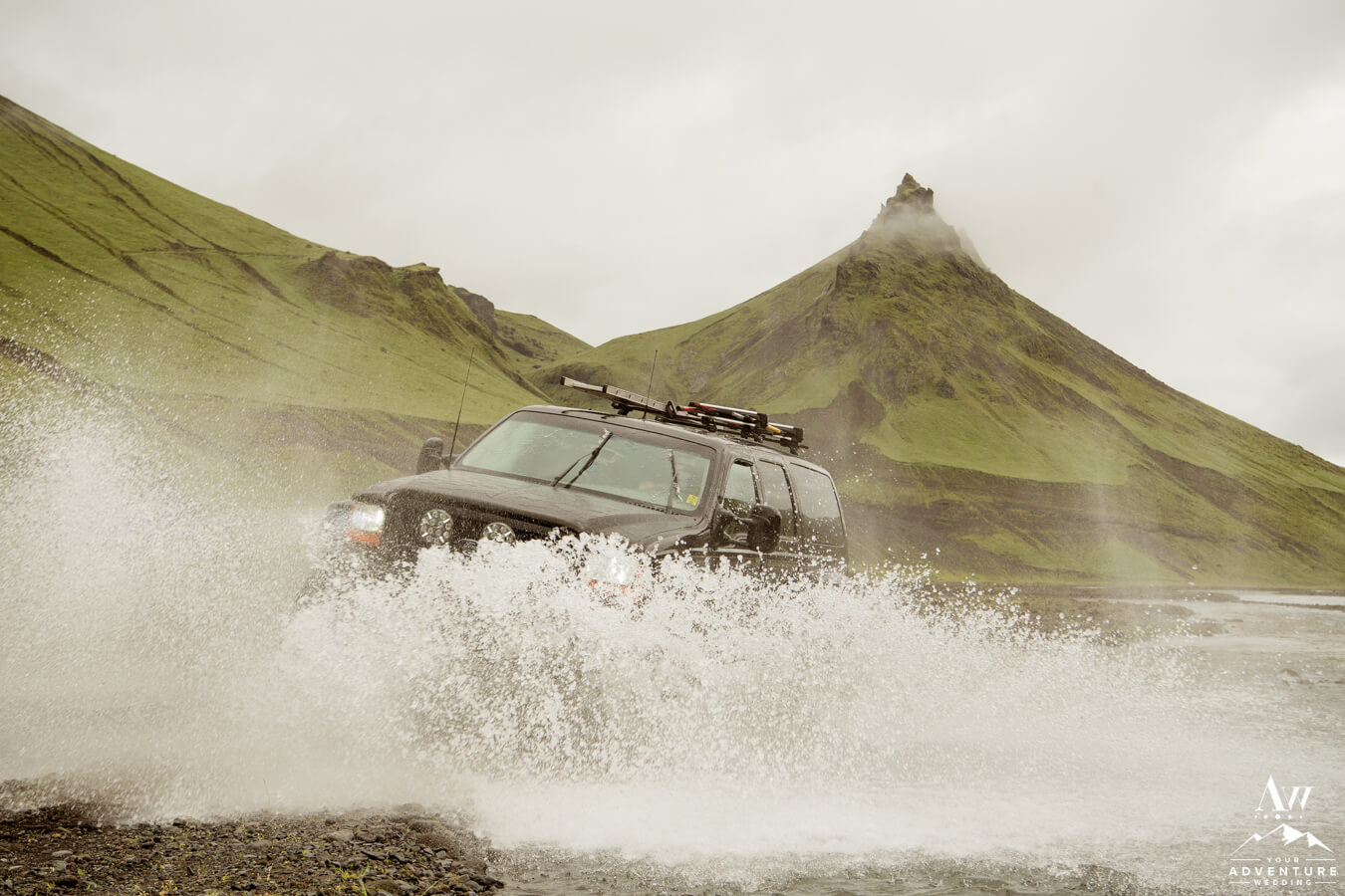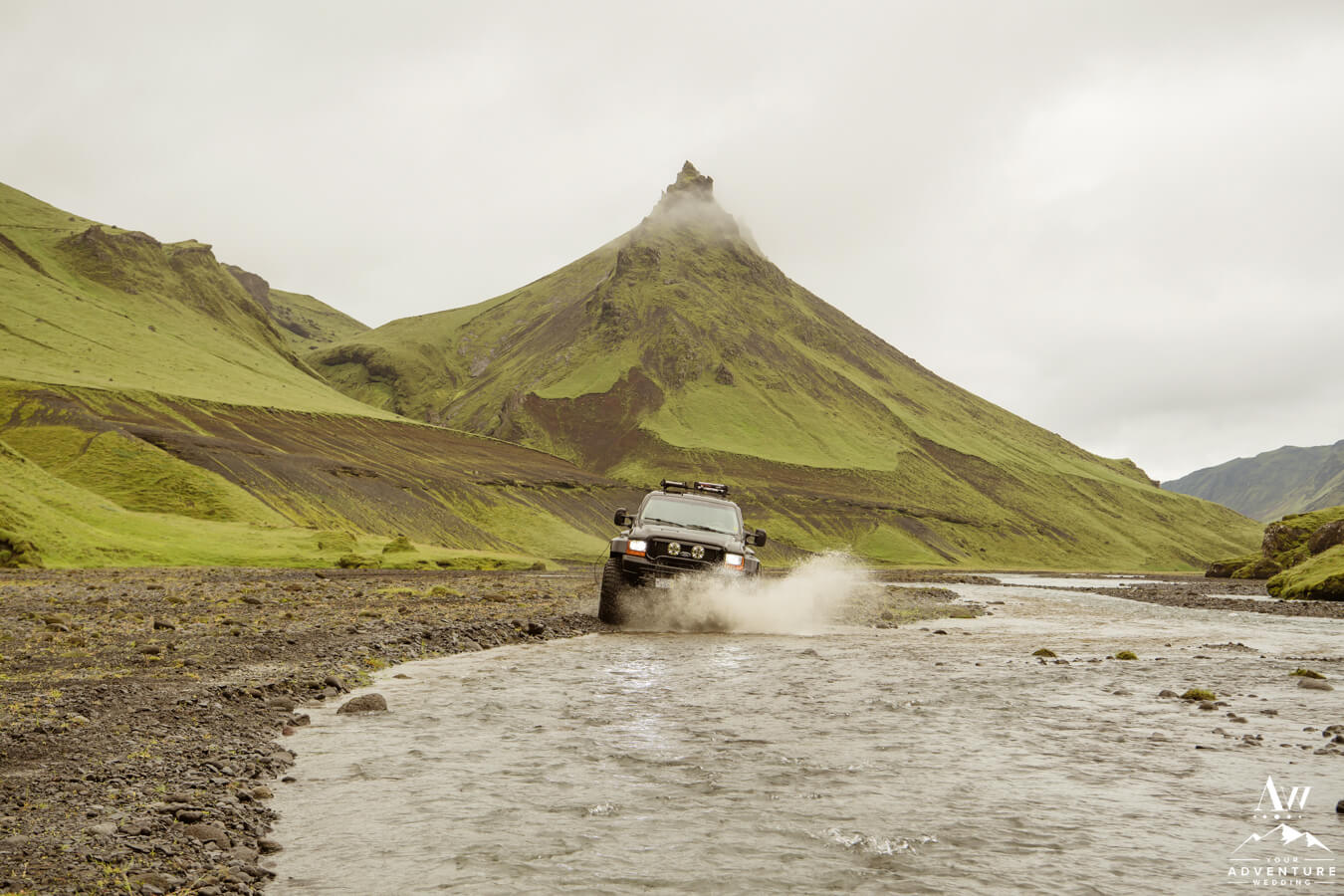 Many may say scouting Iceland private natural caves is our jam.  Rather, we would say if a super jeep and crossing a river or two to get there is a must than YES that’s right up our alley!  To get to the next secret Iceland wedding cave, we crossed I don’t even know how many rivers (lost count after 10)!  That week in July the rain had been endless so the river levels were crazy high, just making it even more exciting than usual!