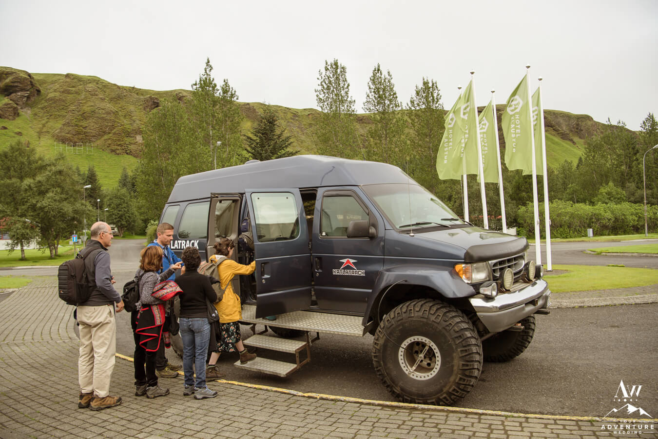 To every couple, we always give a choice on how they want to roll the morning… For example, do you want photos of you getting into your Iceland wedding dress or groom suit?  These two didn’t, so they just met our team and their 10 guests down in the lobby to begin their out of this world wedding adventure in Iceland!