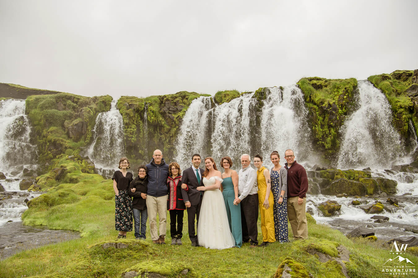 Next, after our fabulous photographer took a group photo, family photos, and candids it was time for the newlyweds to say “Bless! Bless!” (Icelandic for- Bye! Bye!) to their guests and embark on the rest of the day in a hiking elopement style adventure.  Their guests 100% were not offended, were grateful they witnessed their incredible ceremony in such an EPIC location and wished them well!