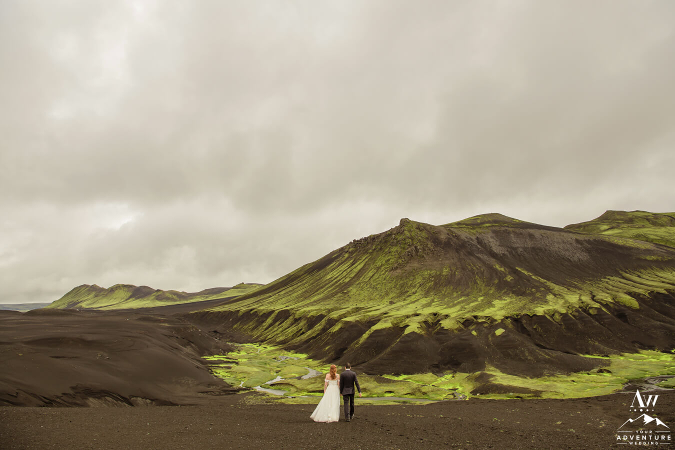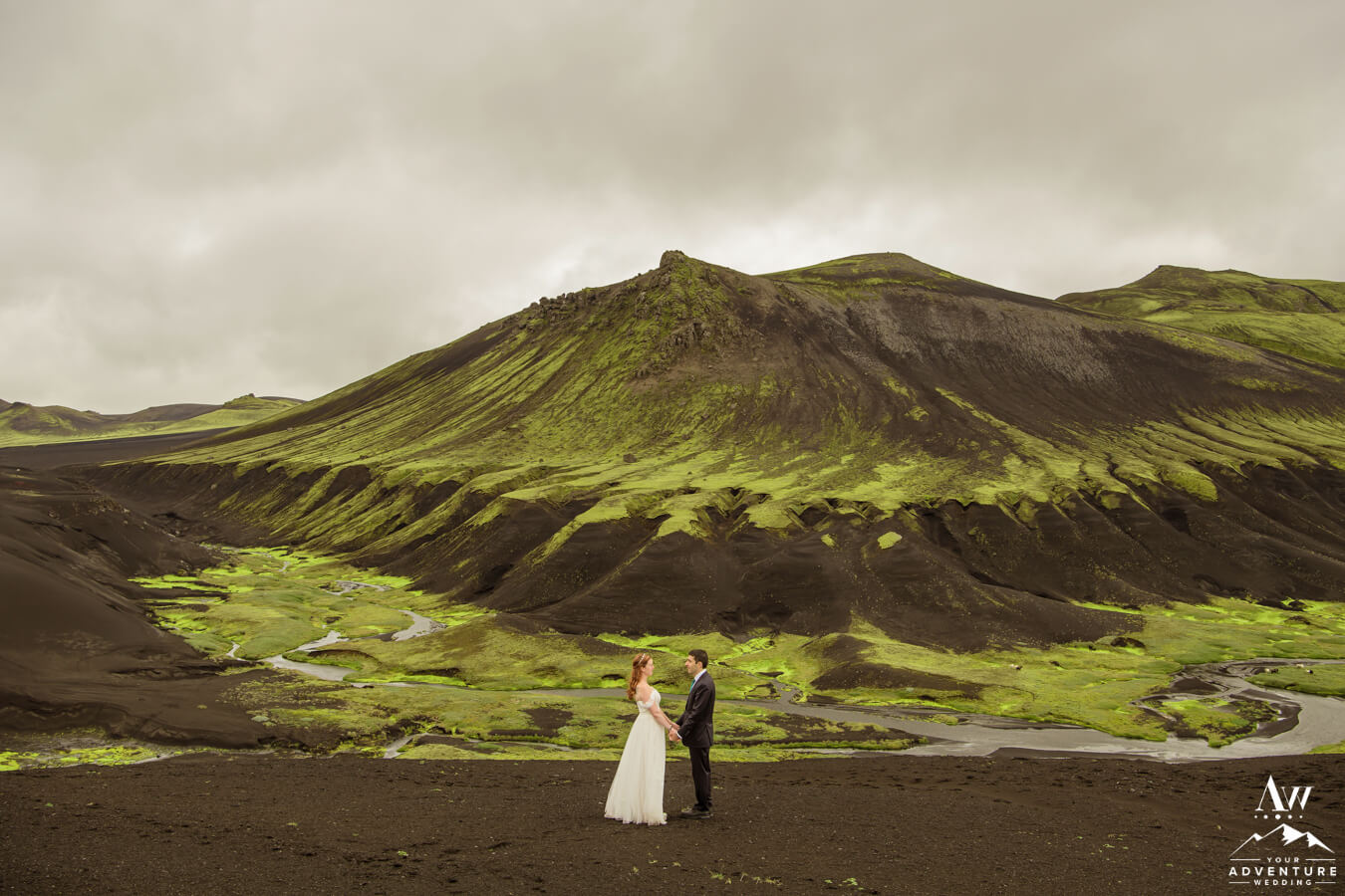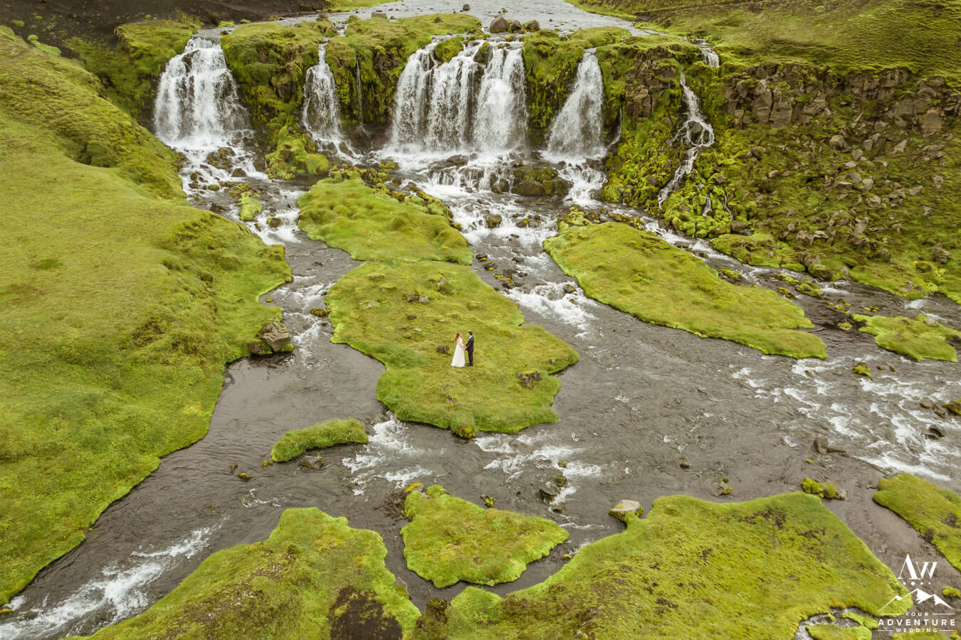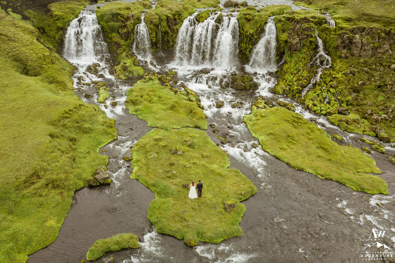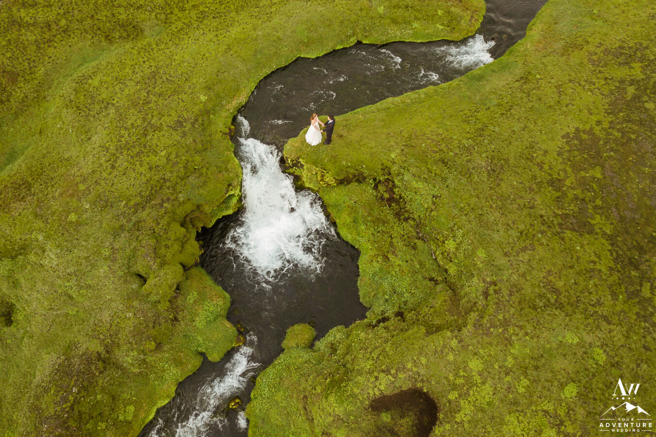 Likewise, a popular Iceland elopement location among every single Iceland wedding photographer on our IWP team would say the next location on Zac and Corey’s out of this world wedding adventure would be a personal fave…  For example, this vivid green moss meets black sand glacier river canyon area is UNREAL!  Before ever seeing it in this context, would you say it’s Iceland or another planet?