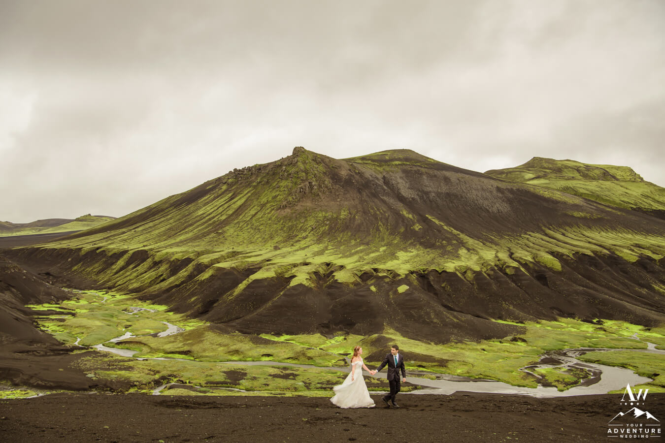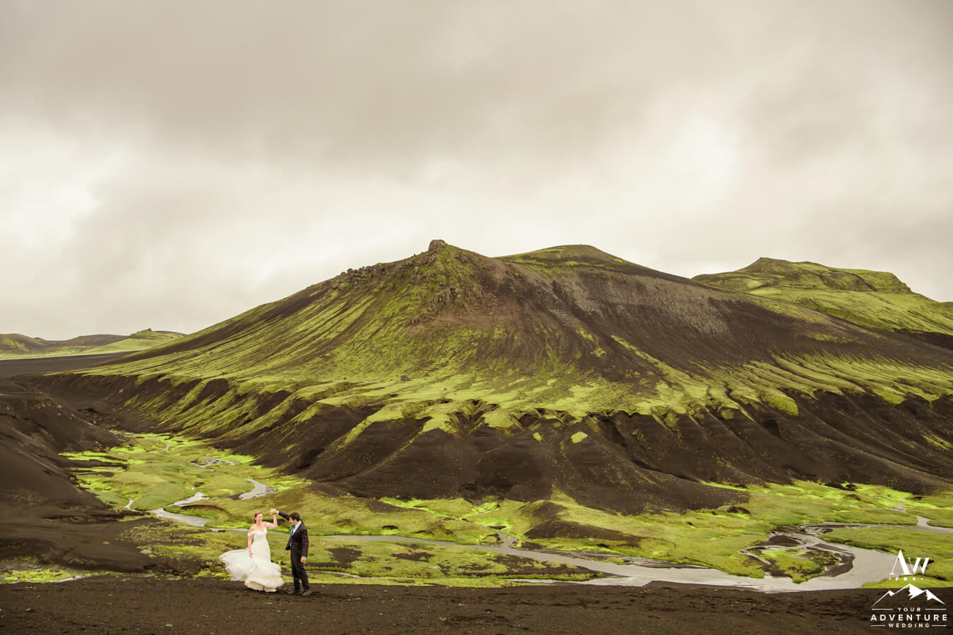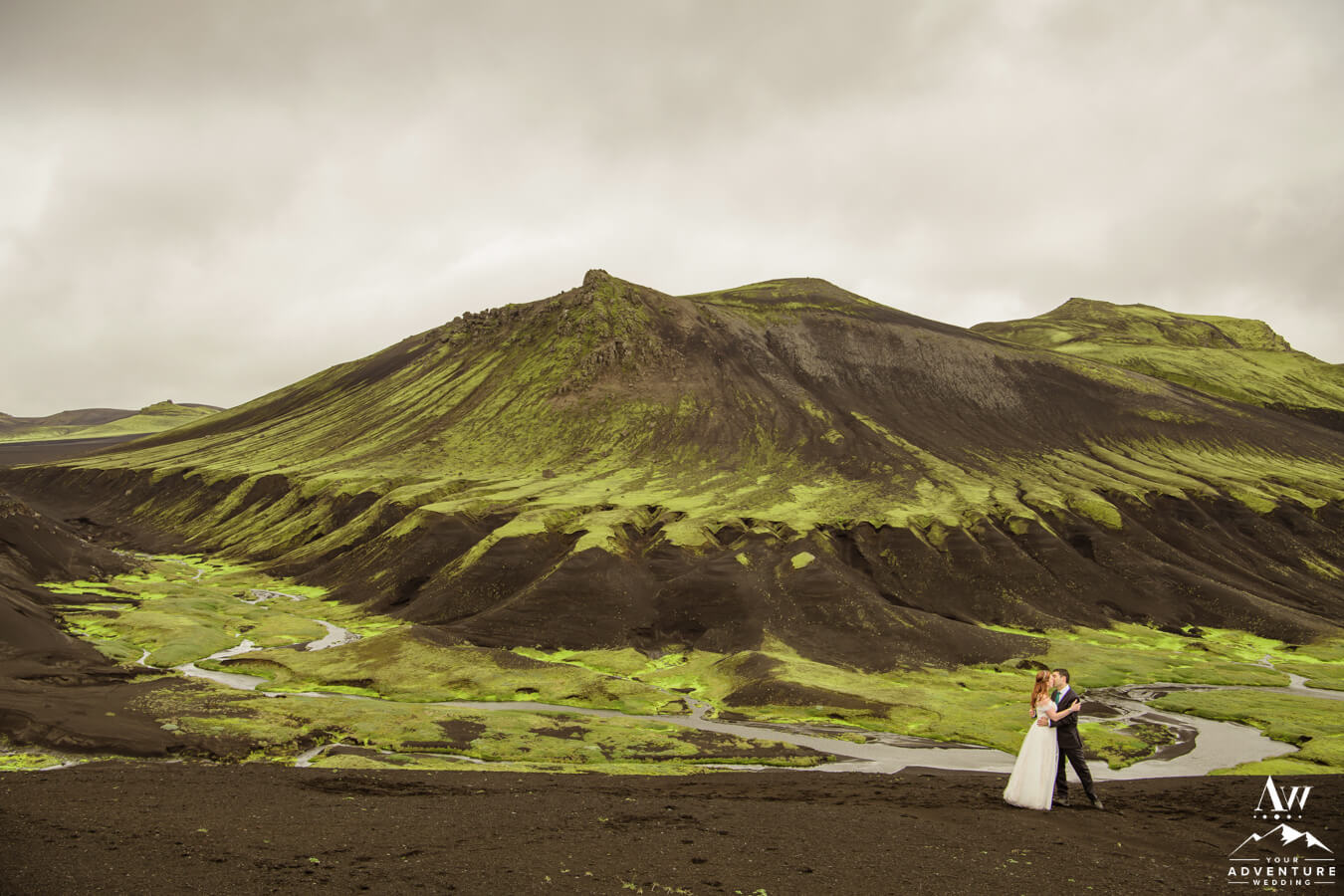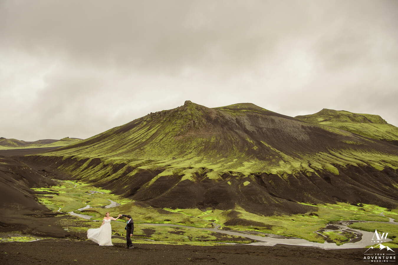 Likewise, a popular Iceland elopement location among every single Iceland wedding photographer on our IWP team would say the next location on Zac and Corey’s out of this world wedding adventure would be a personal fave…  For example, this vivid green moss meets black sand glacier river canyon area is UNREAL!  Before ever seeing it in this context, would you say it’s Iceland or another planet?