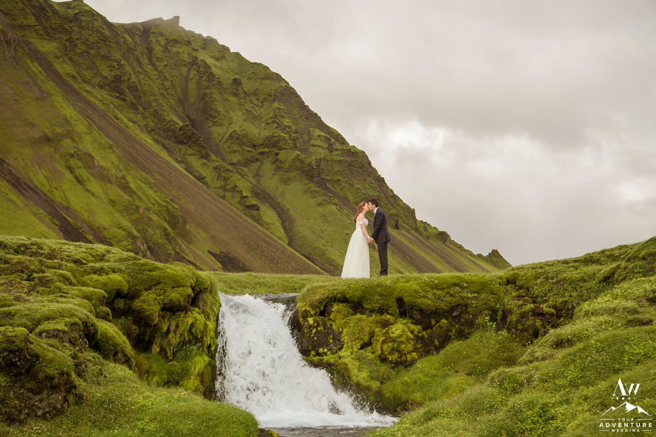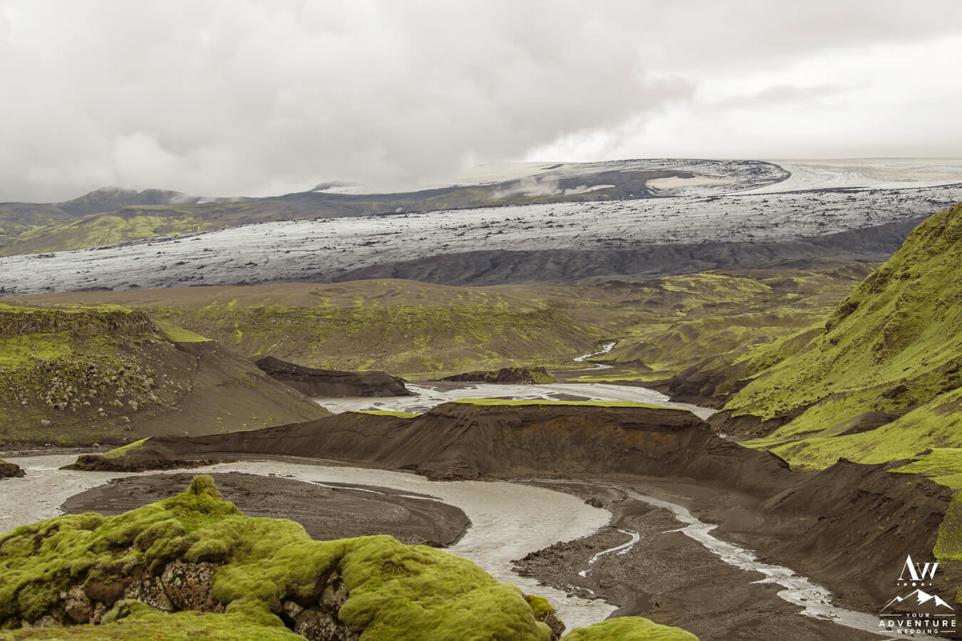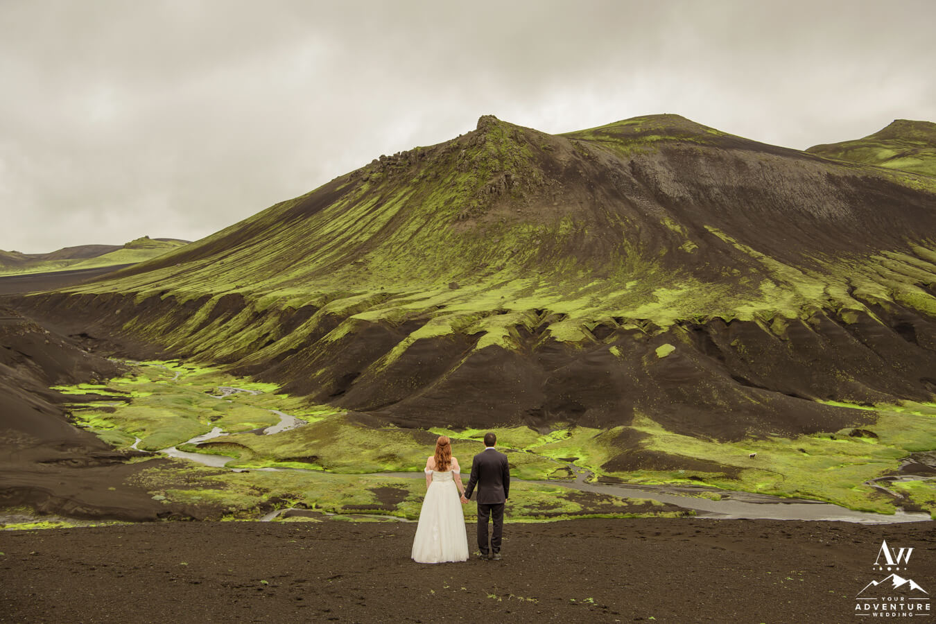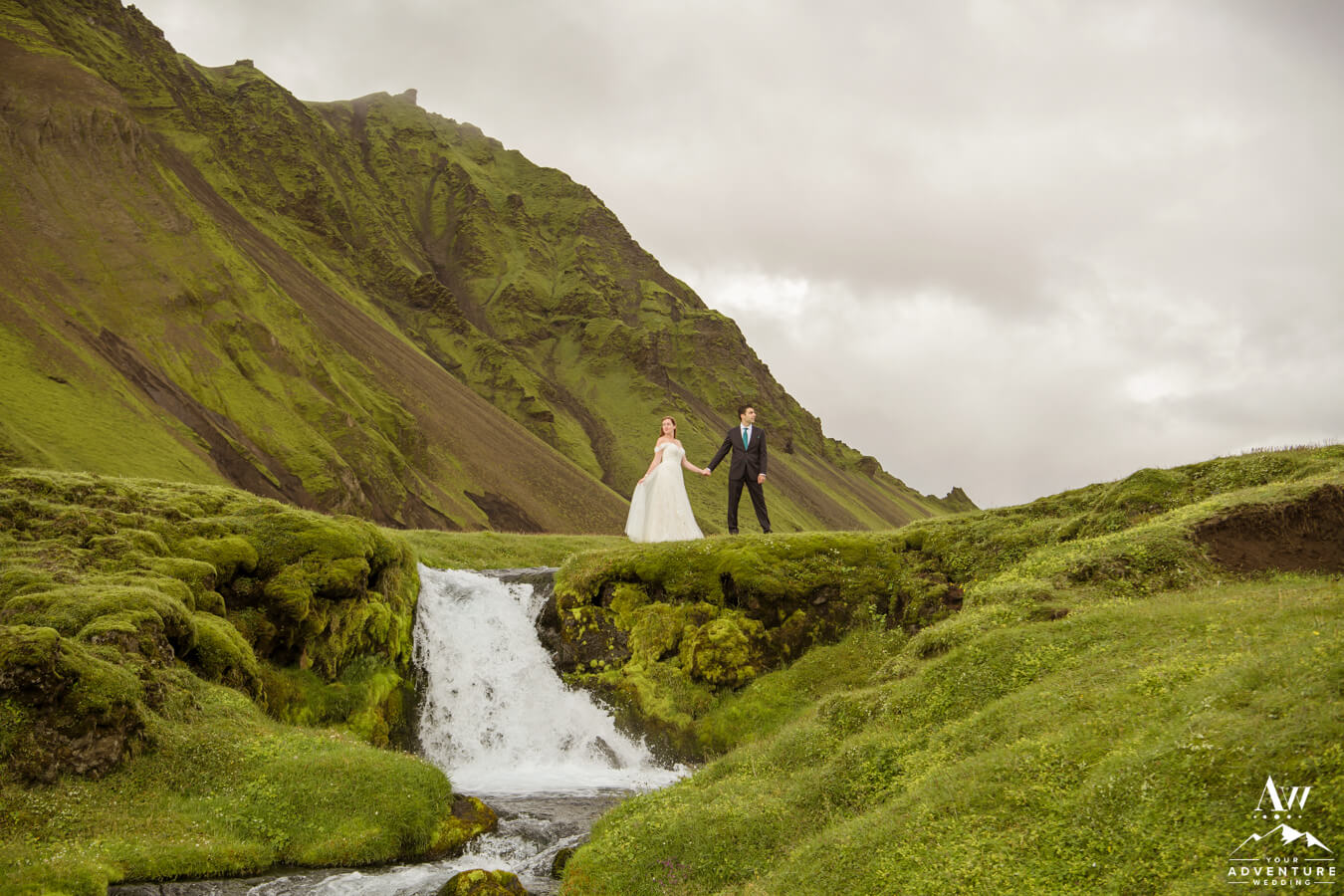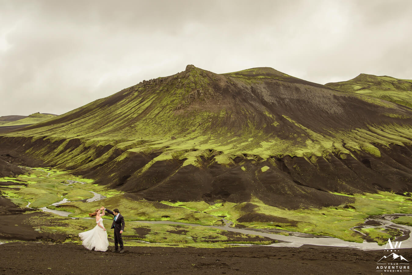 Likewise, a popular Iceland elopement location among every single Iceland wedding photographer on our IWP team would say the next location on Zac and Corey’s out of this world wedding adventure would be a personal fave…  For example, this vivid green moss meets black sand glacier river canyon area is UNREAL!  Before ever seeing it in this context, would you say it’s Iceland or another planet?
